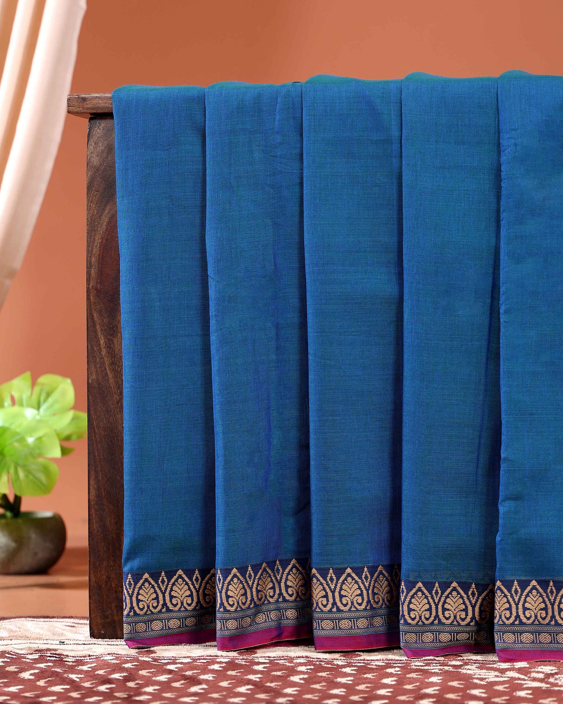 Traditional Handloom Narayanpet Cotton Saree with Intricate Woven Temple Border - Blue