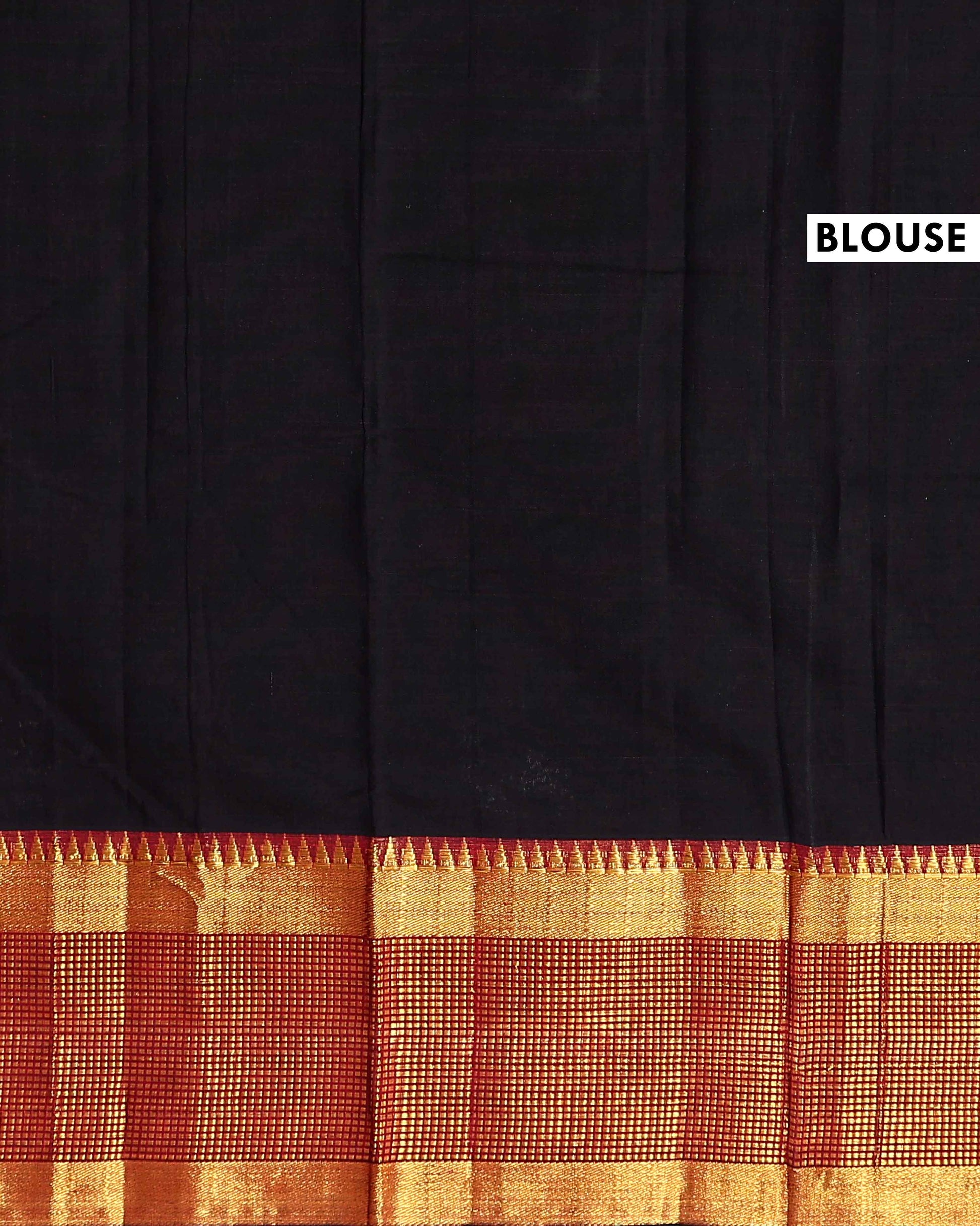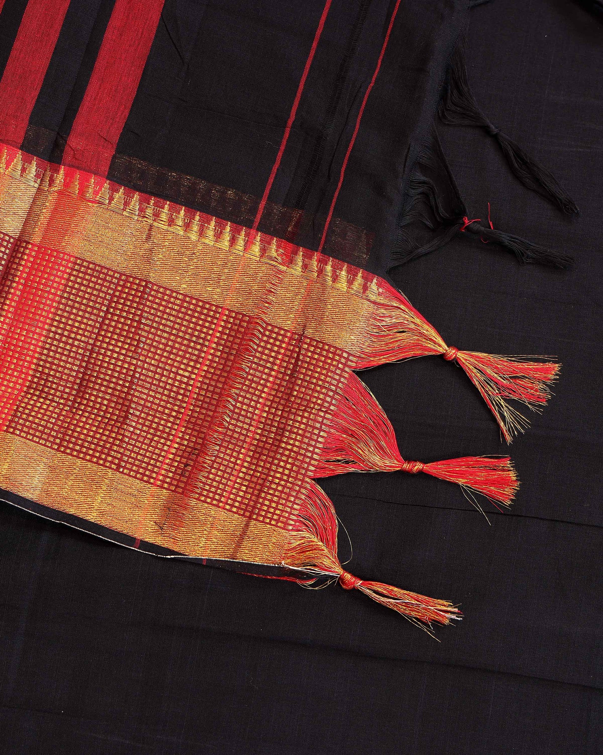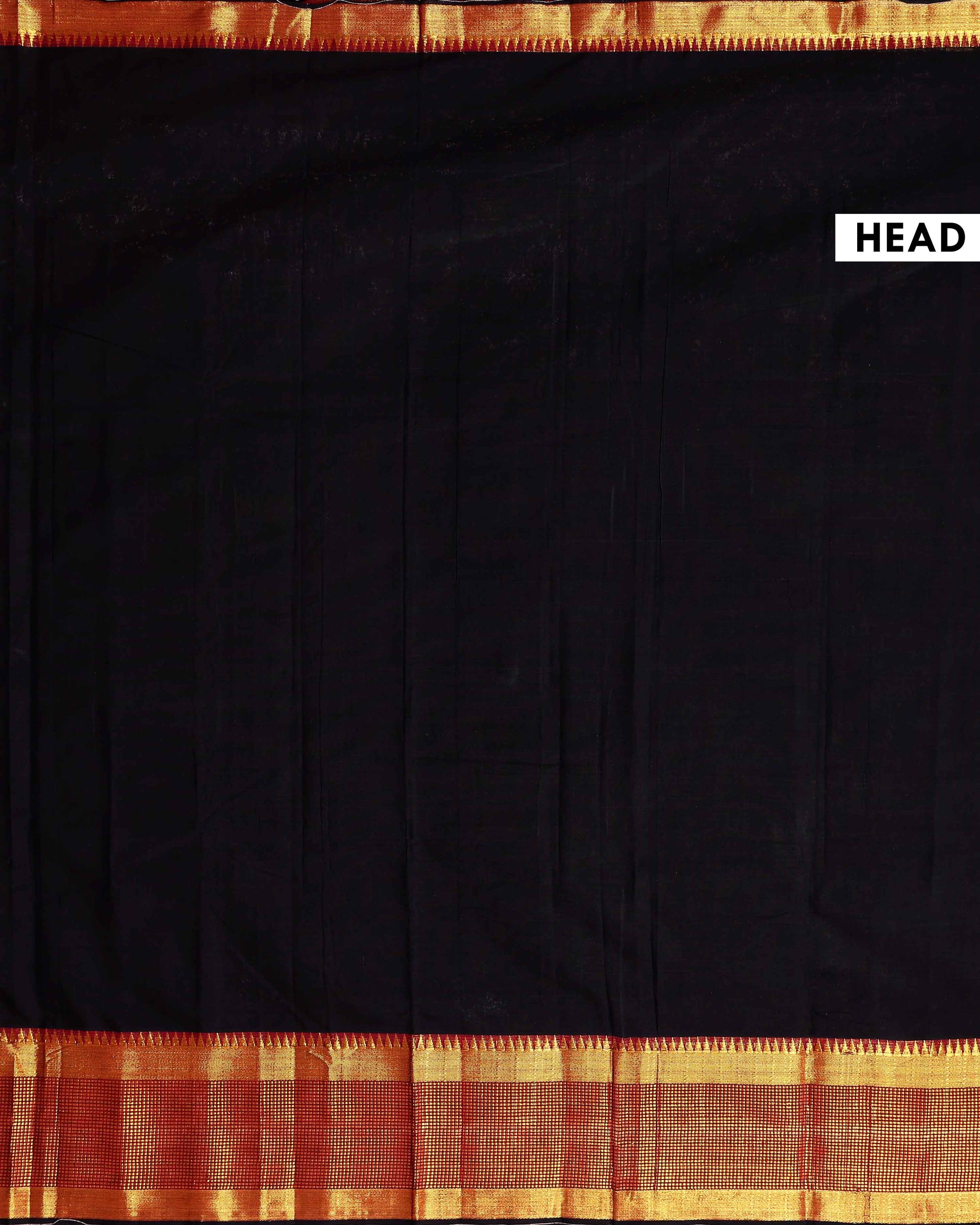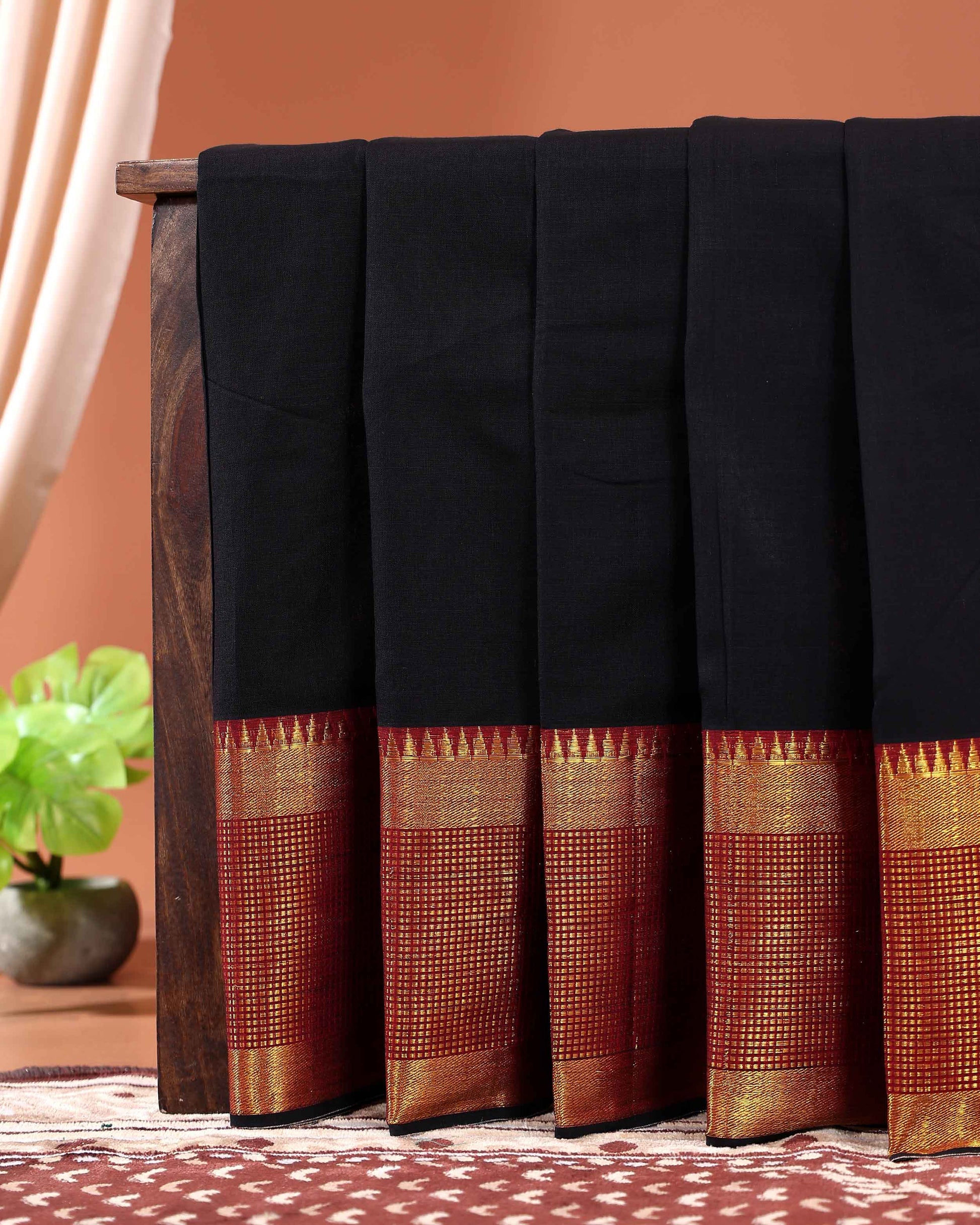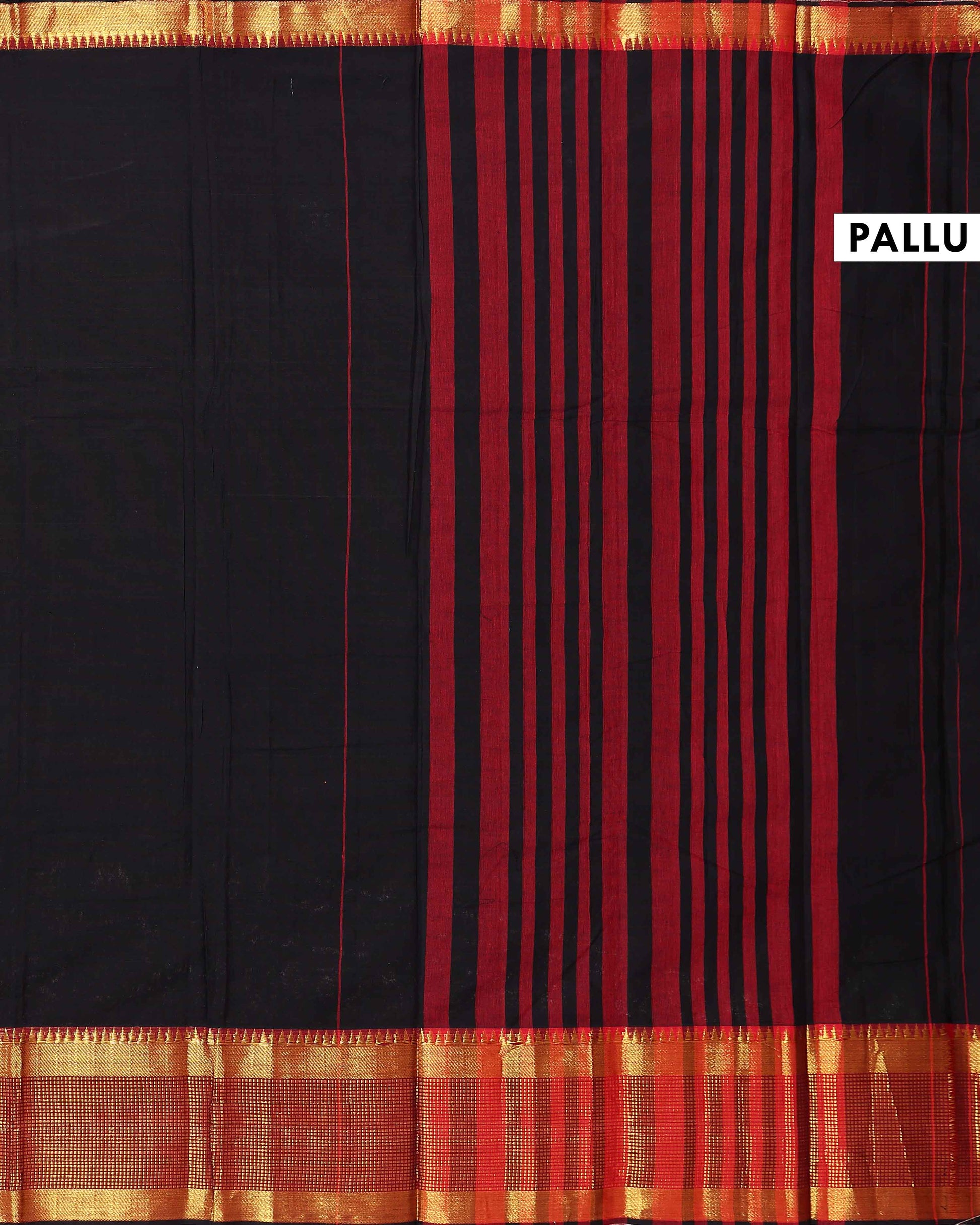 Traditional Handloom Narayanpet Cotton Saree with Traditional Contrast Zari Border - Black