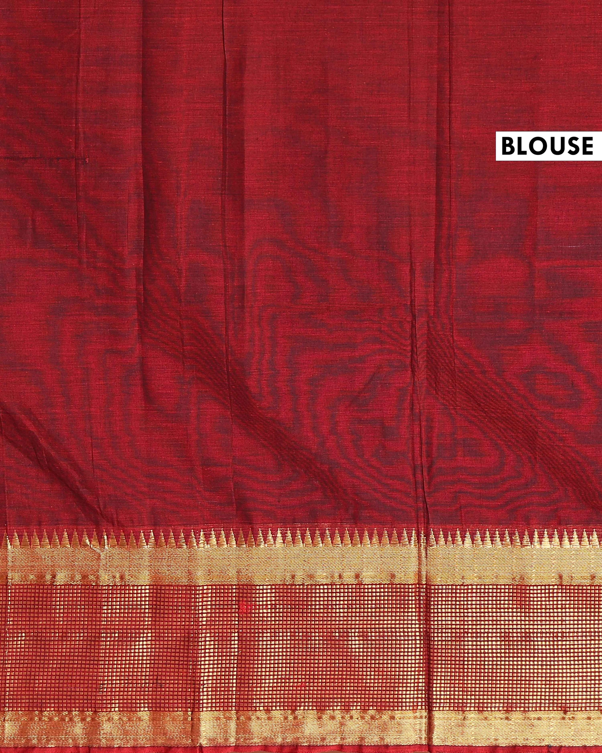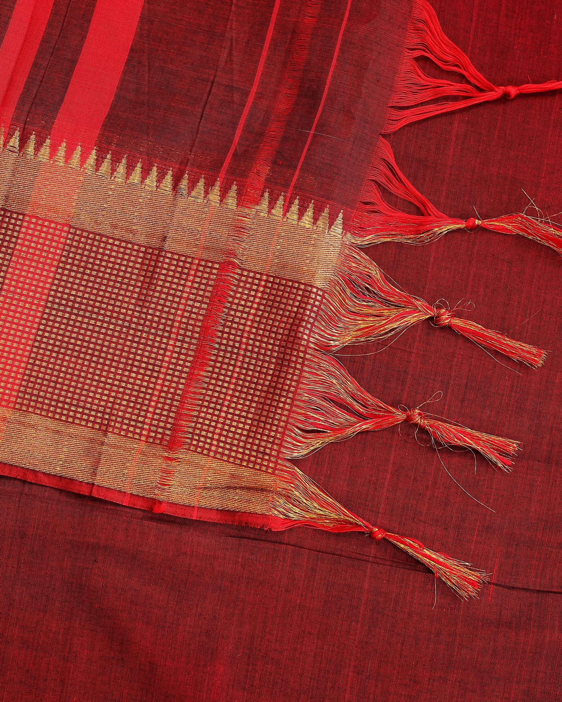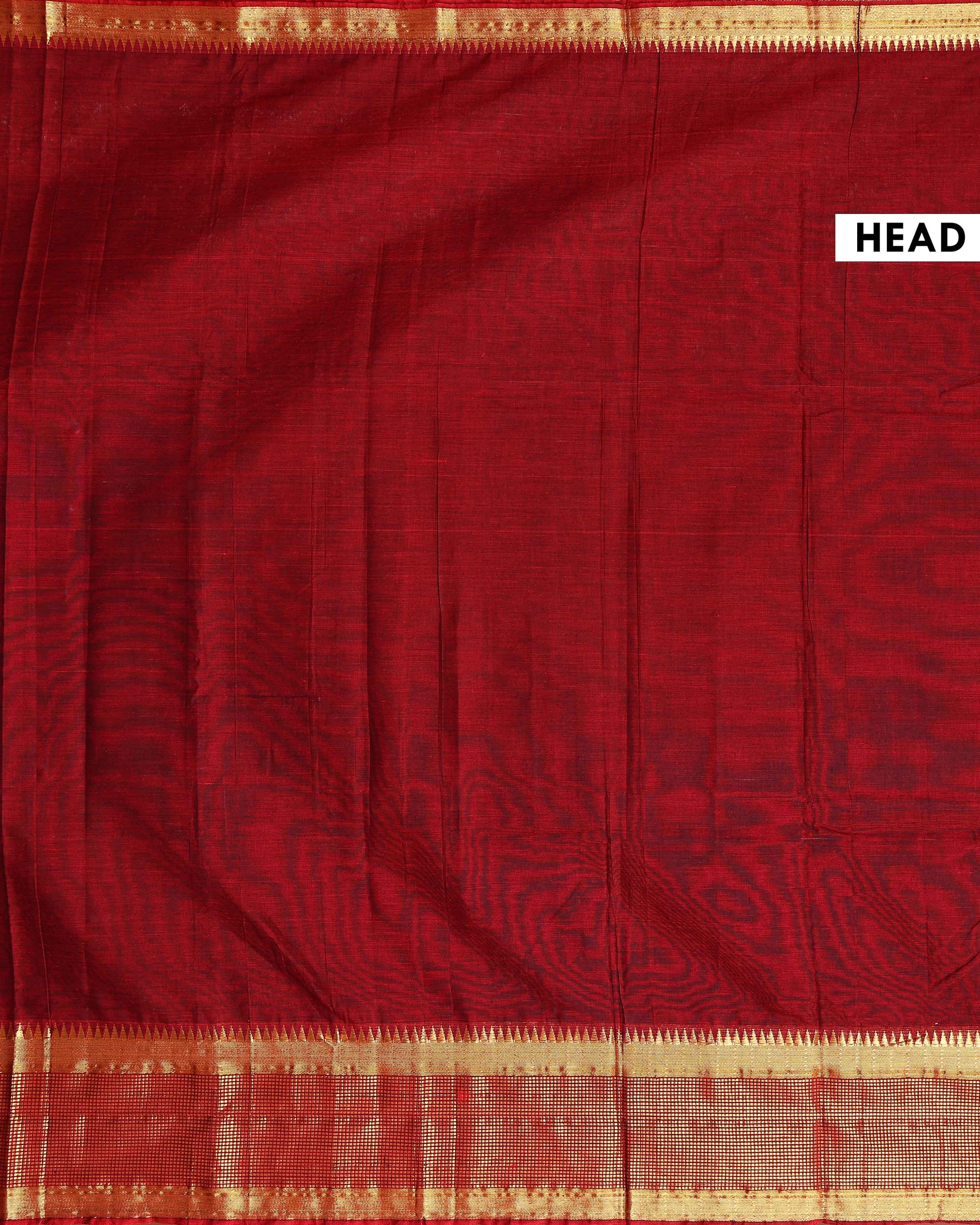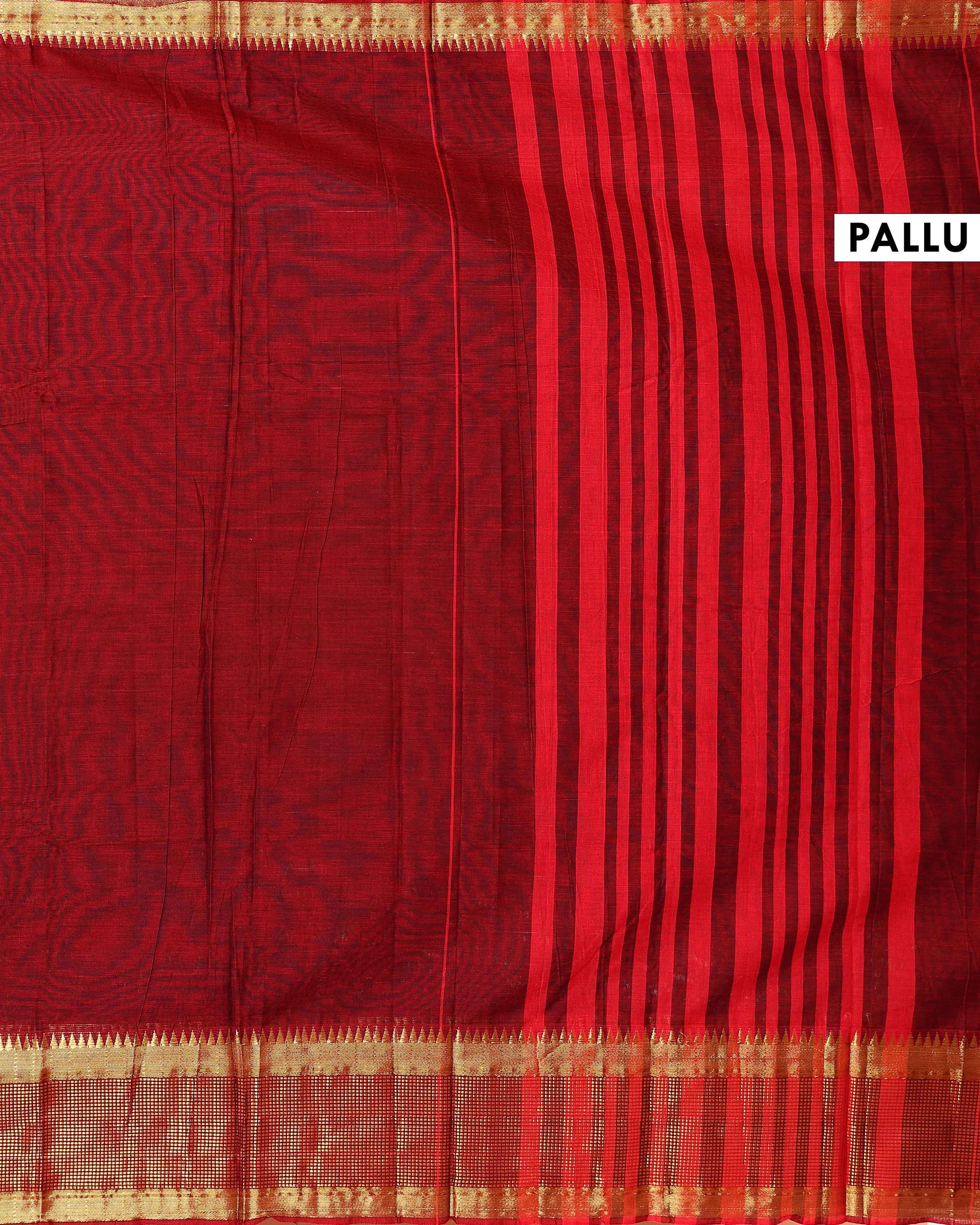 Traditional Handloom Narayanpet Cotton Saree with Traditional Contrast Zari Border - Red