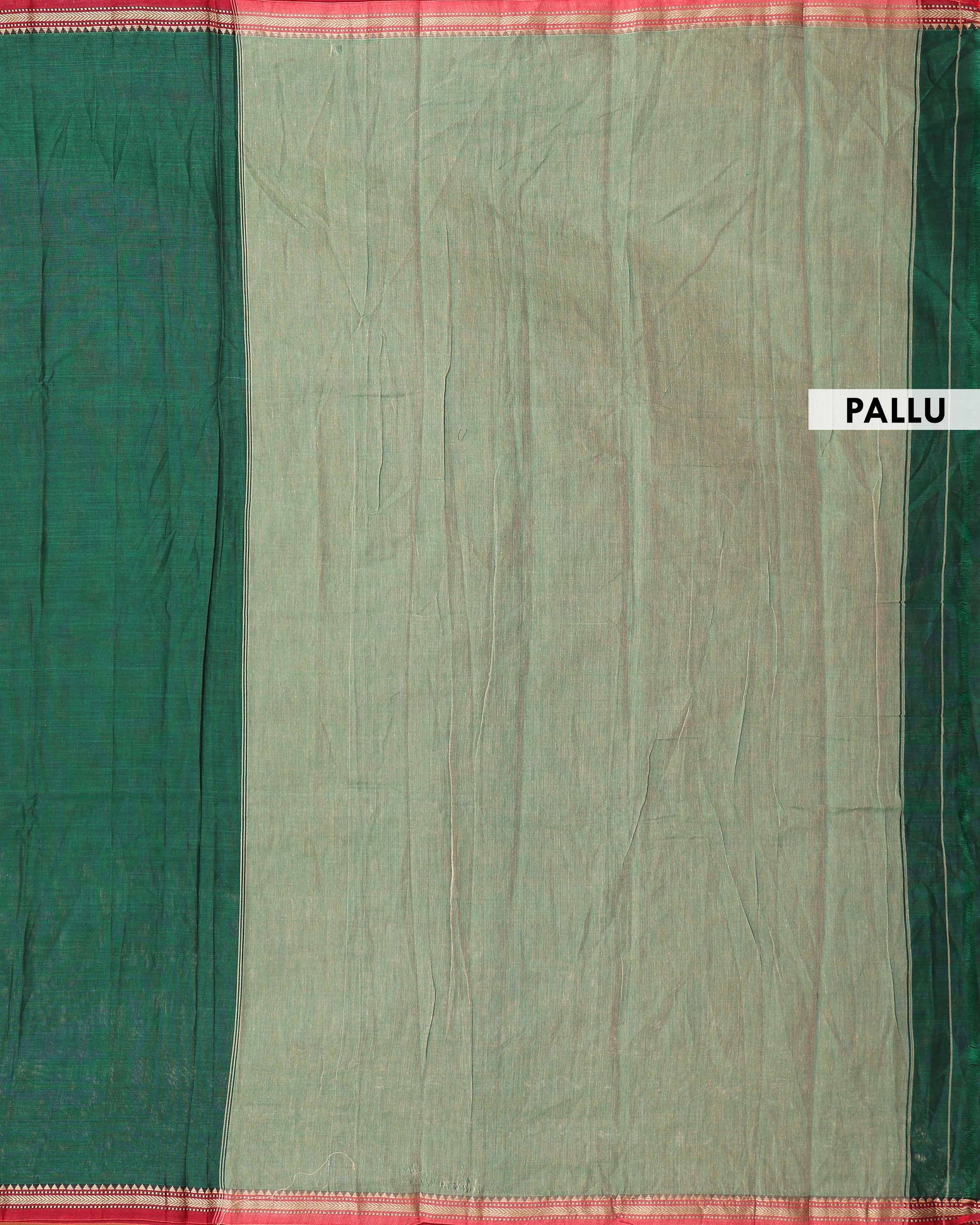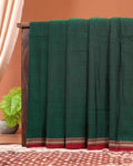 - Experience the artistry of handwoven with this elegant deep green cotton saree perfect for any occasion.