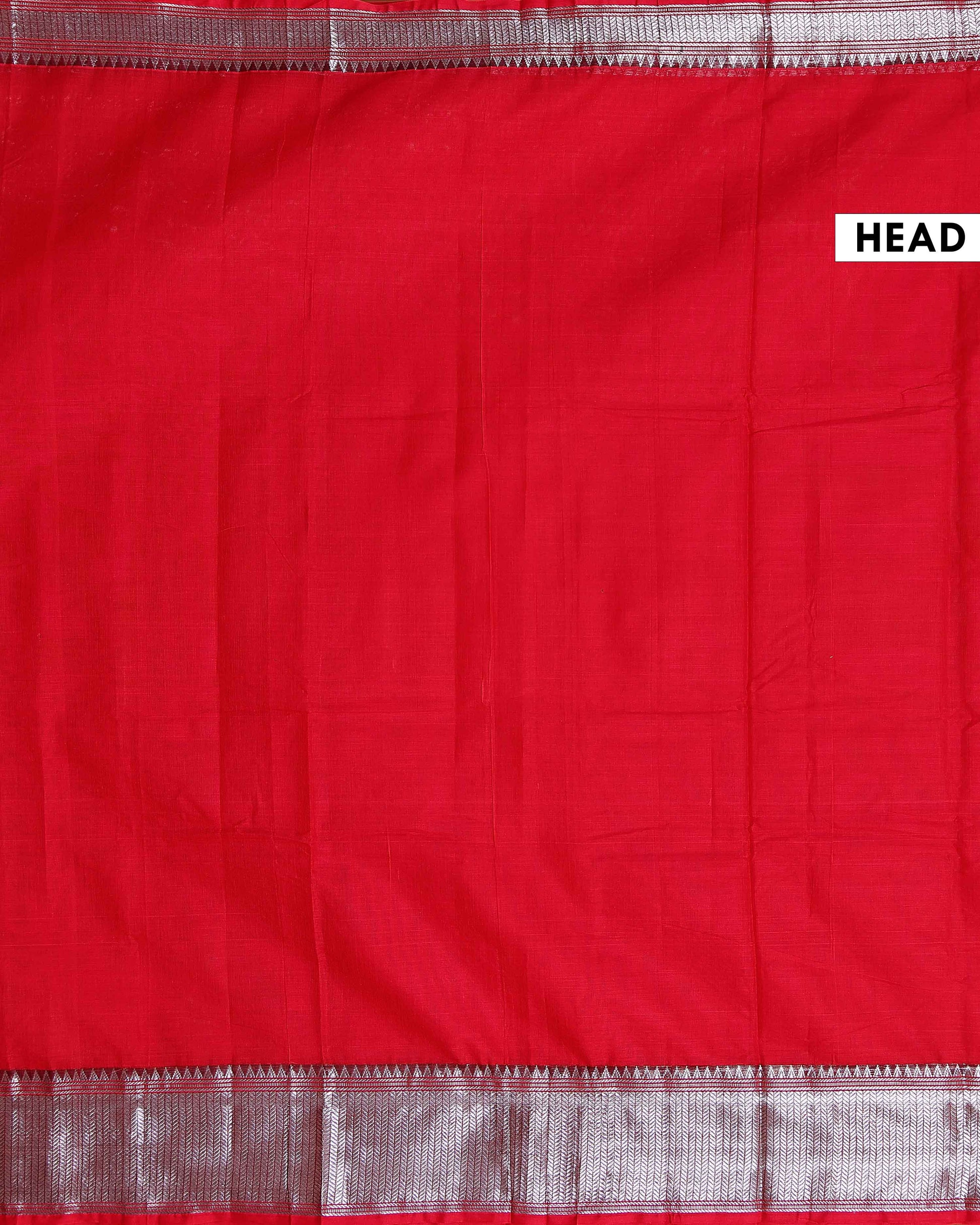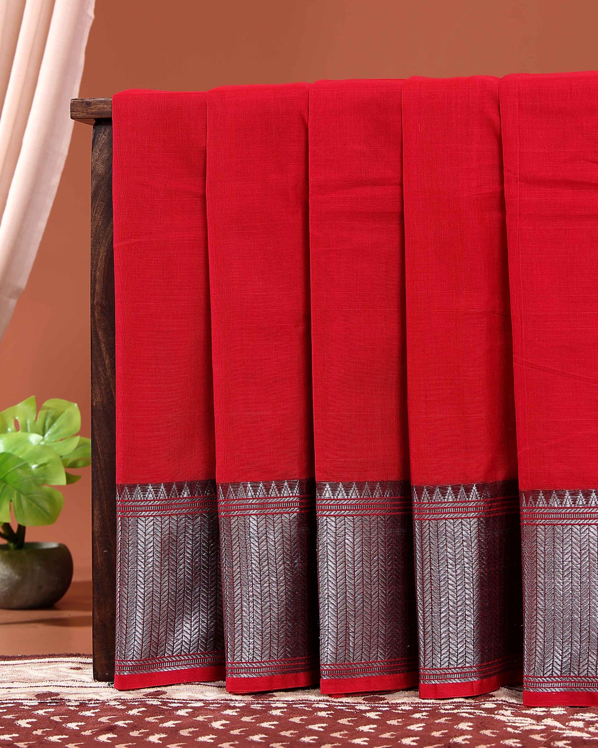 Traditional Handloom Narayanpet Cotton Saree with Traditional Woven Border - Red