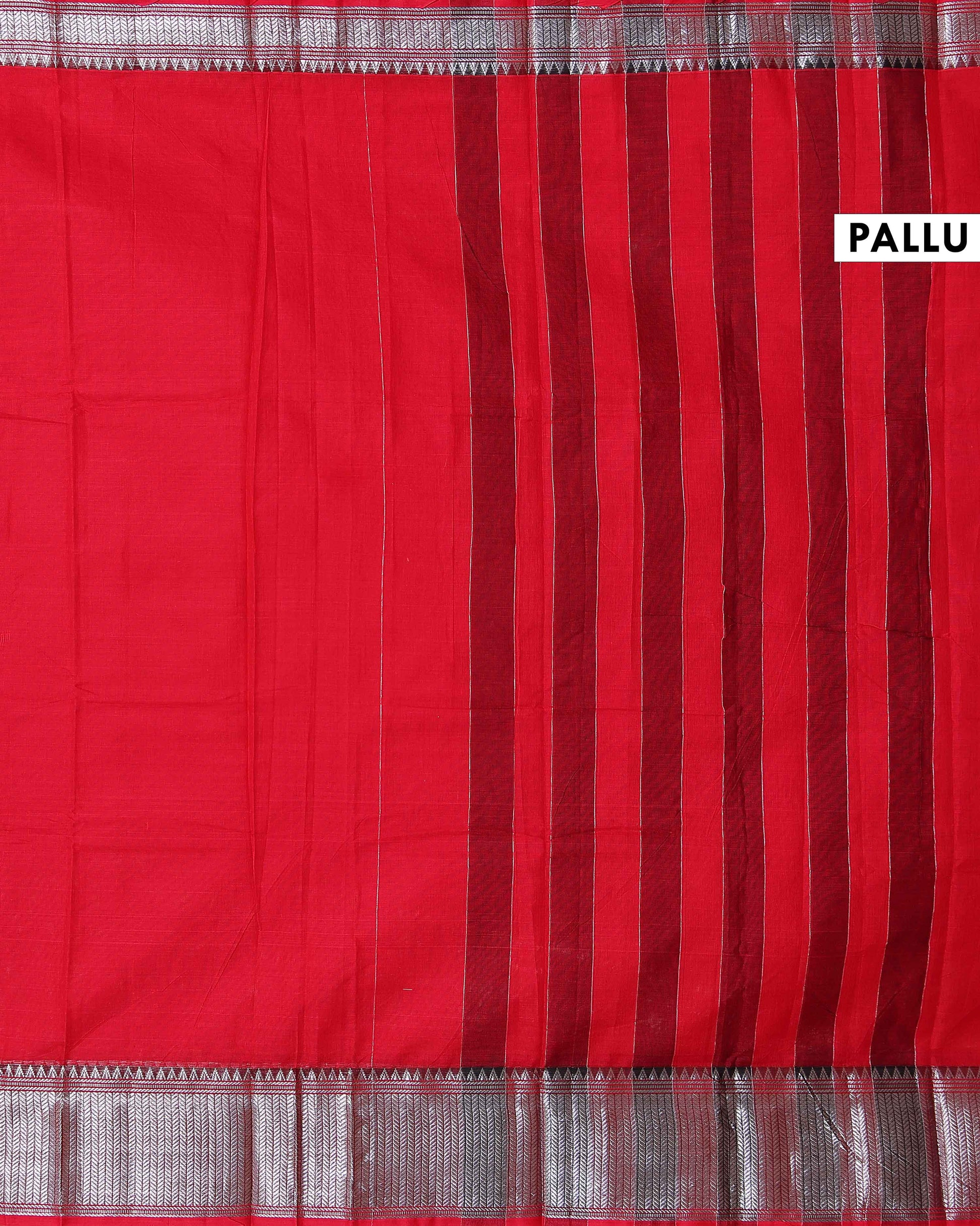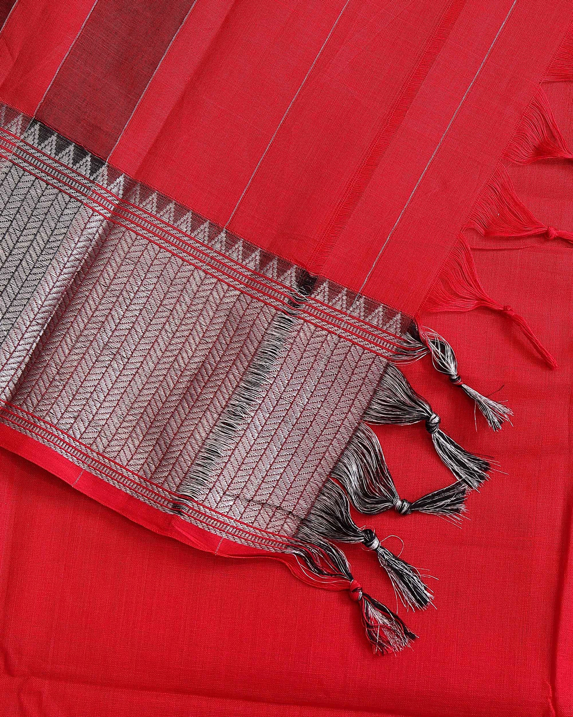 - Indulge in the understated elegance of this handloom Narayanpet cotton saree a Red body with a striking contrast black border.