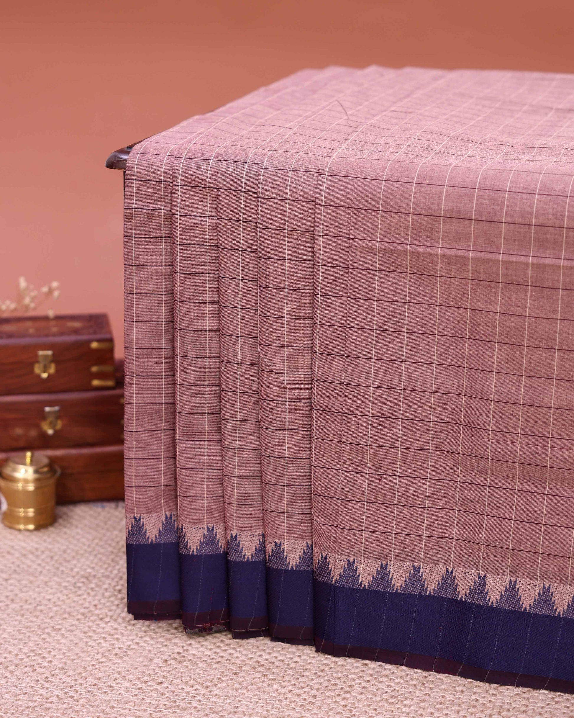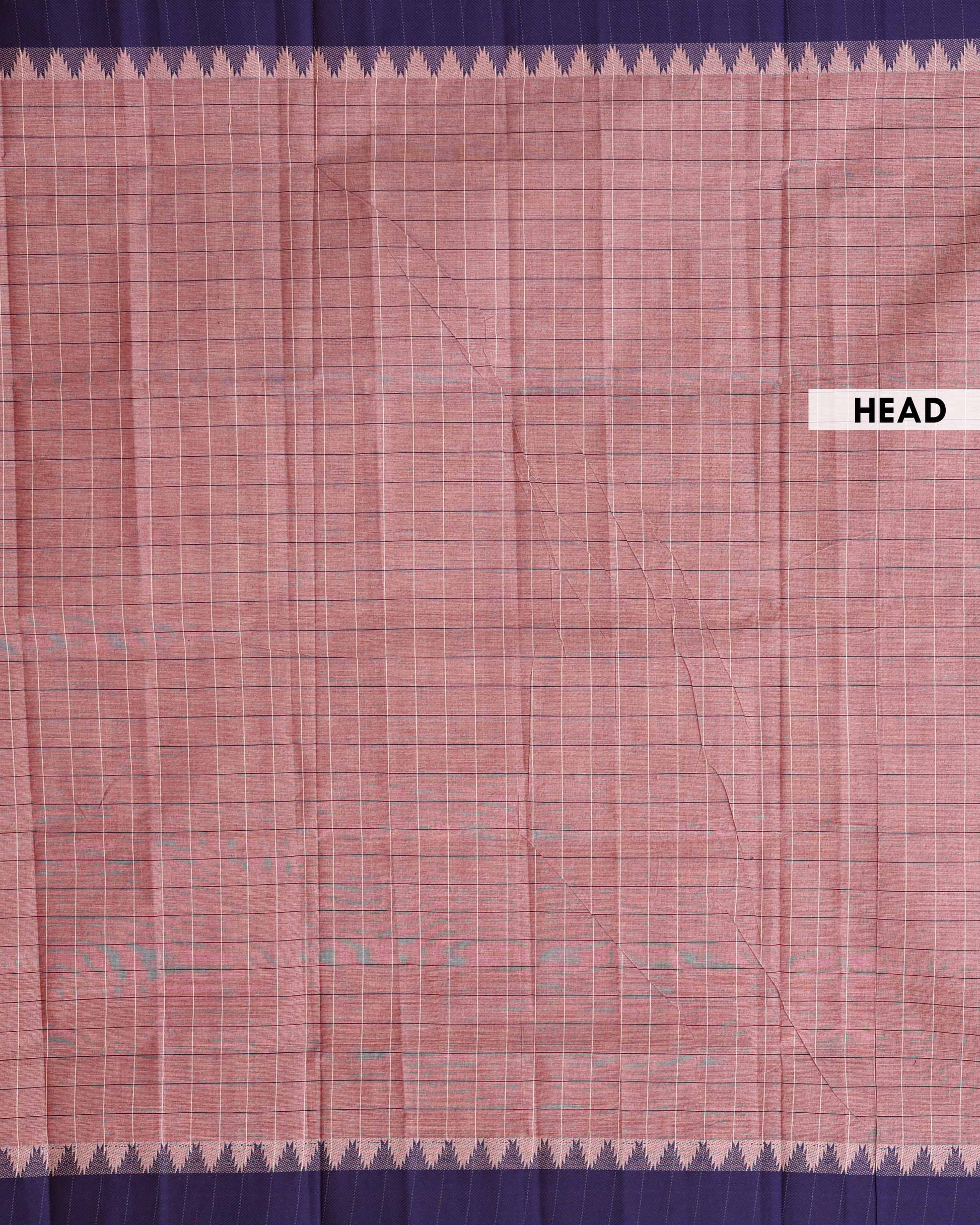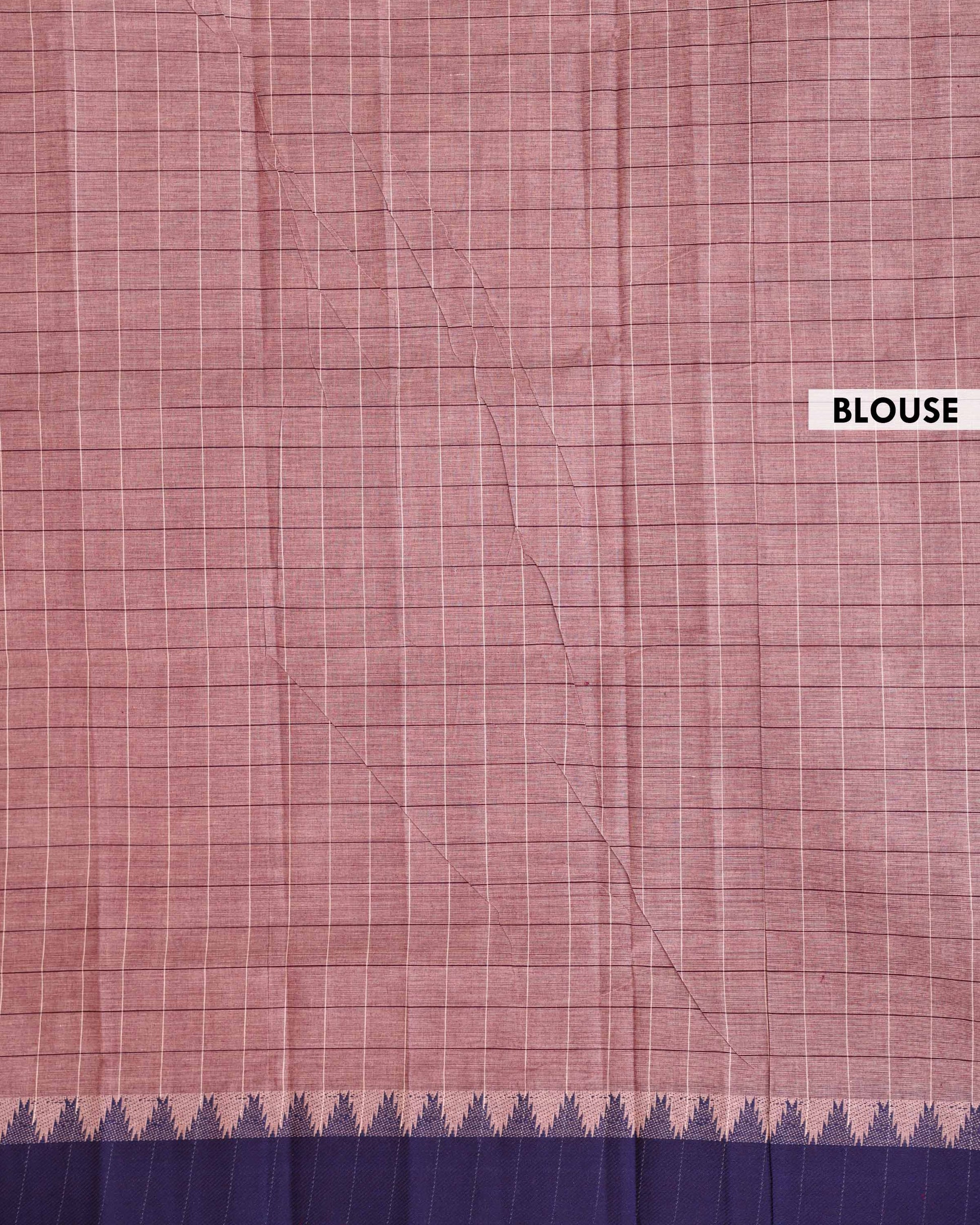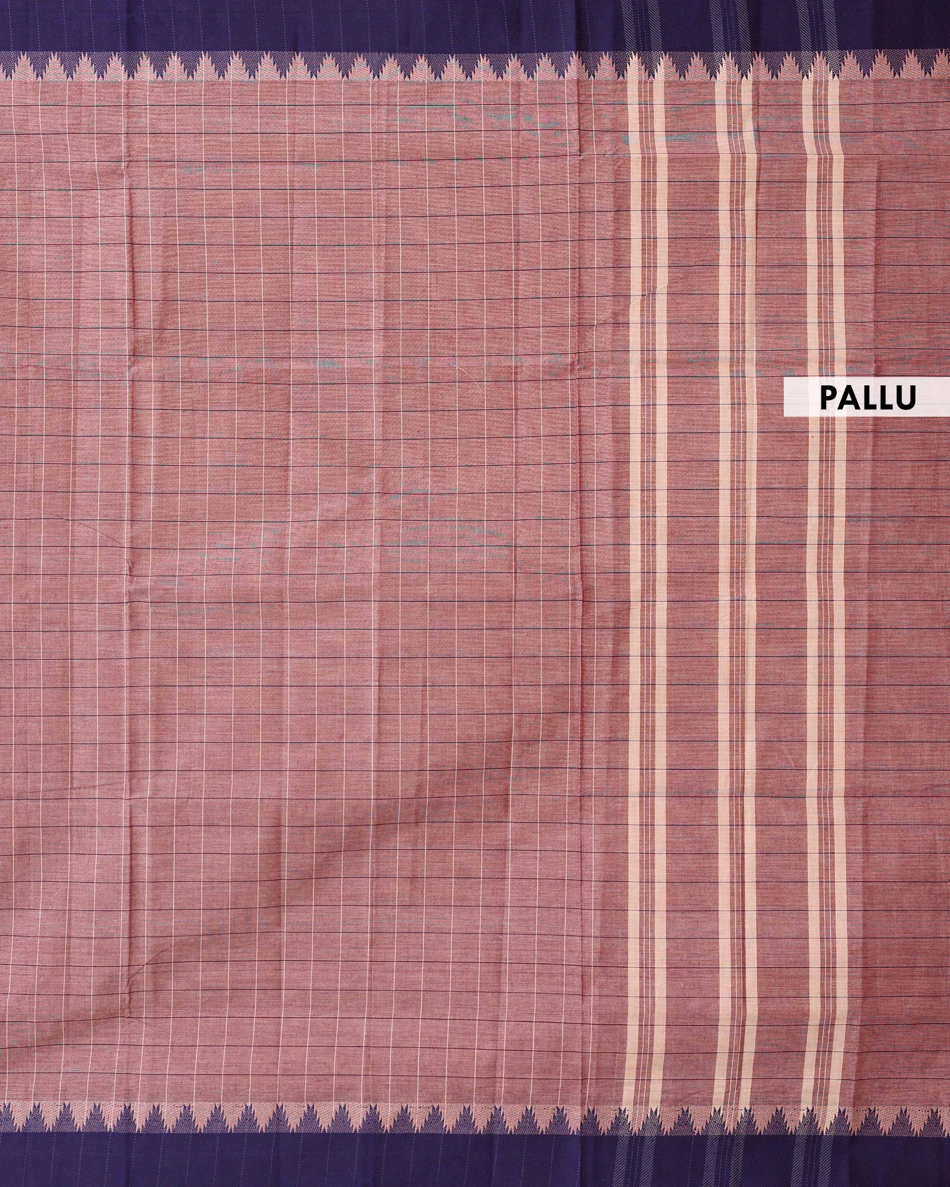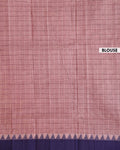 - This Venkatagiri handloom cotton saree a classic checked design in shades of peach and purple, offering comfort and traditional elegance.