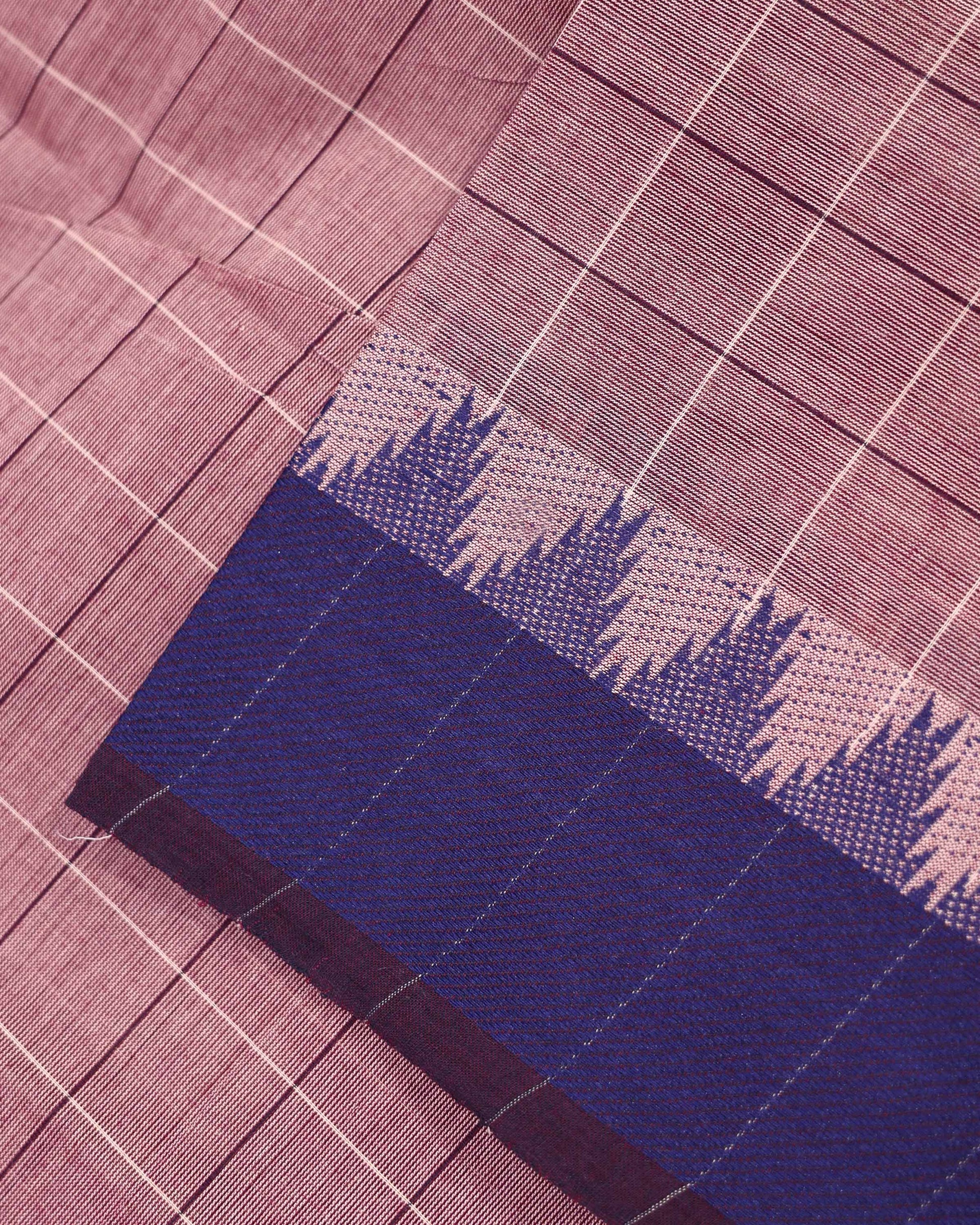 Traditional Handloom Venkatagiri Cotton Saree with Checked Pattern Body and Elegant Woven Border - Light Purple