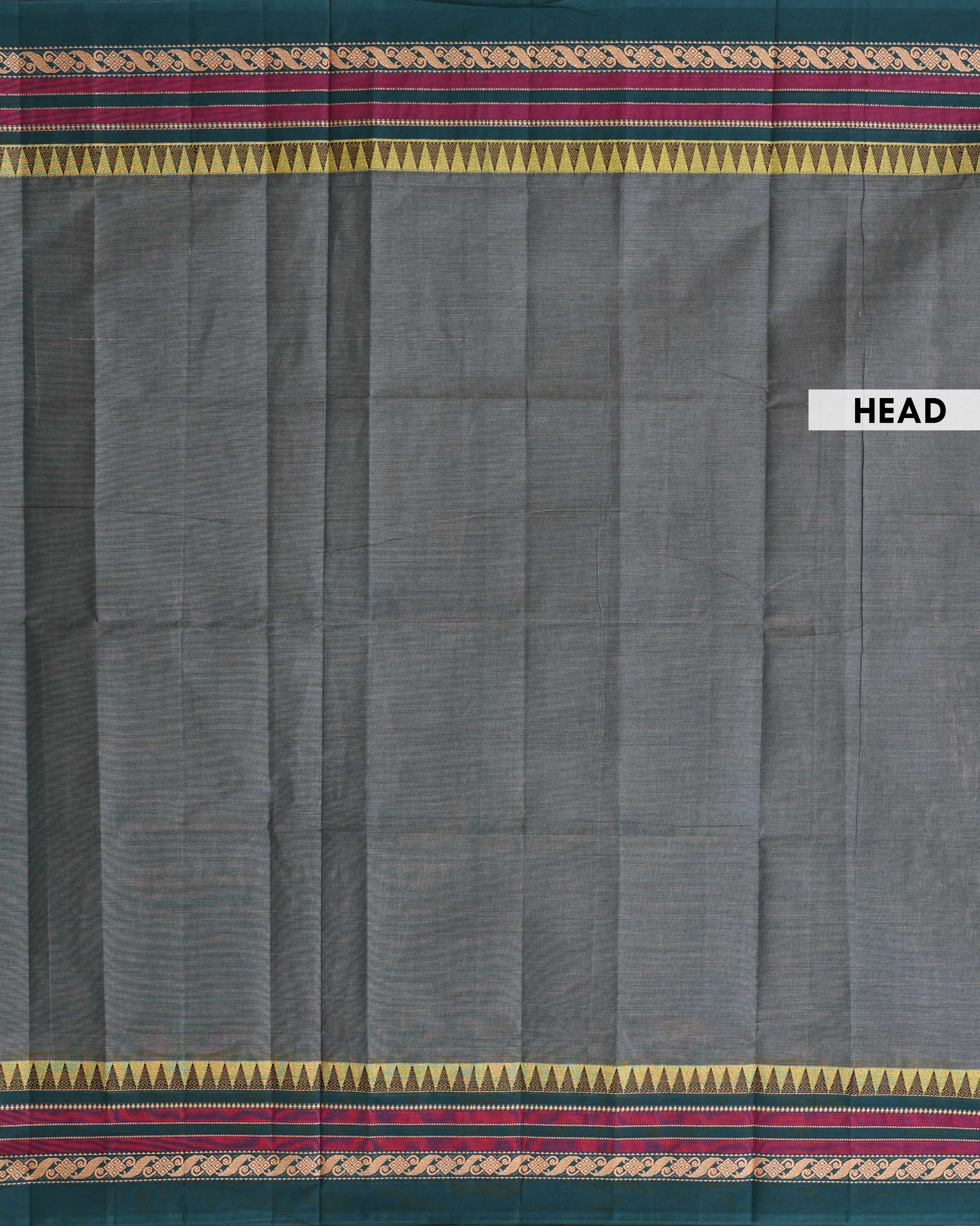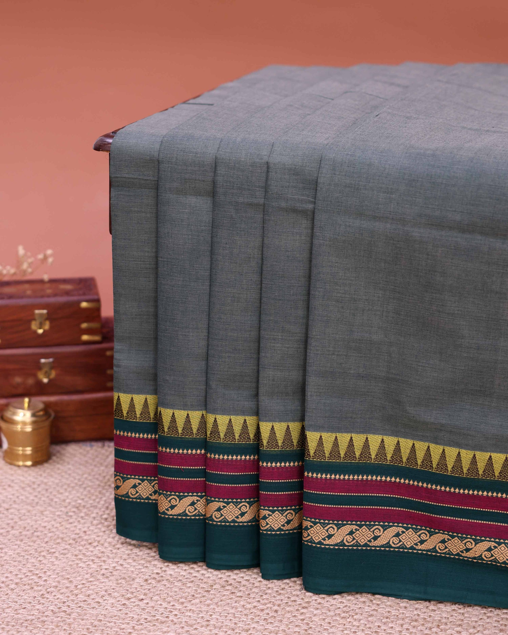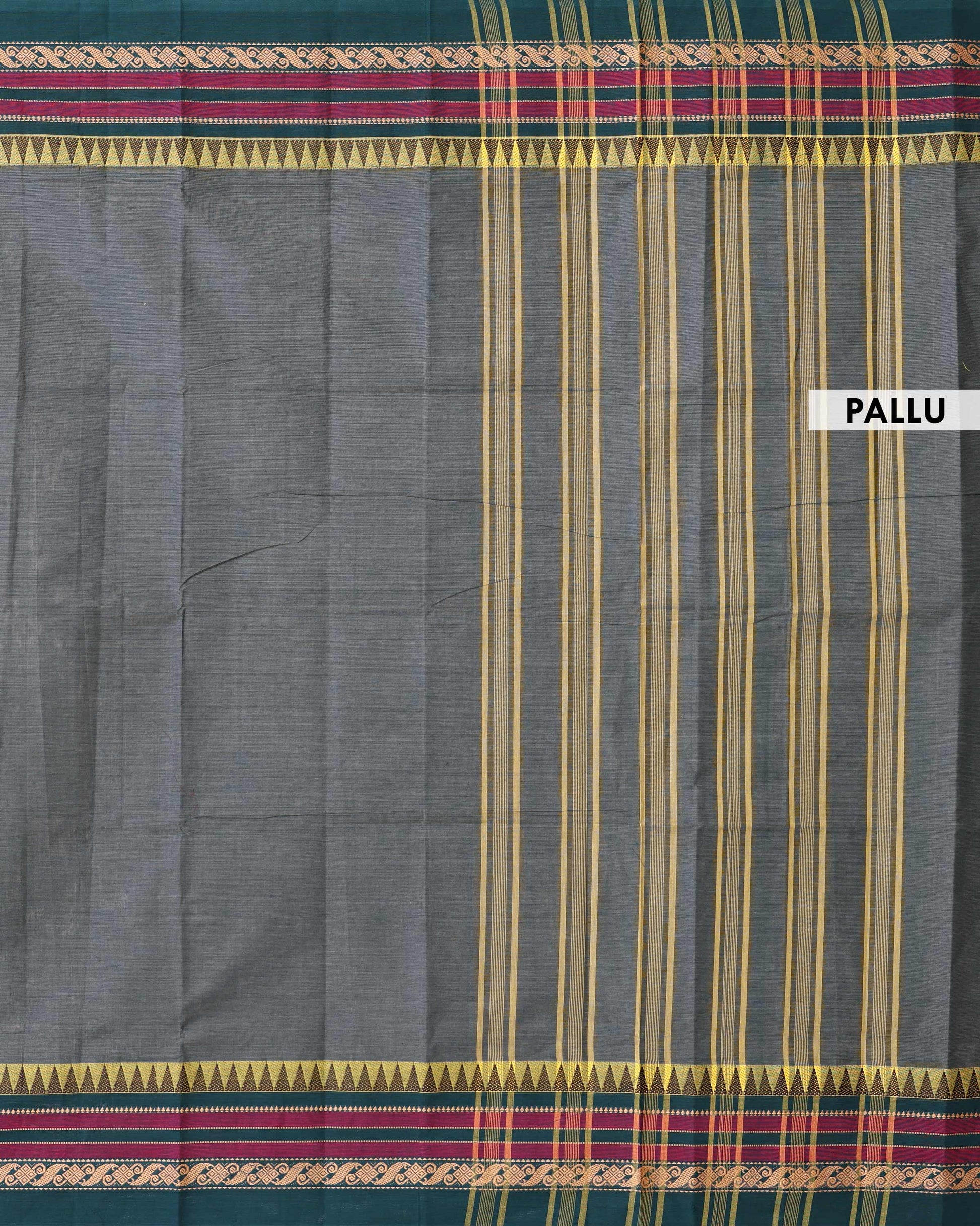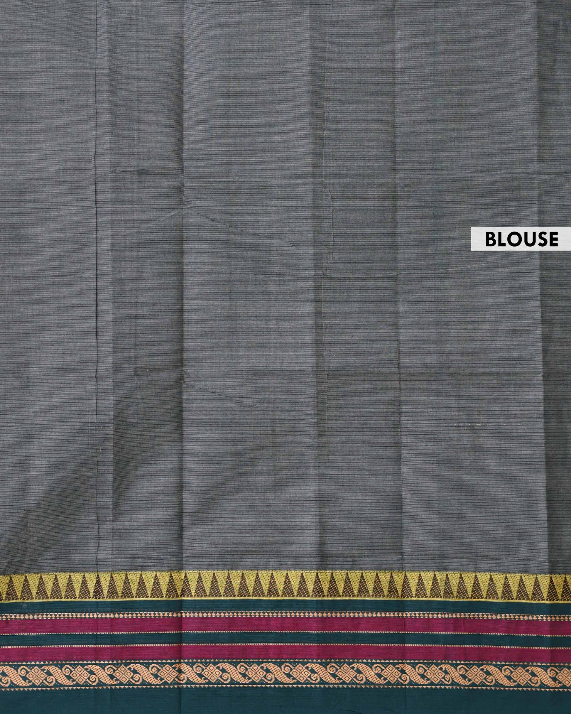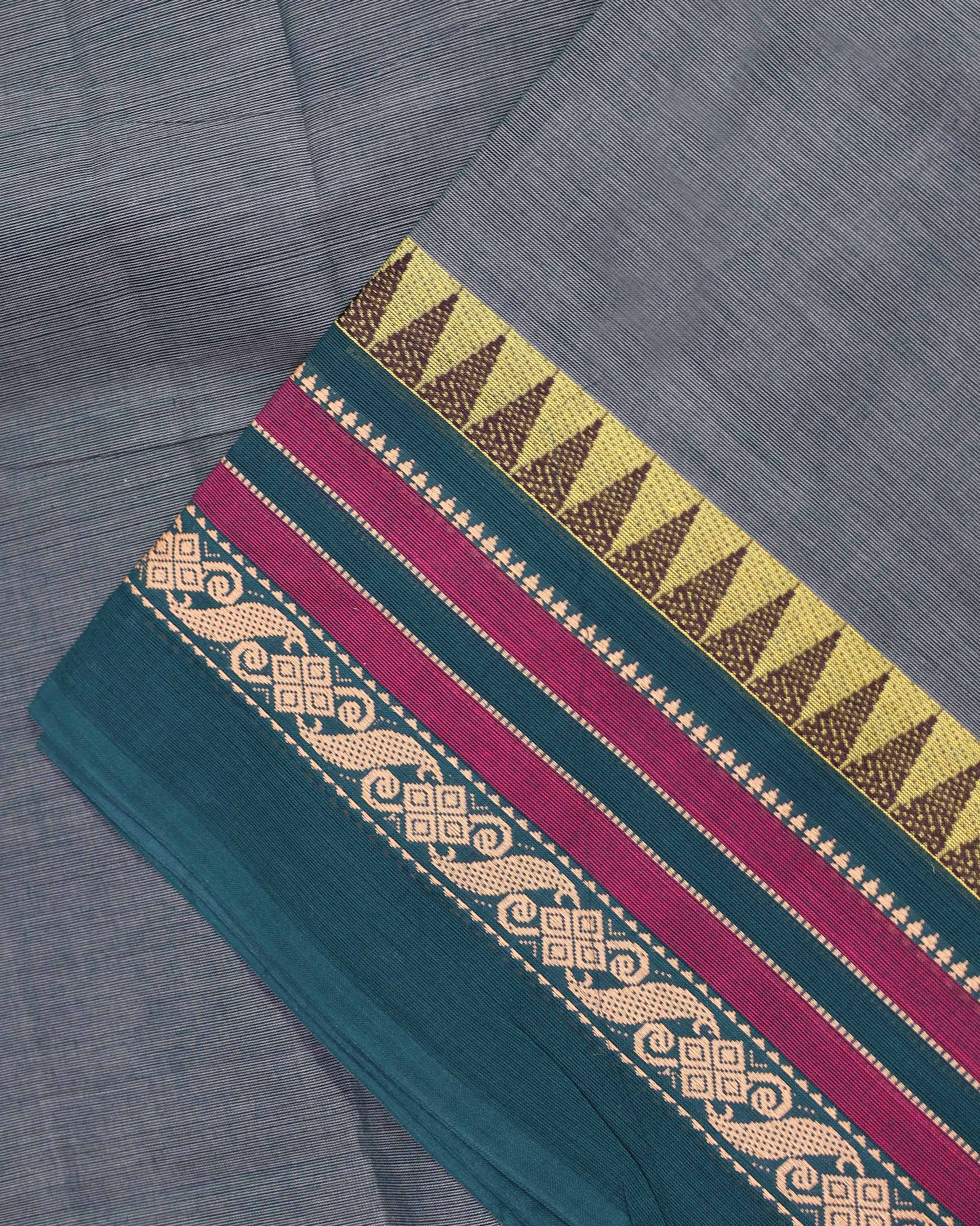 - This elegant Grey Venkatagiri Cotton saree crafted from a lightweight cotton a classic pattern and rich contrasting borders