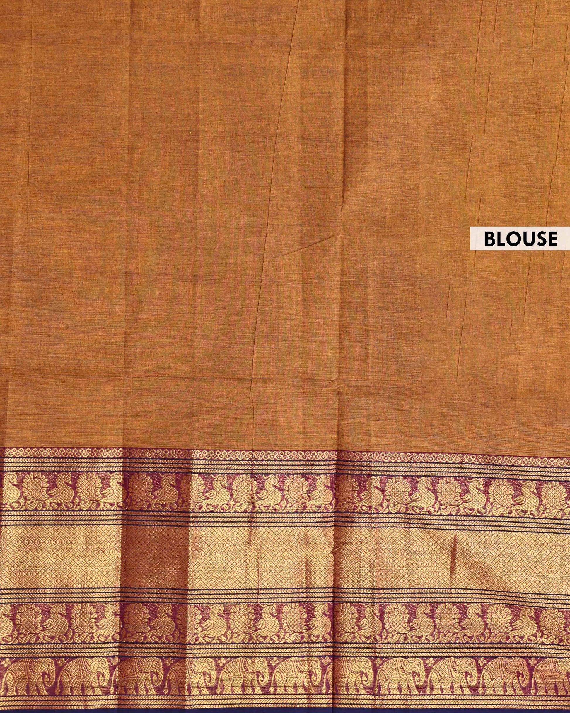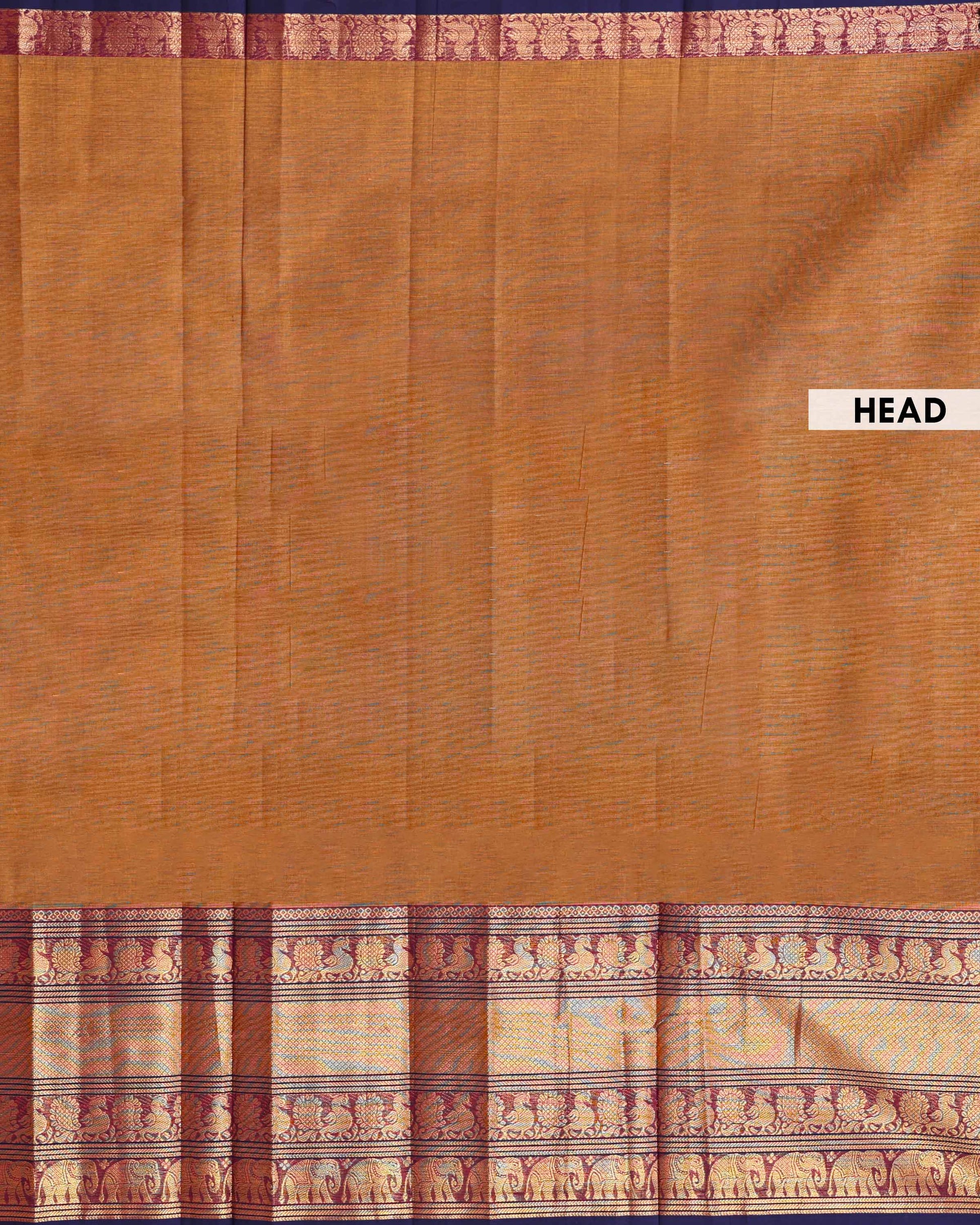 Traditional Handloom Venkatagiri Cotton Saree with Plain Body and Zari Woven Peacock & Elephant Temple Border - Mustard Yellow