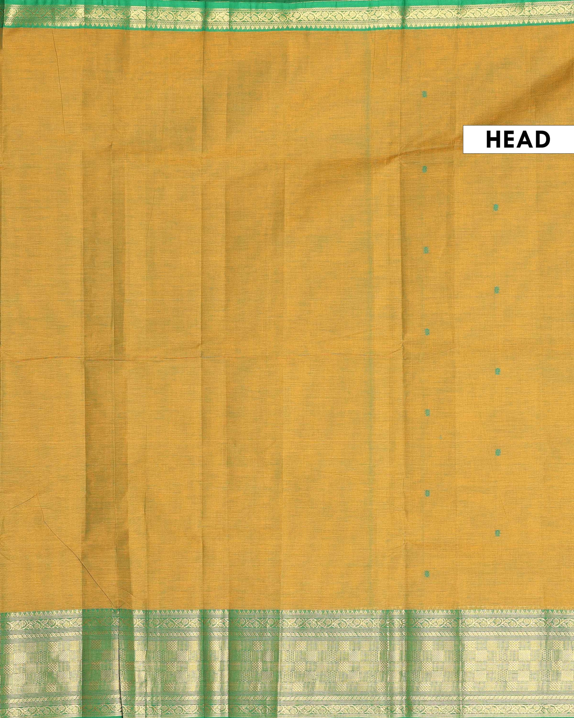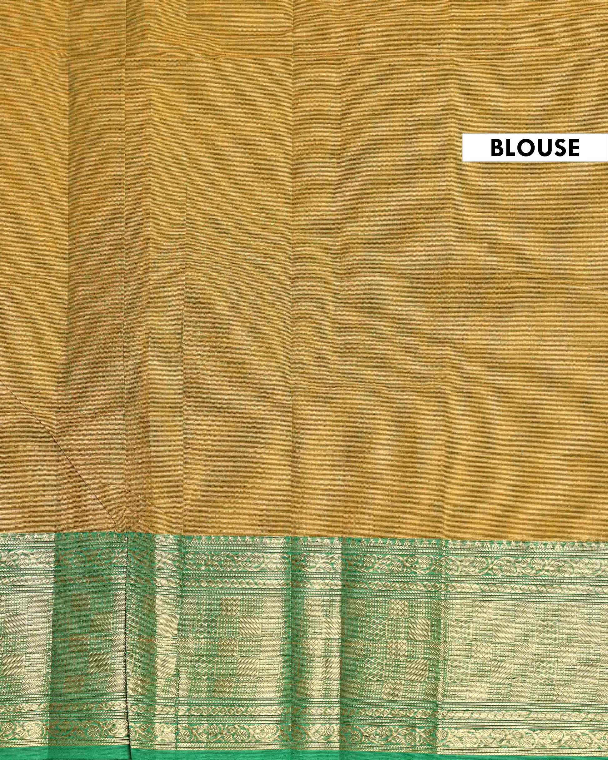 - Drape yourself in tradition with this vibrant Olive Green Chettinad handloom cotton saree a striking Green border and intricate Zari work.