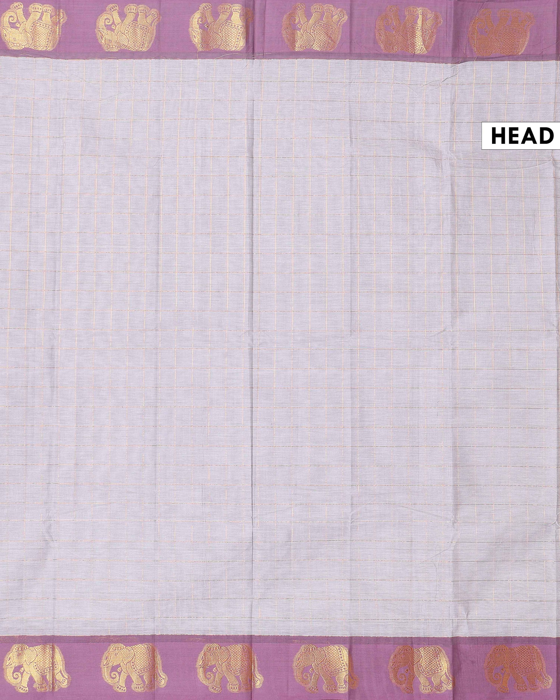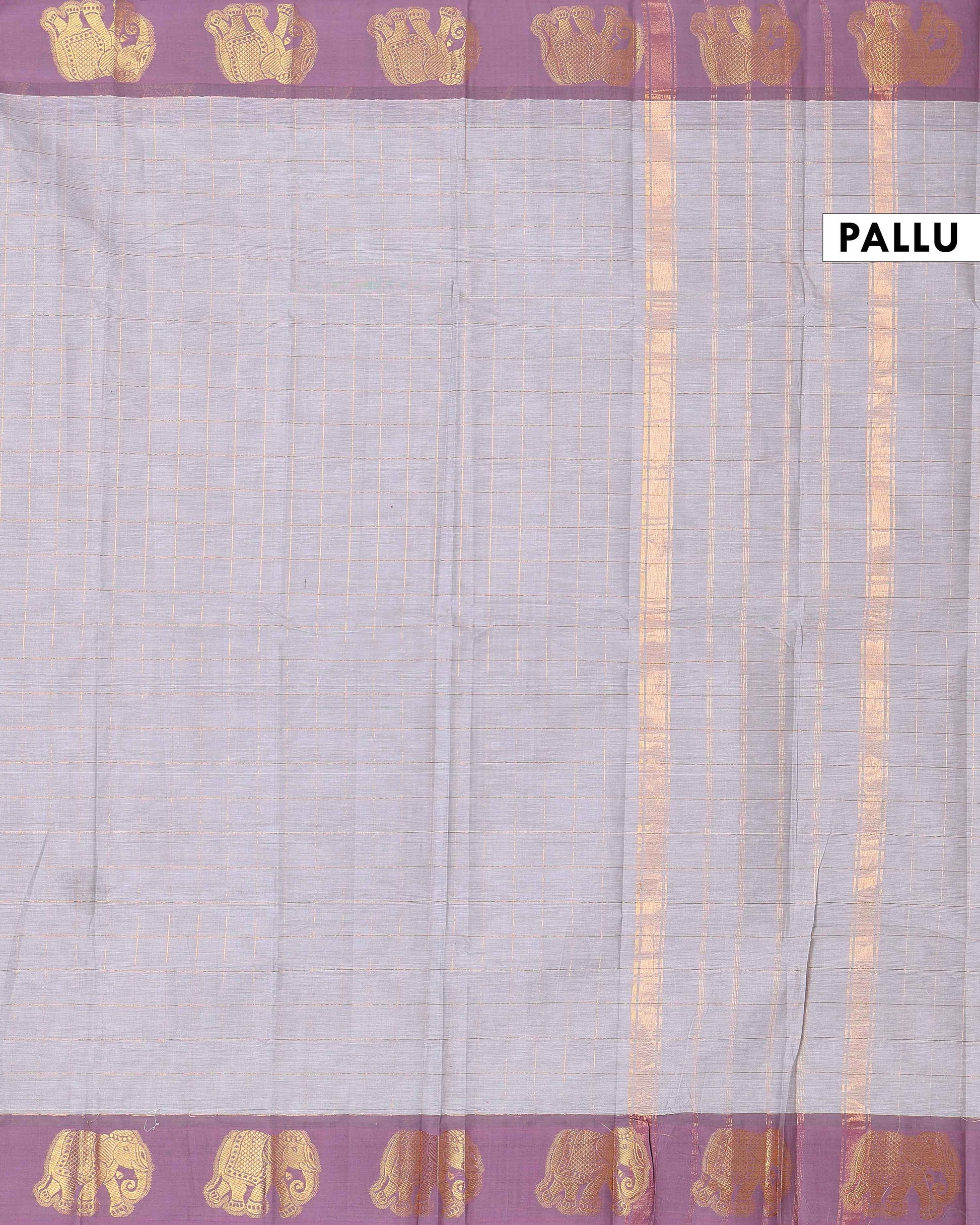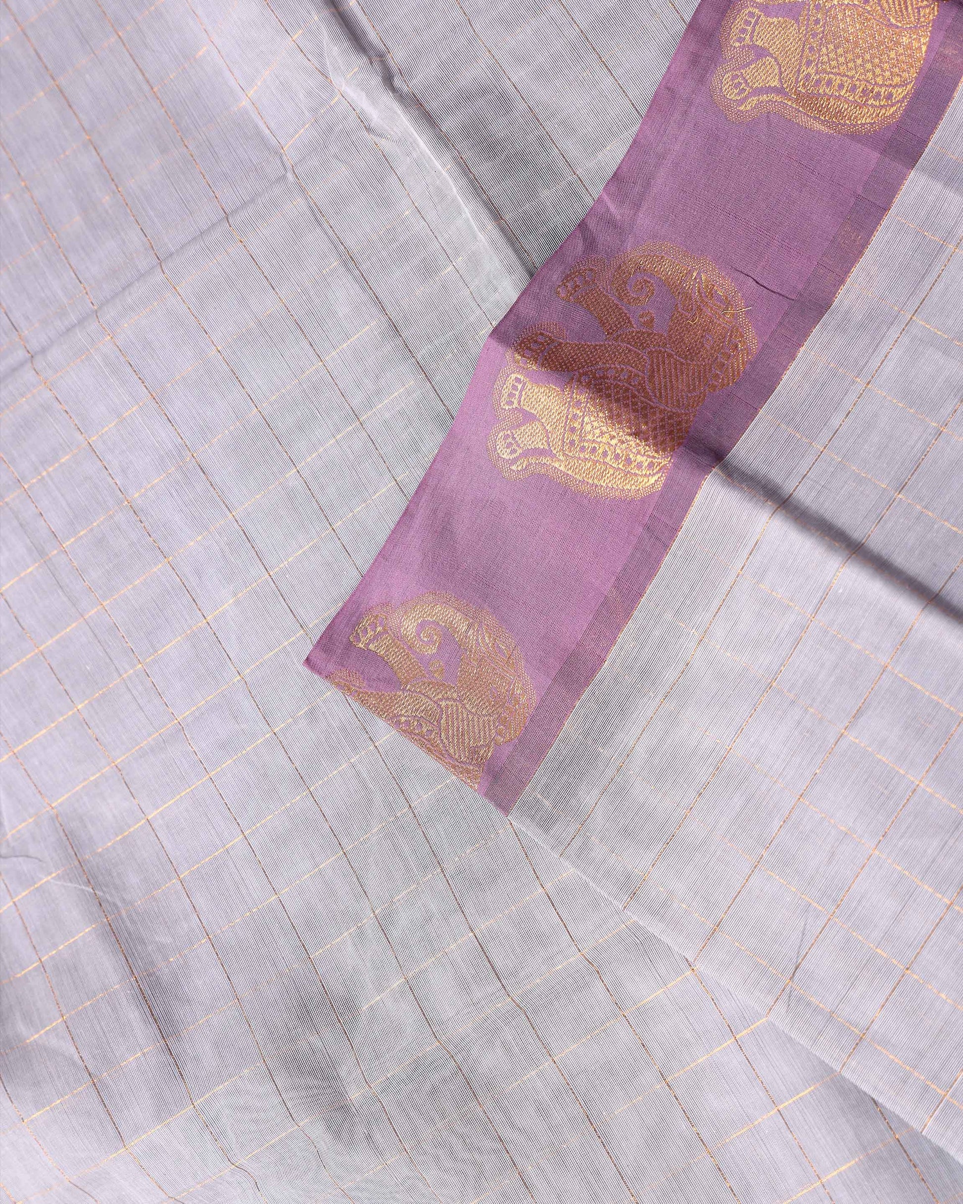 Traditional Handwoven Chettinad Cotton Saree with Traditional Elephant Motif Border - Grey