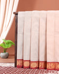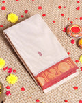 Traditional Handwoven Kanchi Cotton Saree with Rich Zari Border Traditional Peacock Motifs & Elegant Soft Weave Finish Without Blouse- Light Sandal