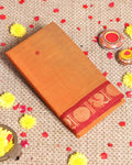 Traditional Handwoven Kanchi Cotton Saree with Rich Zari Border Traditional Peacock Motifs & Elegant Soft Weave Finish Without Blouse - Orange
