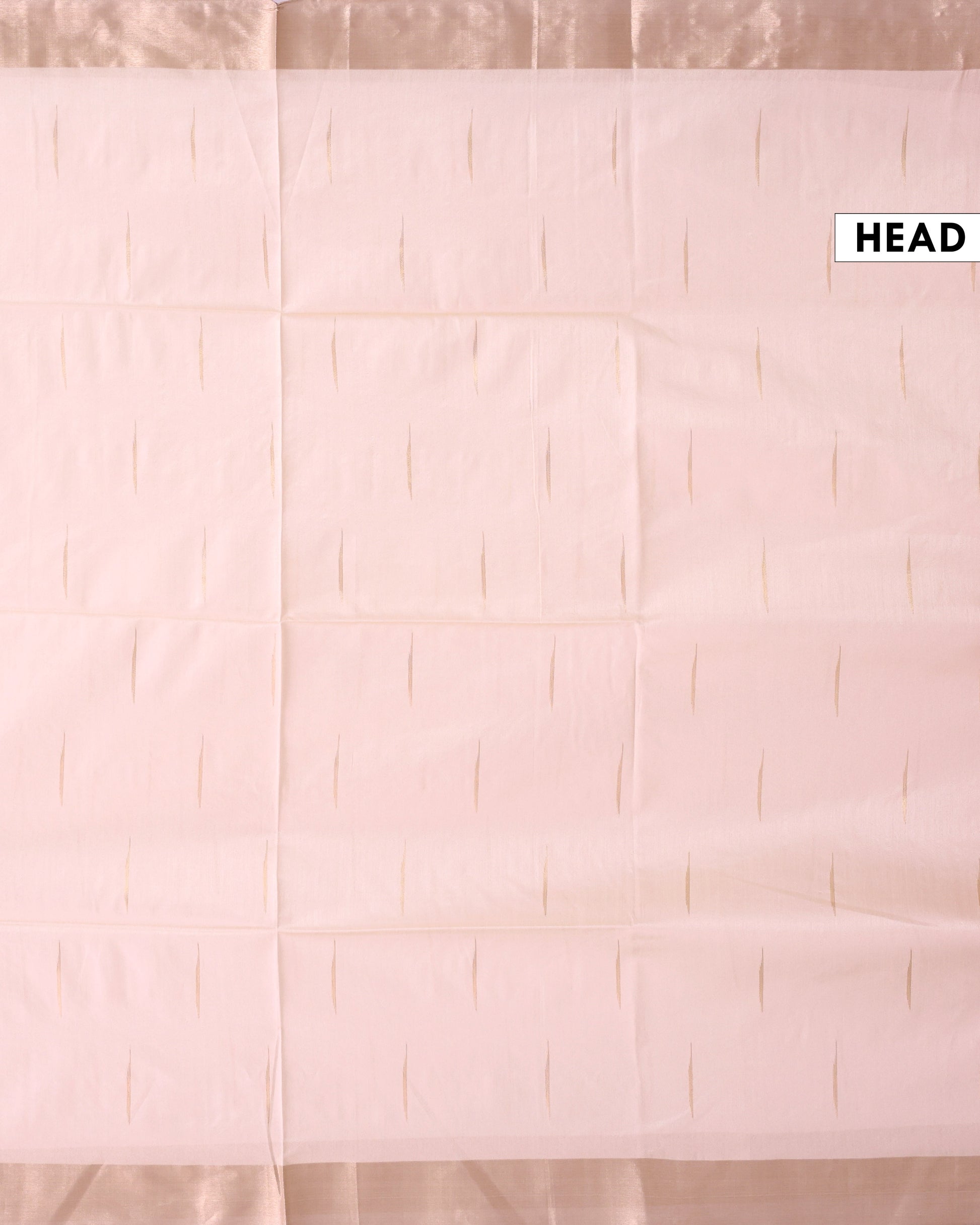 Traditional Handwoven Raw Silk Saree with Butti Motifs and Classic Zari Woven Border - Cream