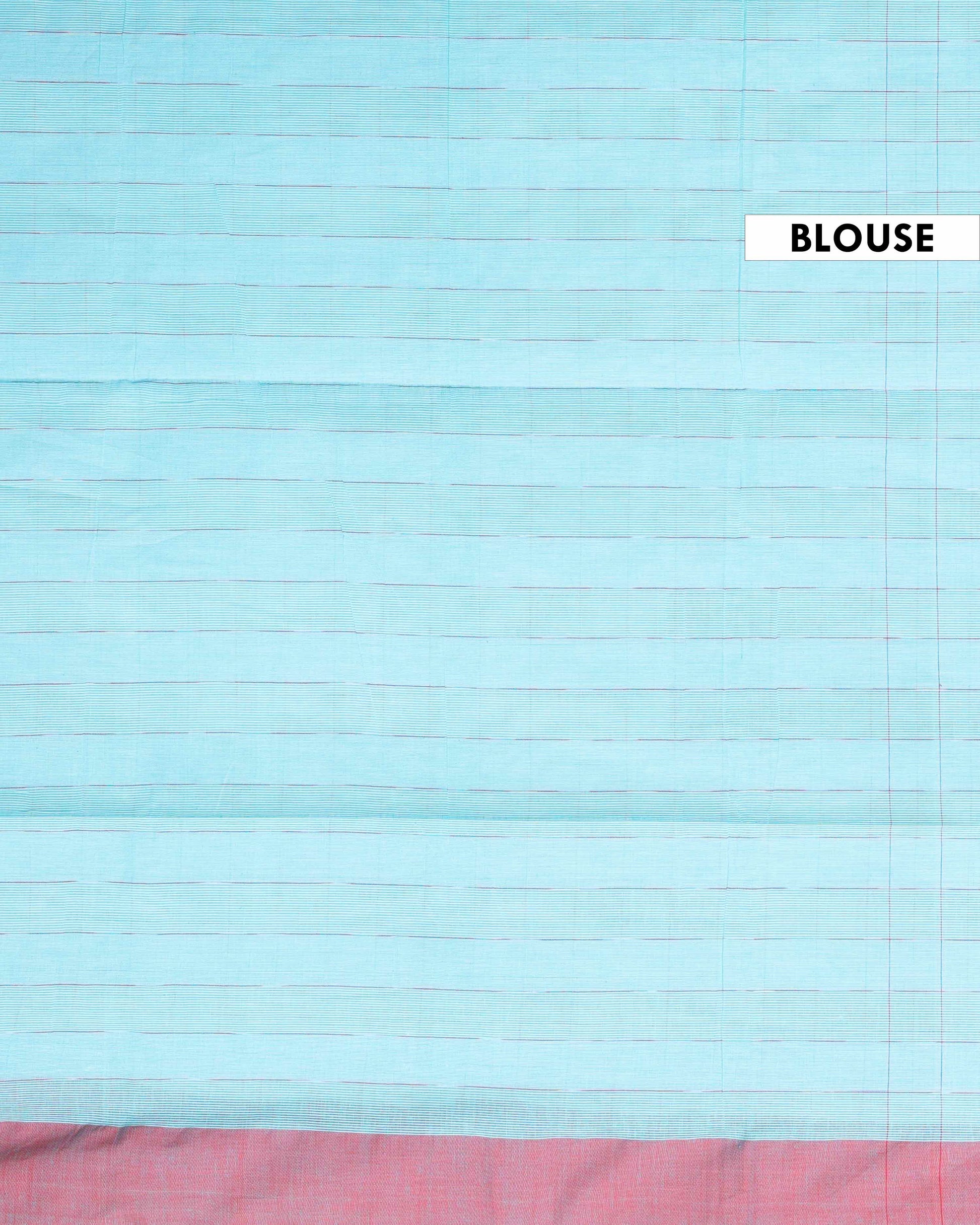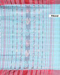 Traditional Ikkat Cotton Saree with Checked Pattern and Contrast Border - Sky Blue