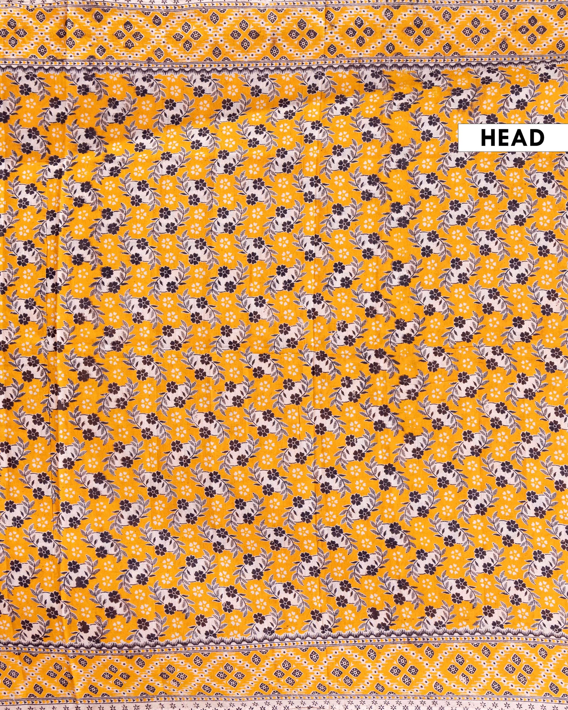 Traditional Kalamkari Cotton Saree featuring Handcrafted Floral and Geometric Patterns - Yellow