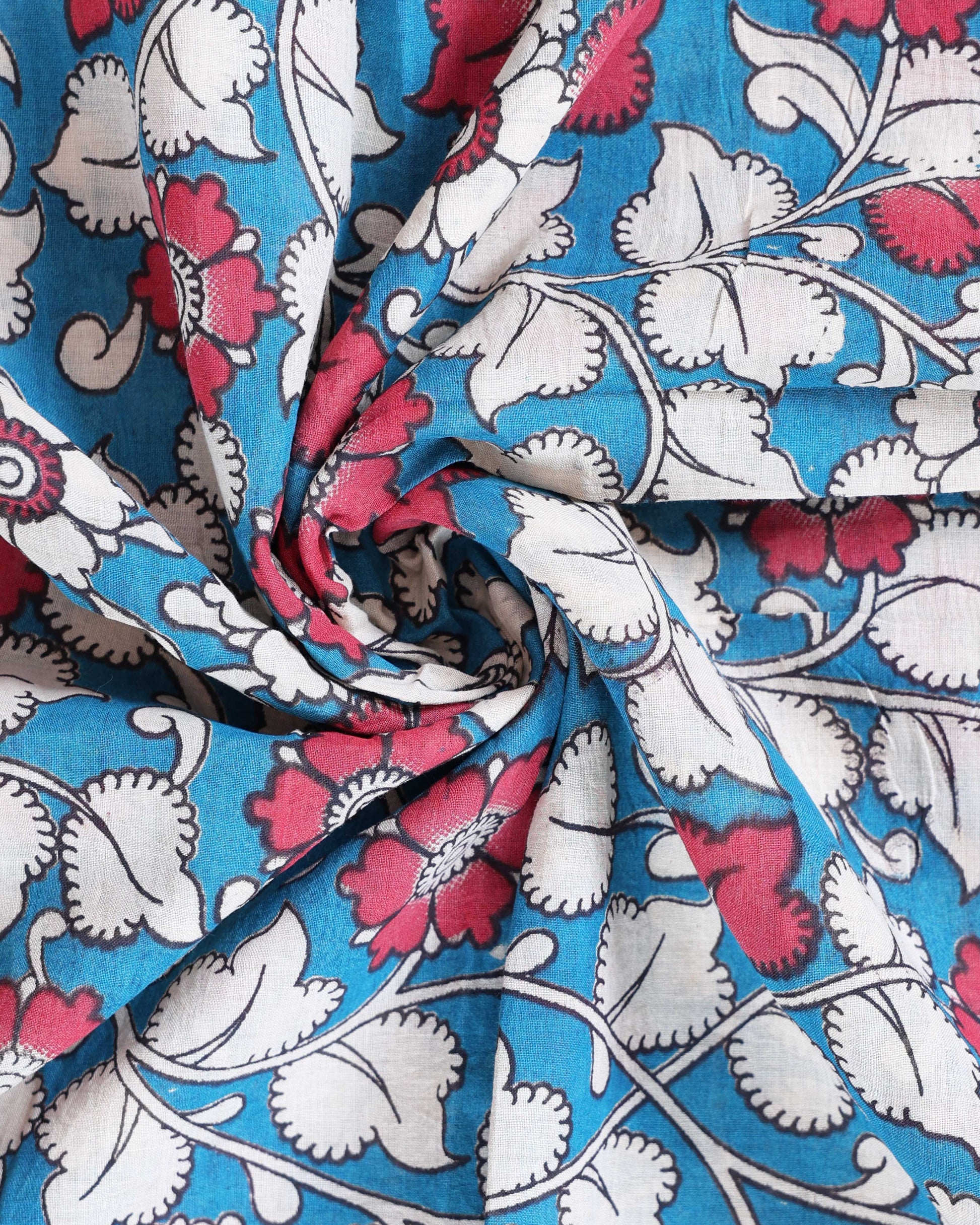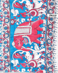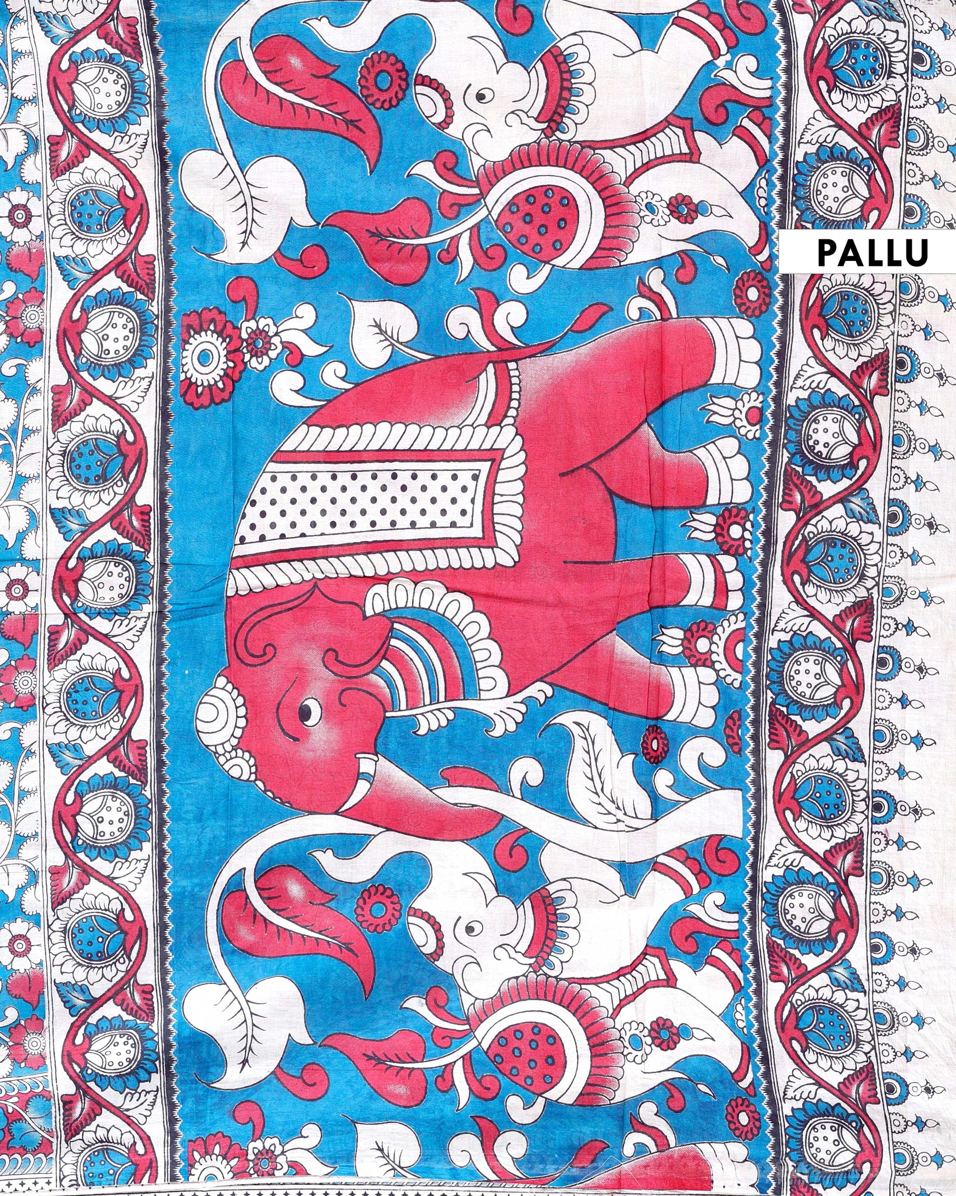 Traditional Kalamkari Cotton Saree with Intricate Floral & Leafy Motifs - Blue