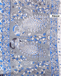 Traditional Kalamkari Cotton Saree with Intricate Floral & Leafy Motifs - Grey