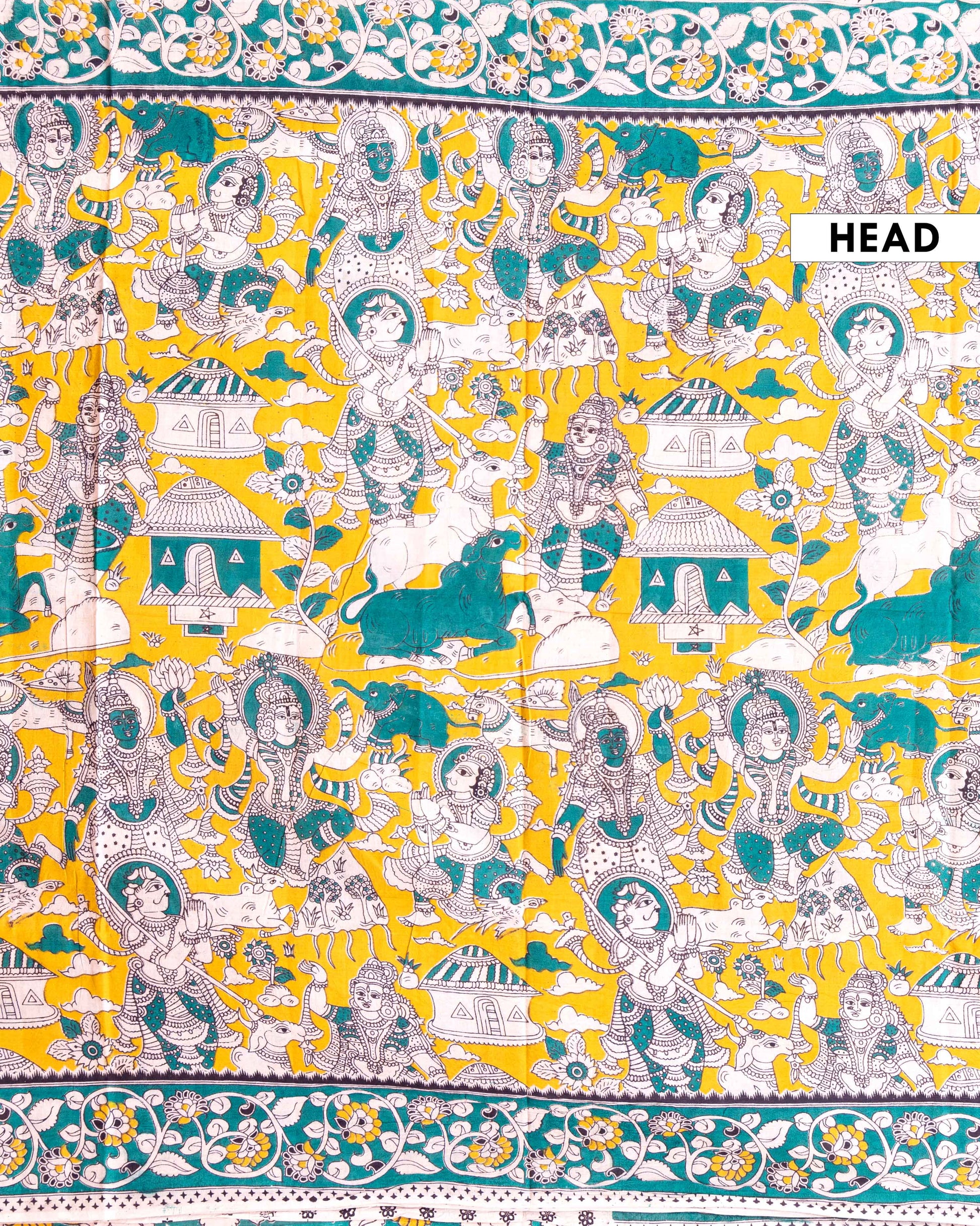 Traditional Kalamkari Cotton Saree with Mythological Motifs - Orange