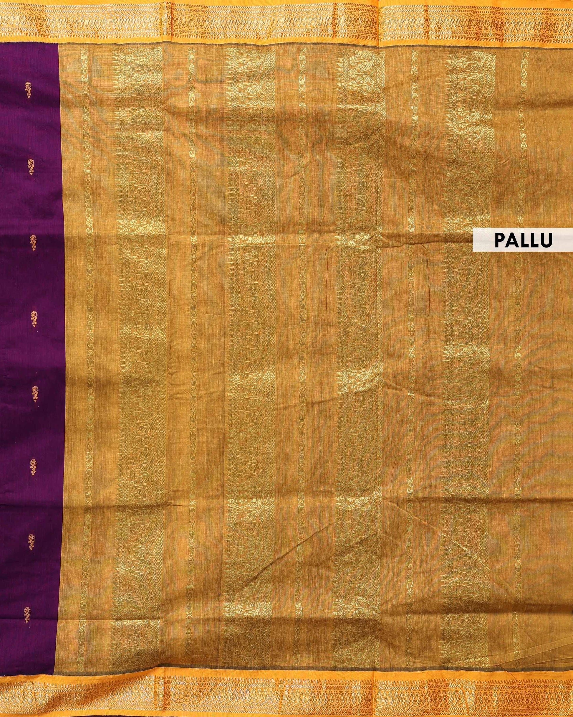 Traditional Kalyani Cotton Saree with Traditional Gold Zari Border and Elegant Woven Butta Detailing - Dark Purple