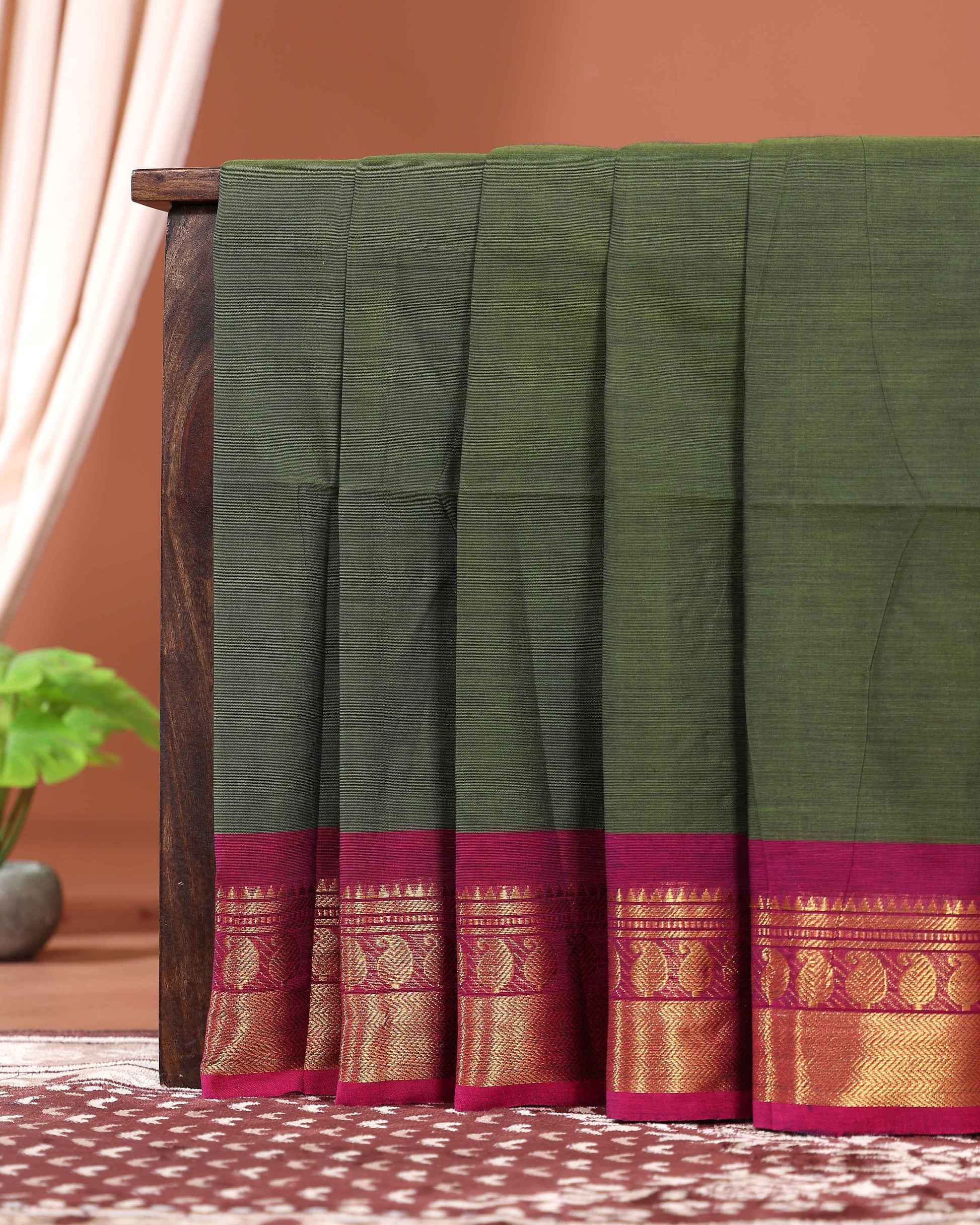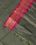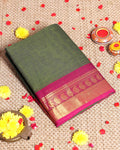Traditional Kanchi Cotton Saree with Intricate Zari Mango Border and Classic Handloom Weave - Dark Green