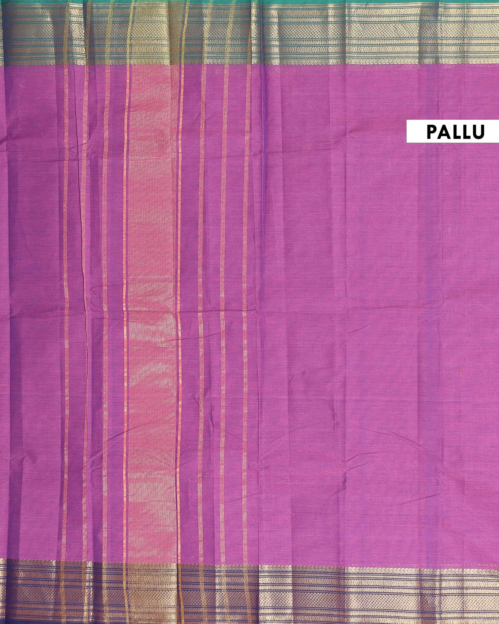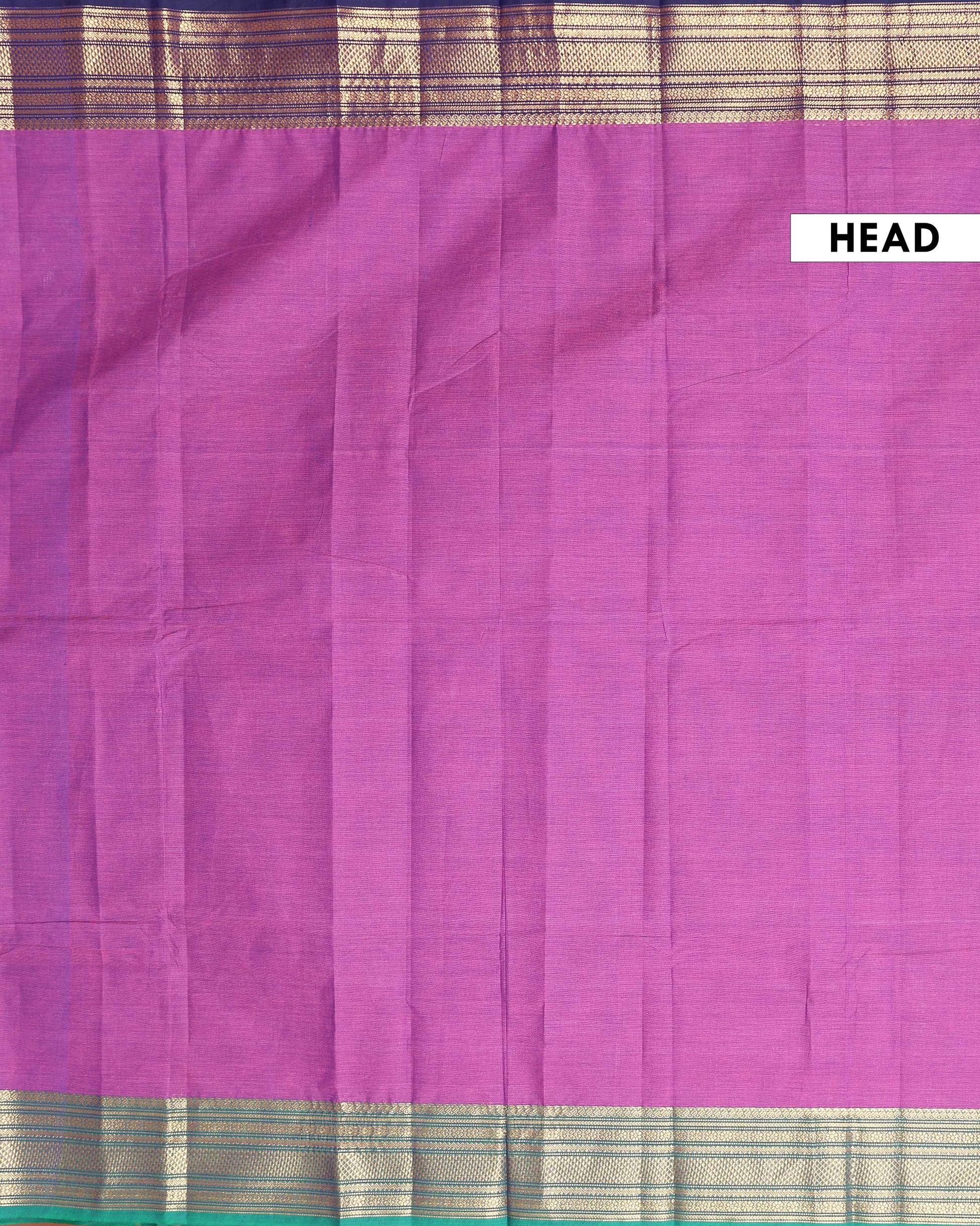 Traditional Kanchi Handloom Cotton Saree with Rich Zari Woven Border and Intricate Temple Design Patterns Without Blouse - Purple