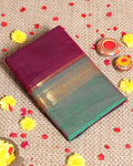 Traditional Kanchi Handwoven Cotton Saree with Traditional Zari Border and Intricate Temple Motifs - Purple