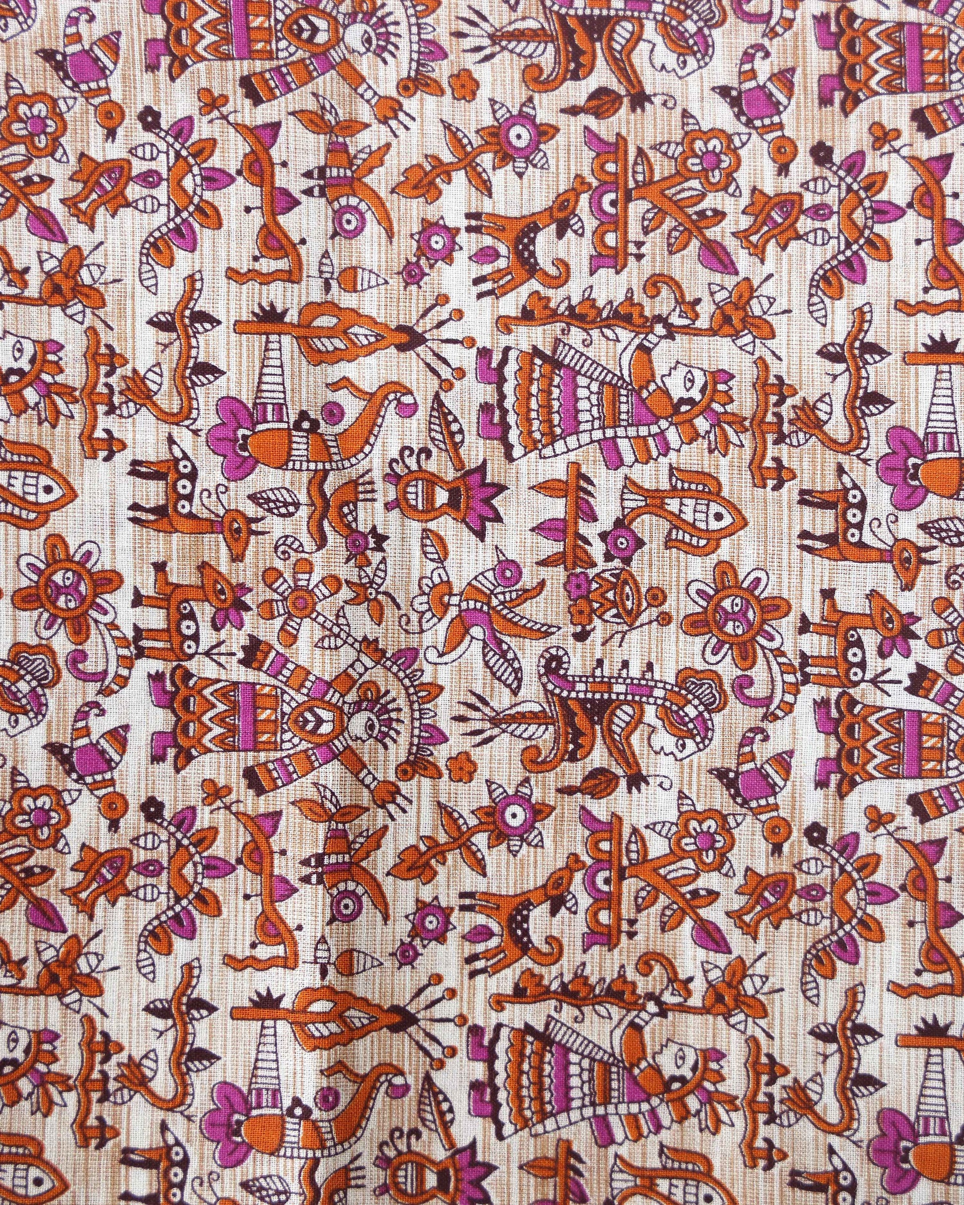 Traditional Khadi Cotton Saree with Contrast Printed Blouse and Tassel Accents - Peach