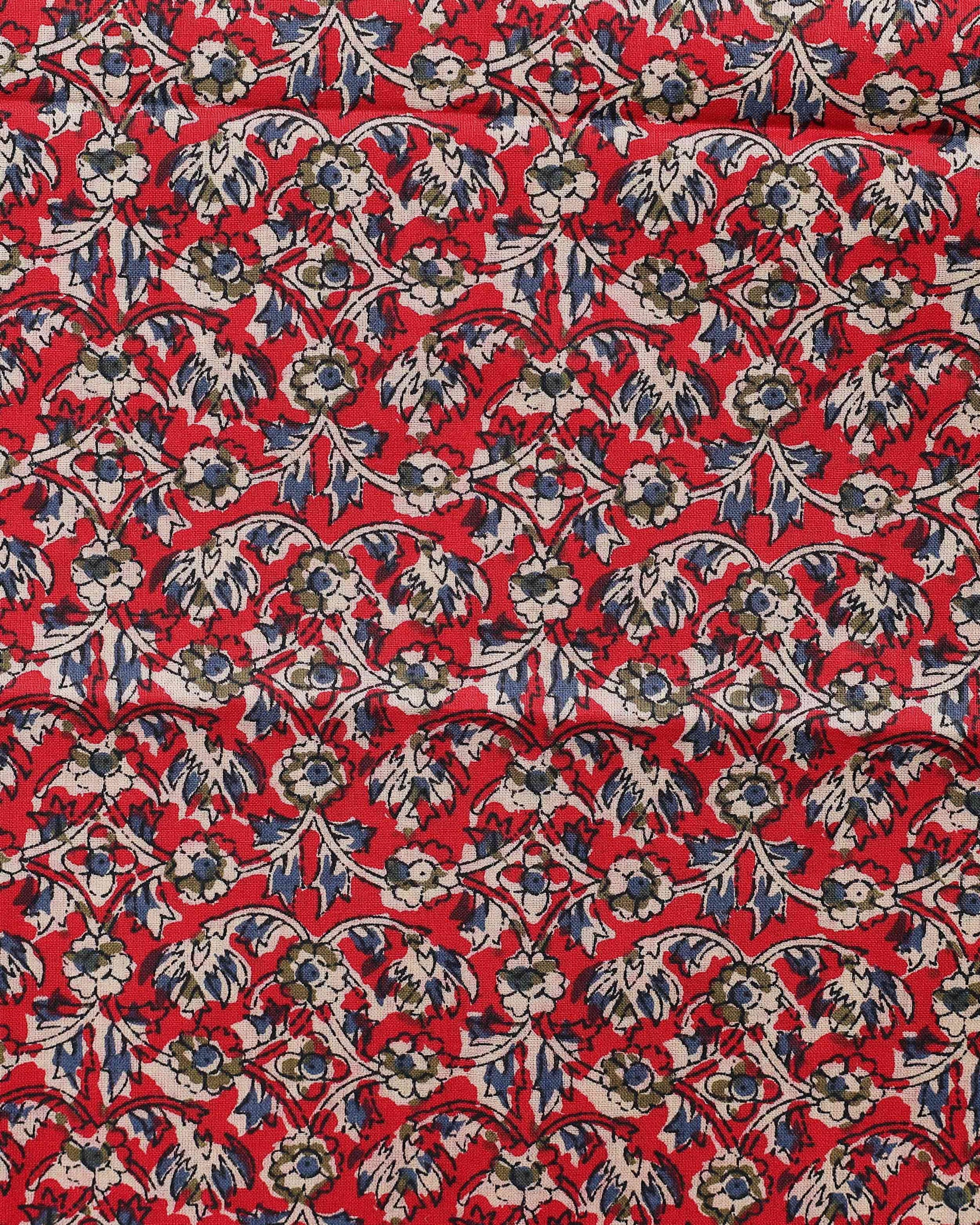 Traditional Khadi Cotton Saree with Contrast Printed Blouse and Tassel Accents -Red