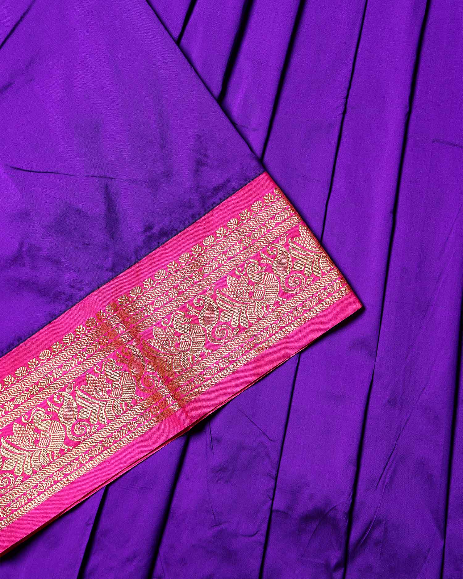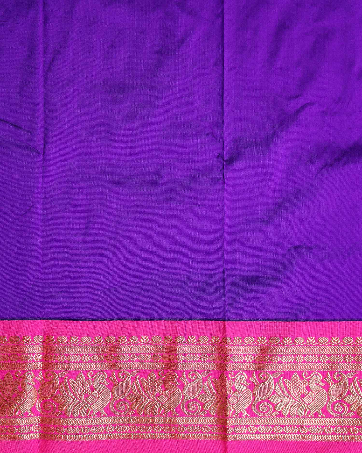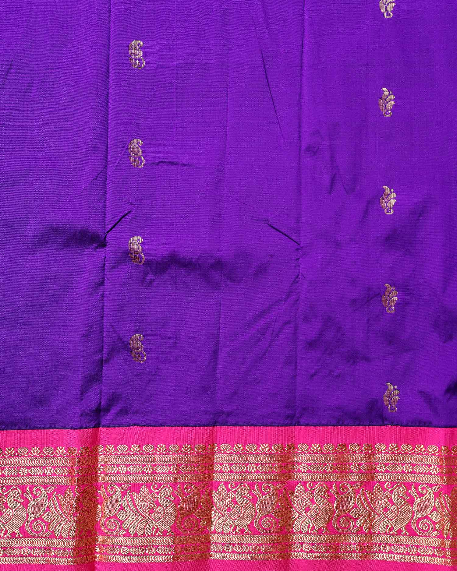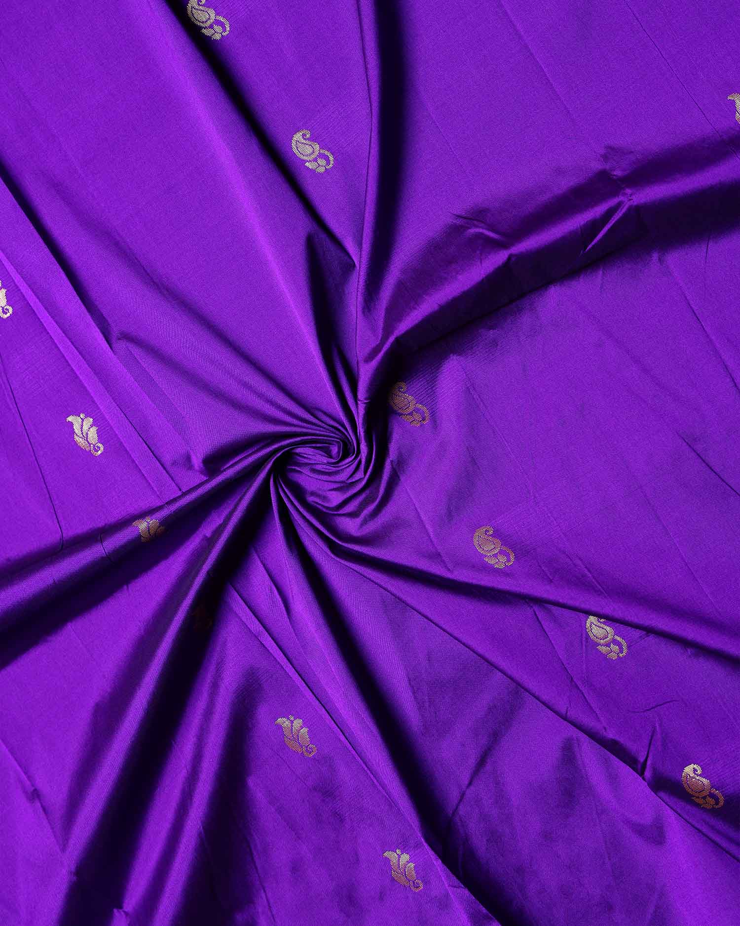 Traditional Kids Pattu Pavadai Material with Elegant Zari Buttas Contrast Temple Border - Violet