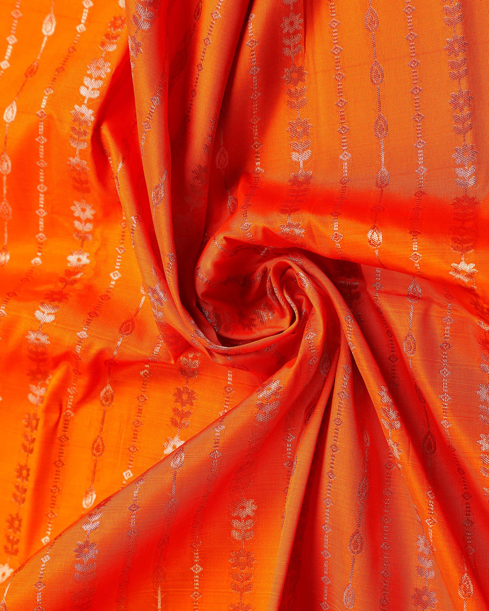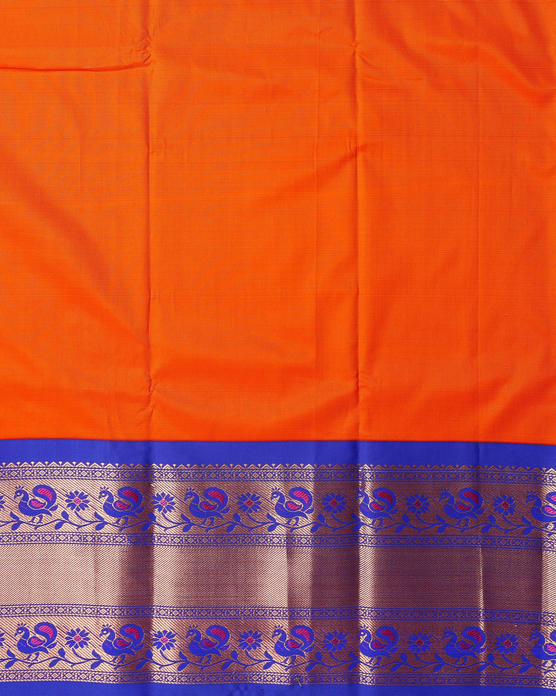 Traditional Weave Kids Pattu Pavadai Material with Peacock and Floral Zari Border - Orange