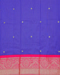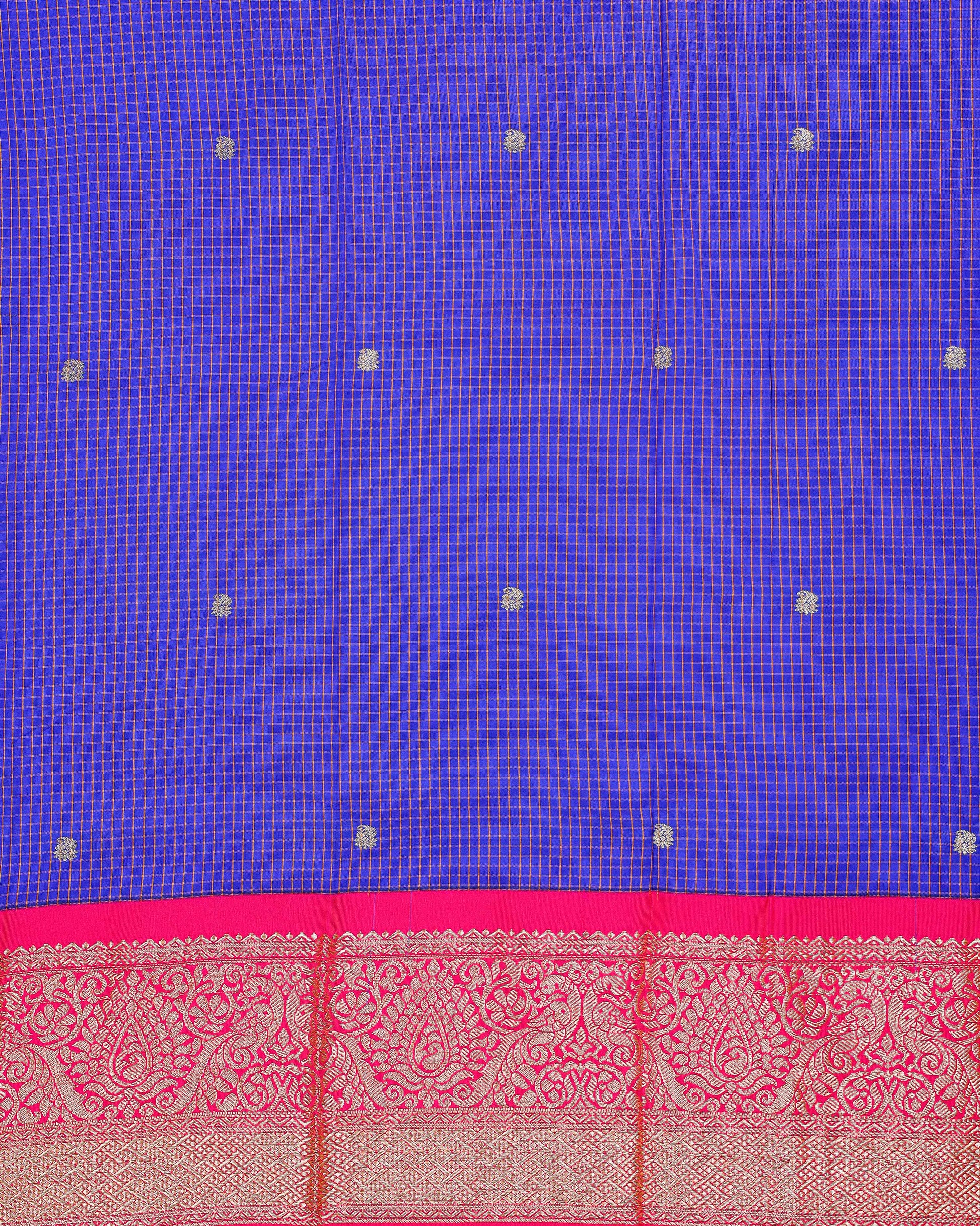 Traditional Pattu Pavadai Material with Zari Border and Checks Pattern - Blue