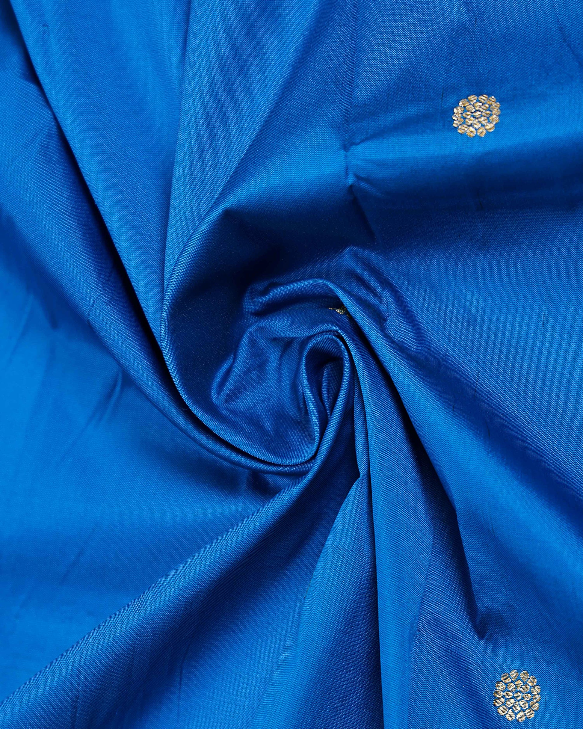 Traditional Kids Pattu Pavadai Material with Zari Border and Butta Motifs - Blue