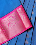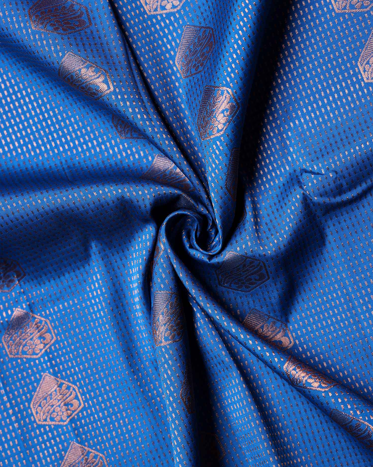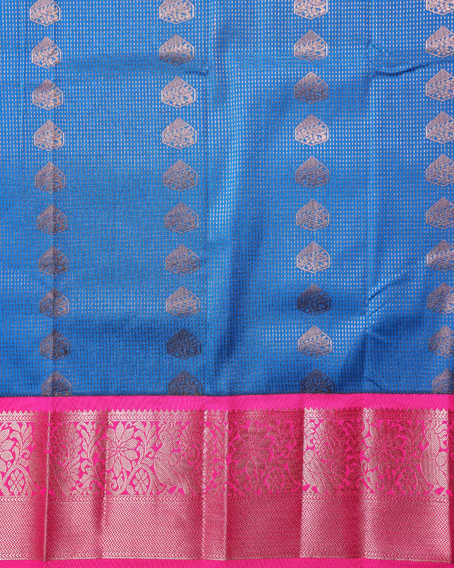 Traditional Kids Pattu Pavadai Material with Zari Butta Design and Jacquard Border - Blue