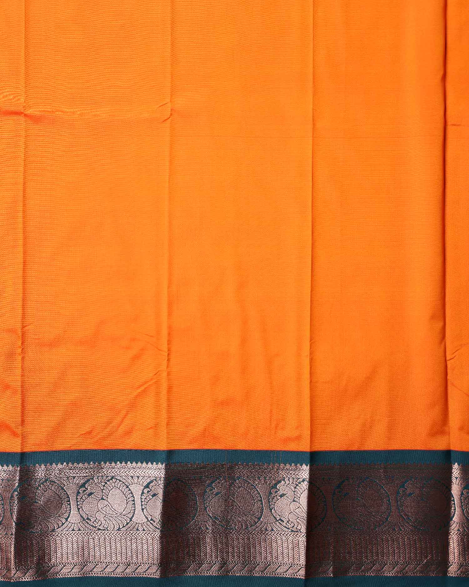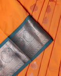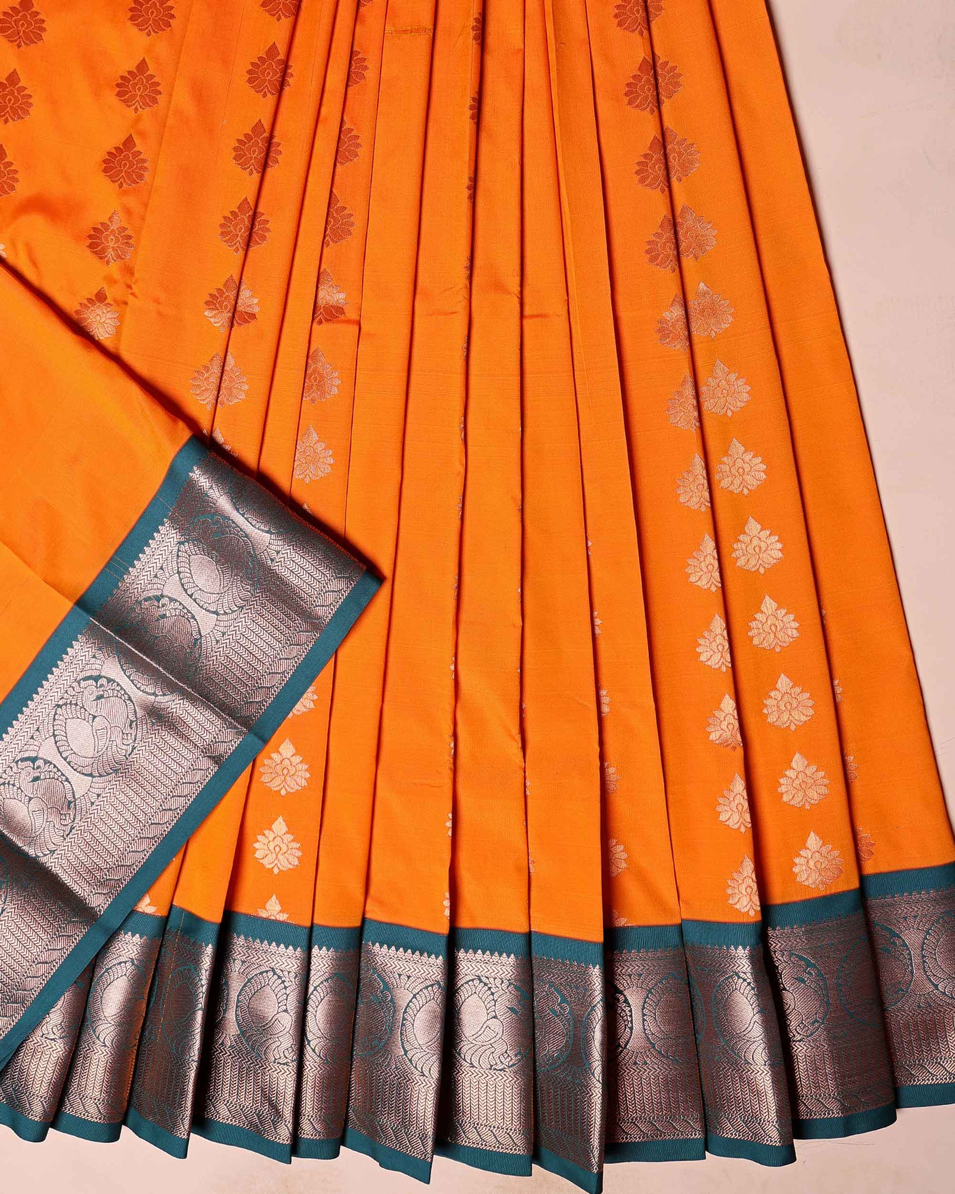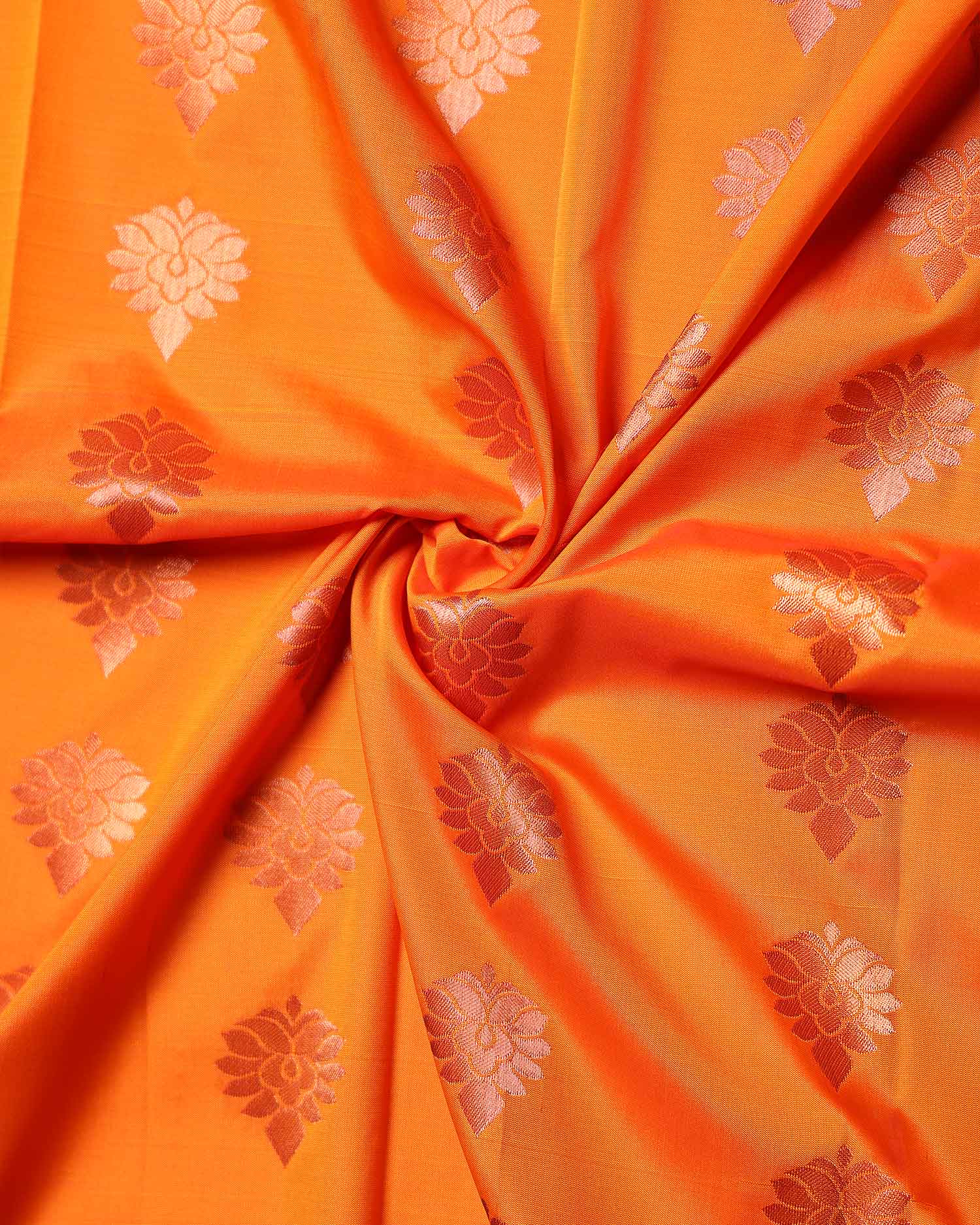 Traditional Kids Pattu Pavadai Material with Zari Floral Buttas and Rich Contrast Jacquard Border - Yellow