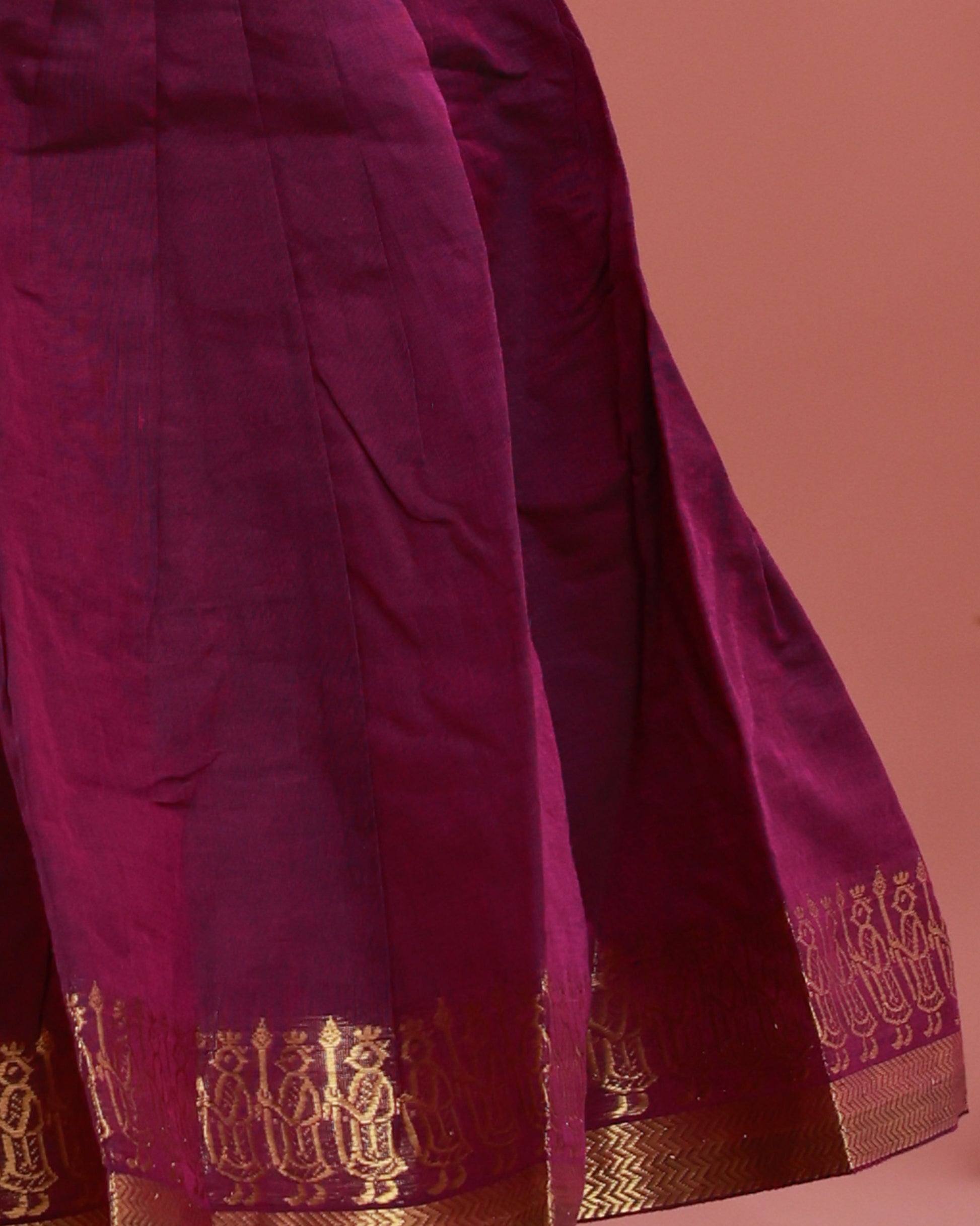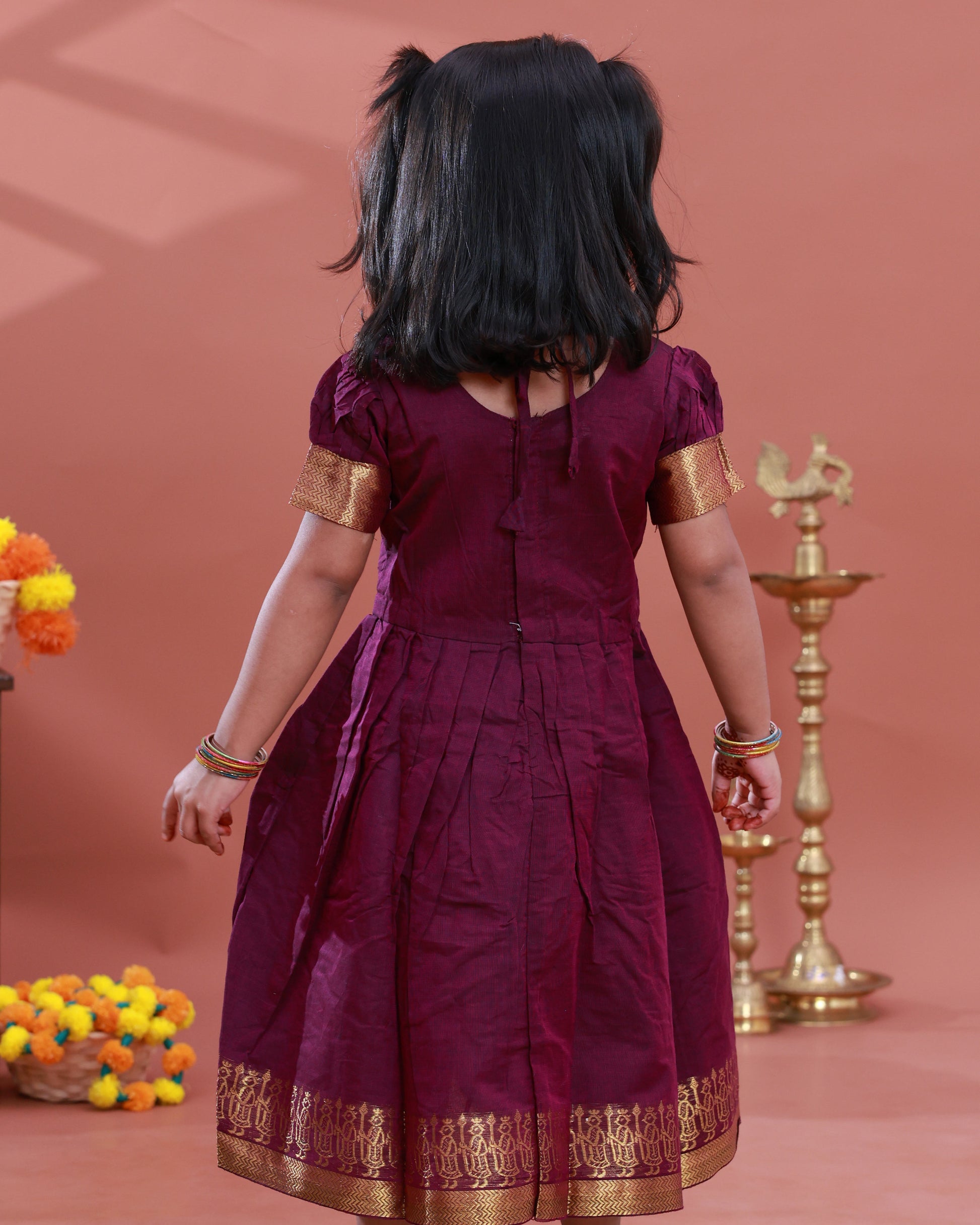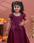 Kids Pattu Pavadai Readymade Traditional Ethnic Gown with Zari Border & Puff Sleeves - Purple