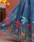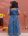 Traditional Kids Readymade Pattu Pavadai with Embroidered & Floral Motifs - Blue