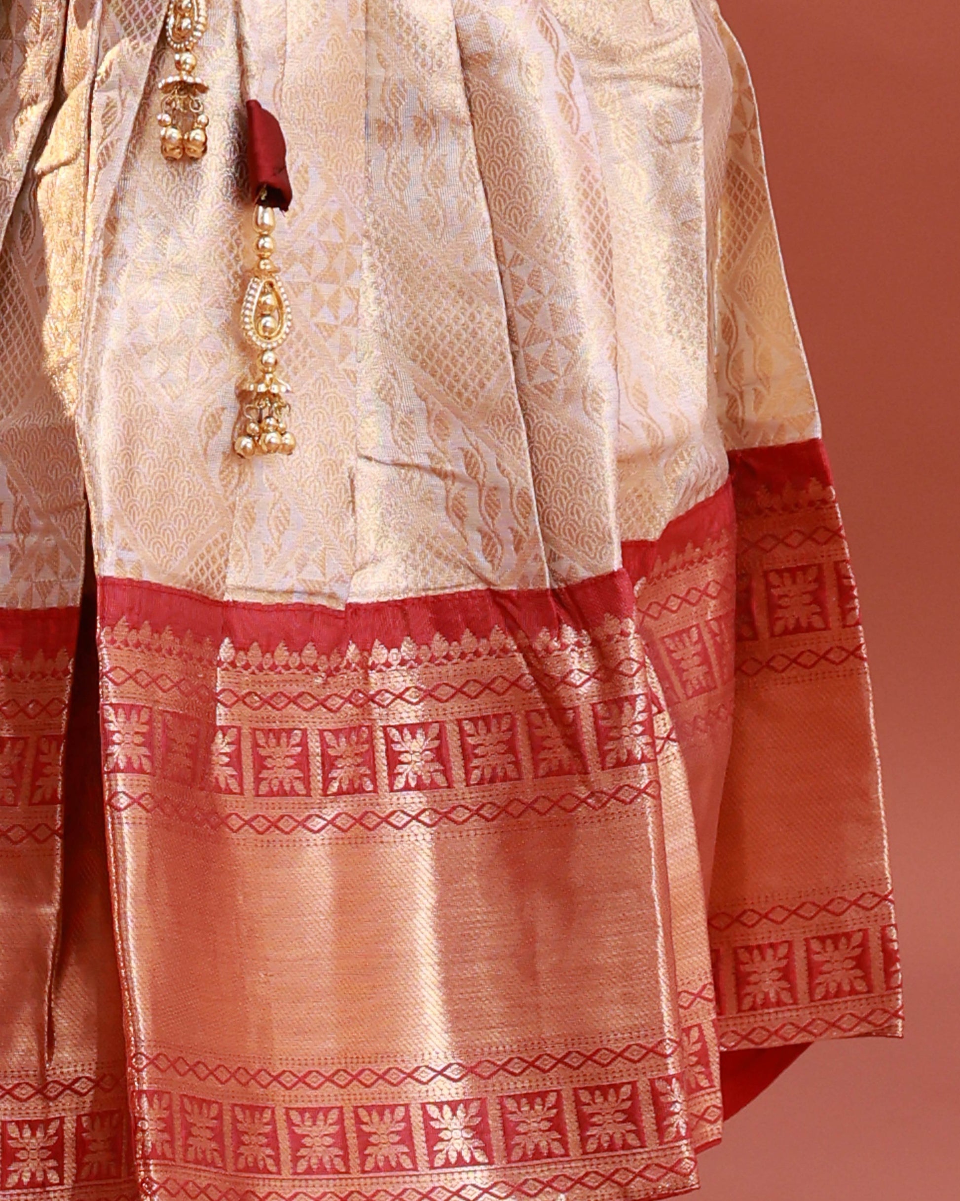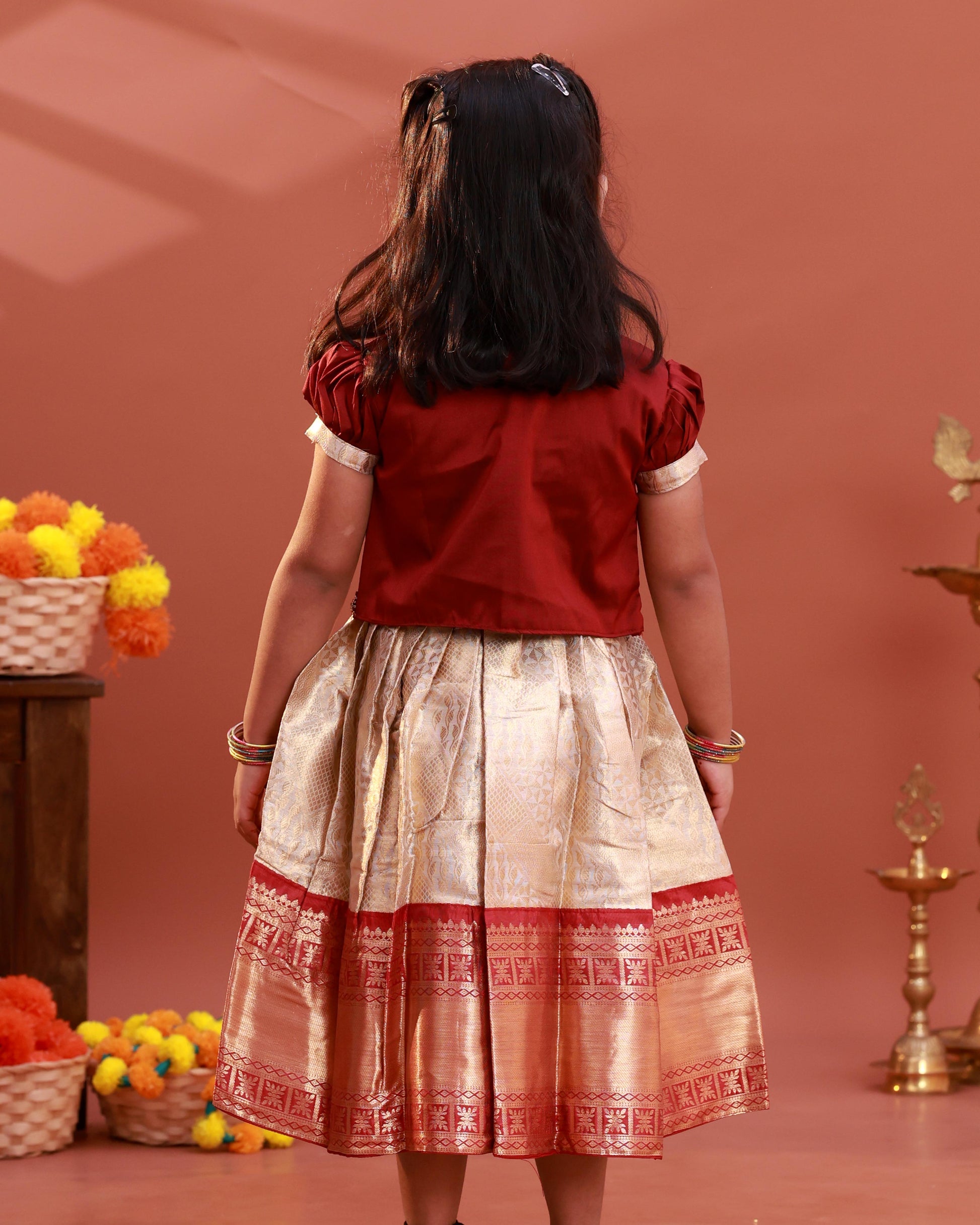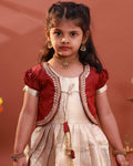 Traditional Kids Readymade Pattu Pavadai with Embellished Jacket - Maroon