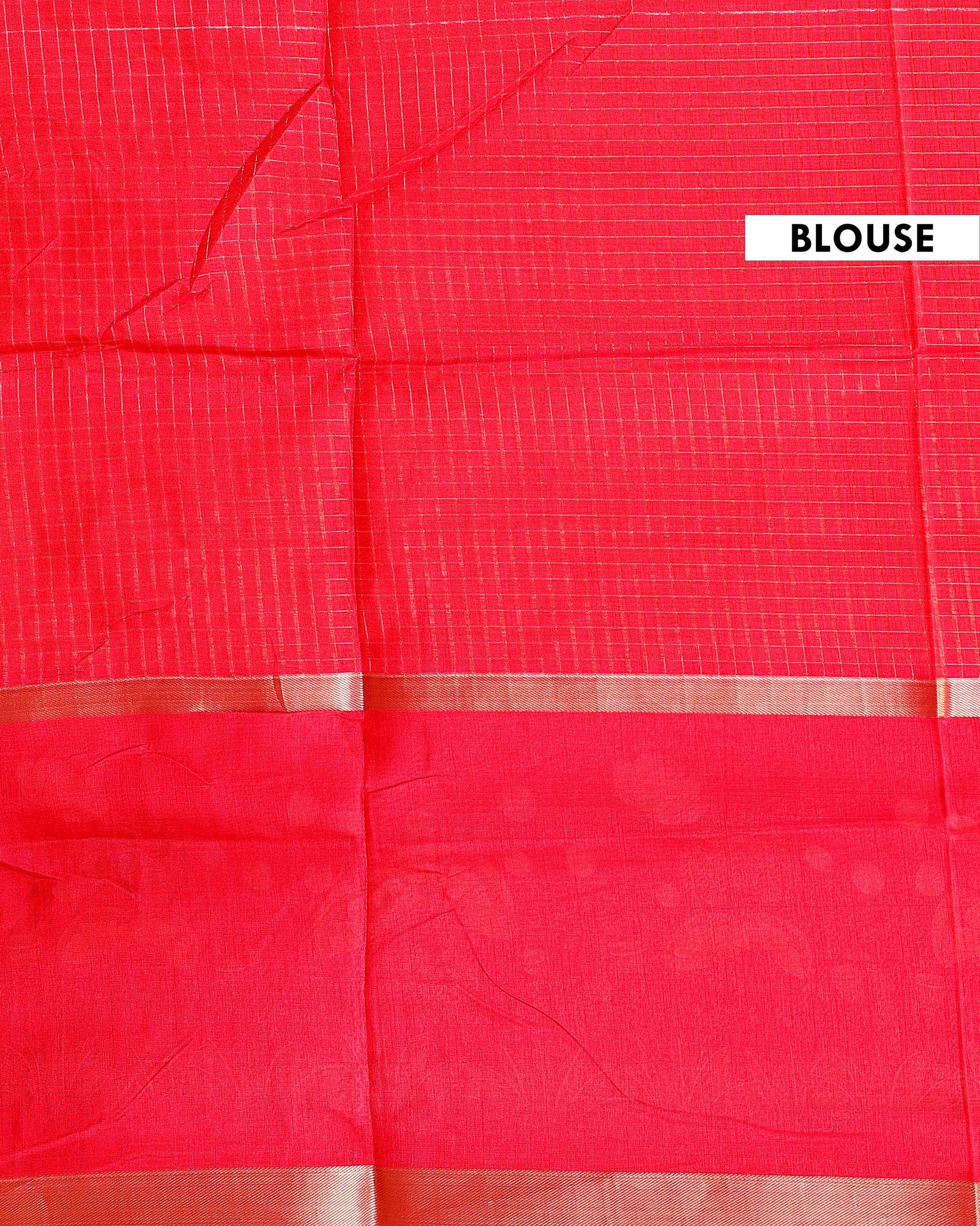 - Elegance of this handloom Kota cotton saree, featuring a classic checkered weave and a striking red border with traditional motifs