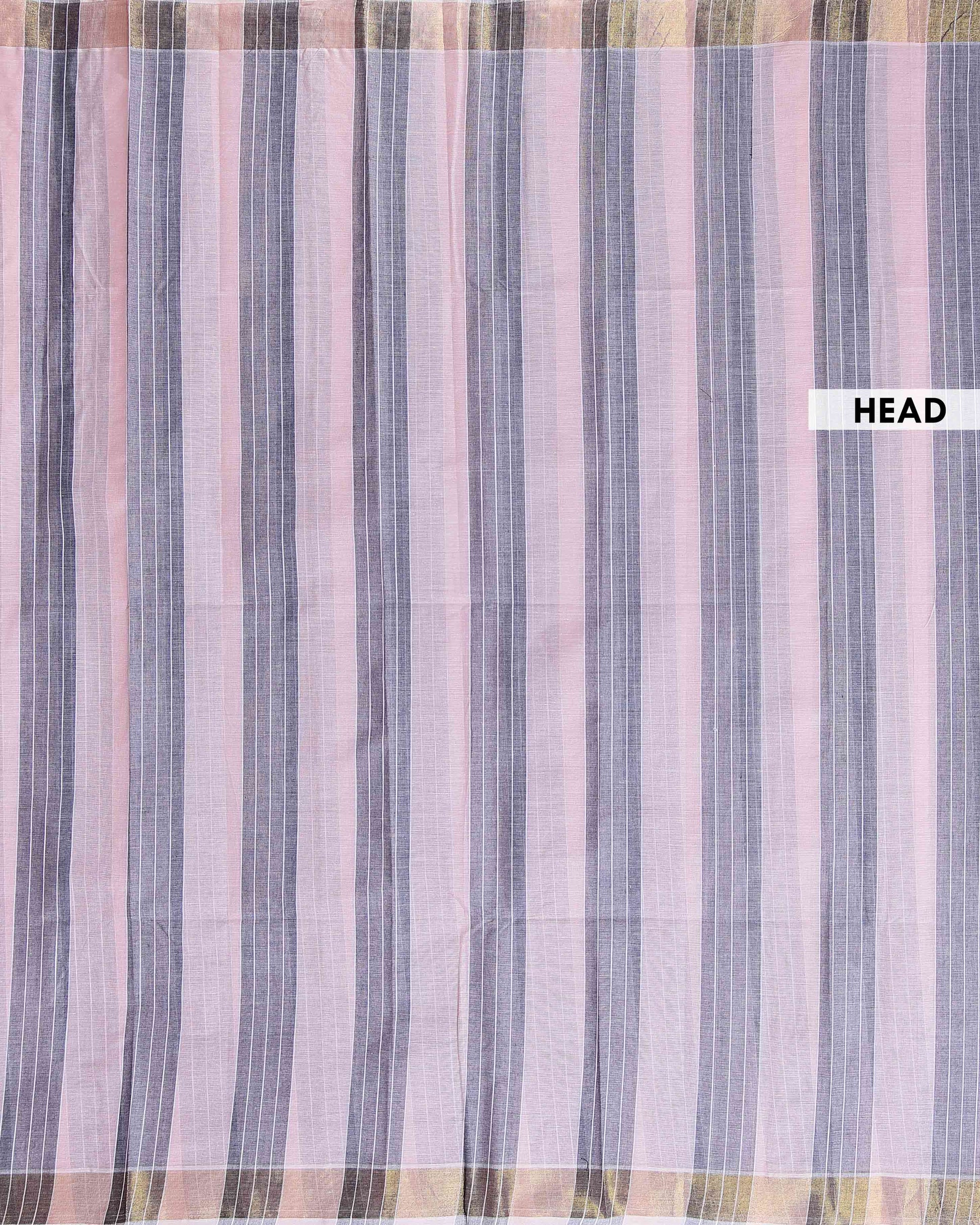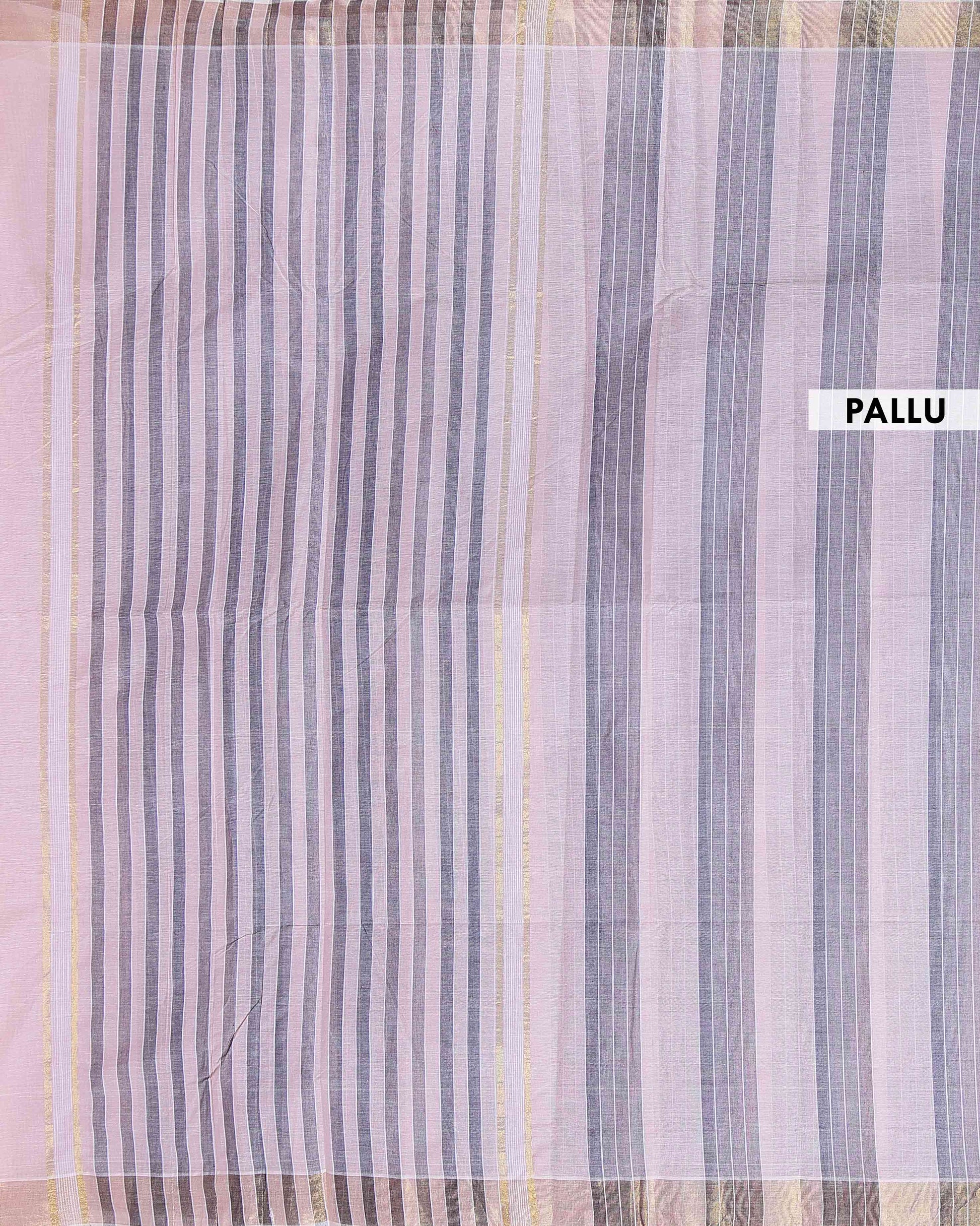 Traditional Kovai Cotton Saree with Striped Body and Woven Border - Light Pink