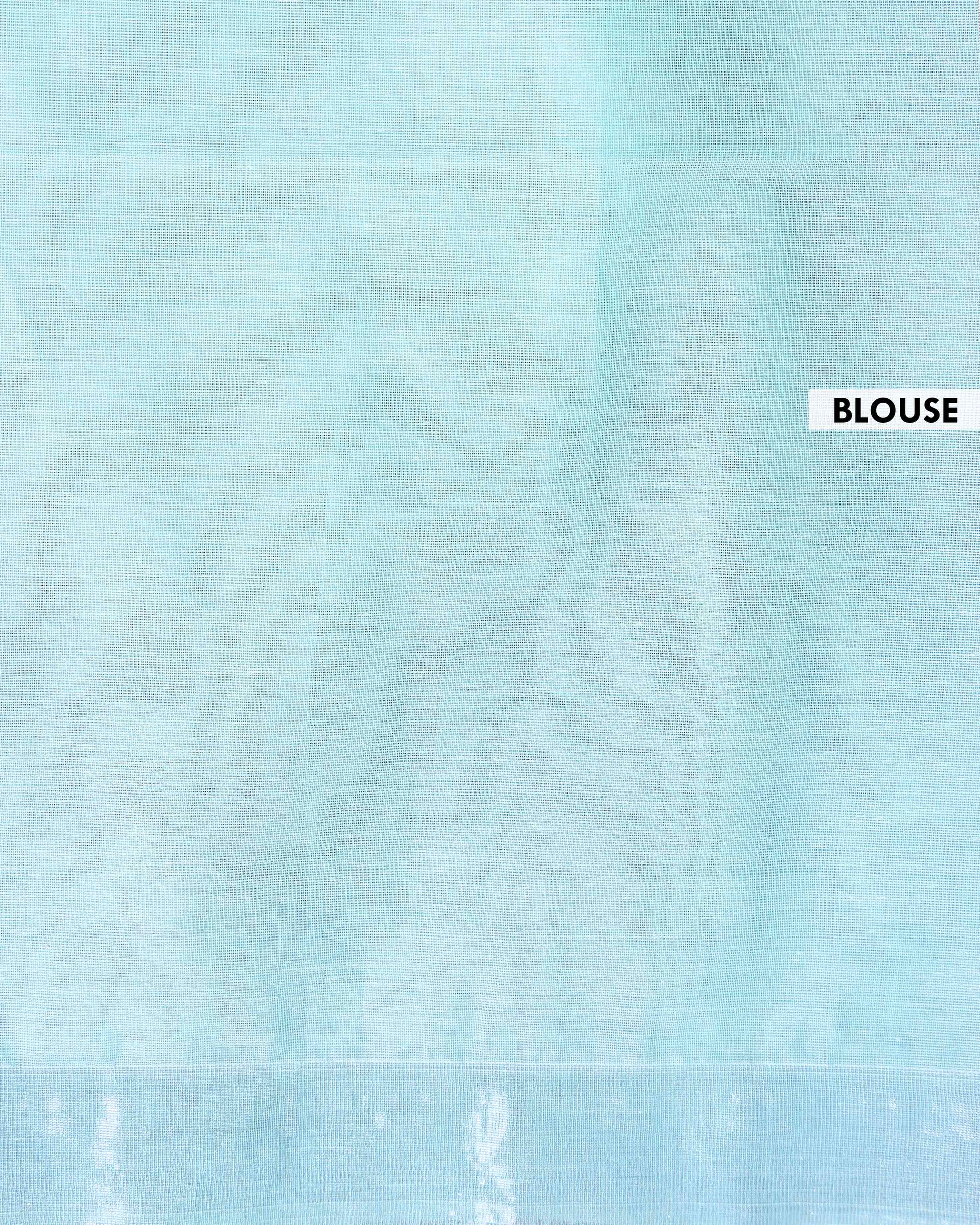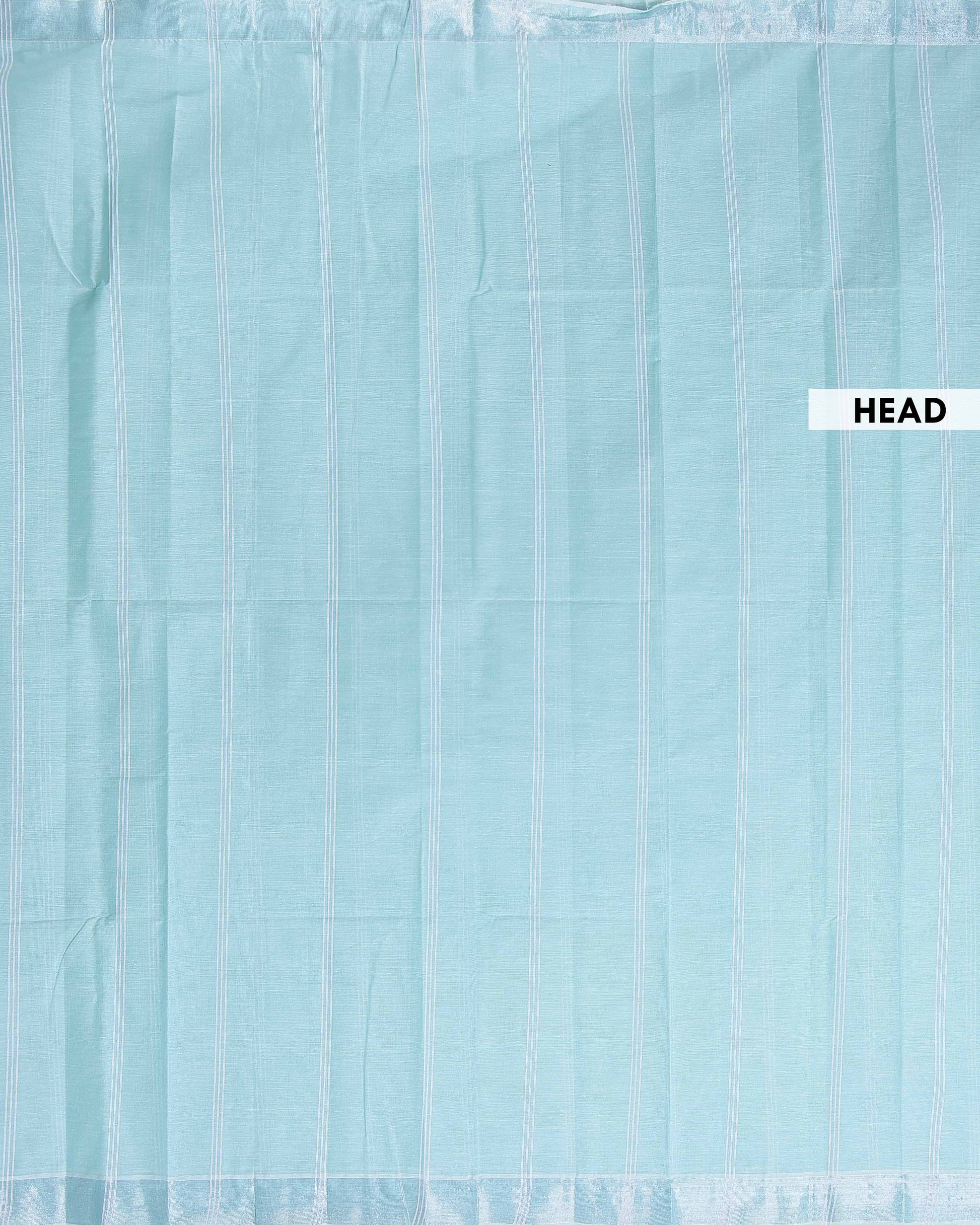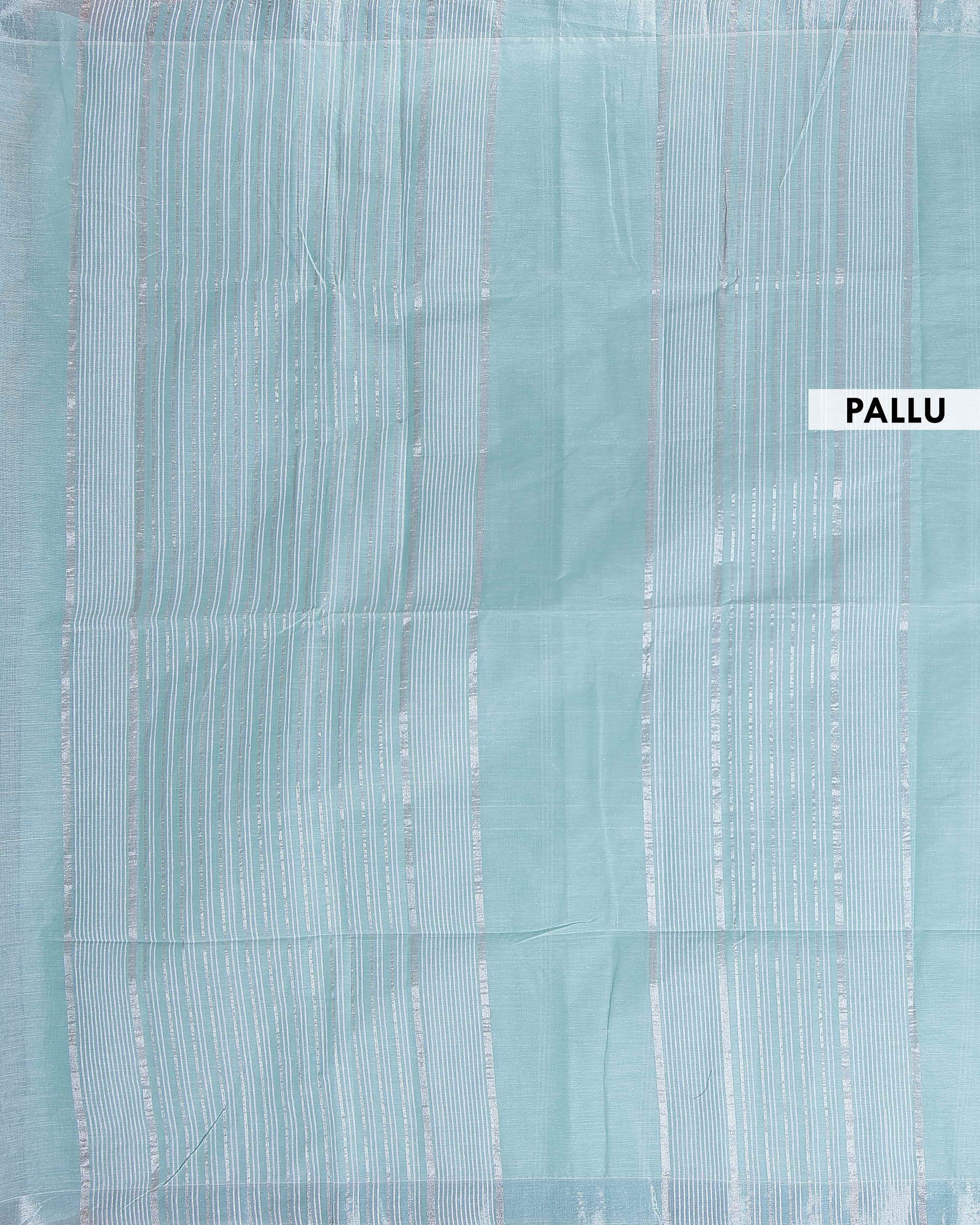 Traditional Kovai Cotton Saree with Subtle Woven Stripes - Sky Blue