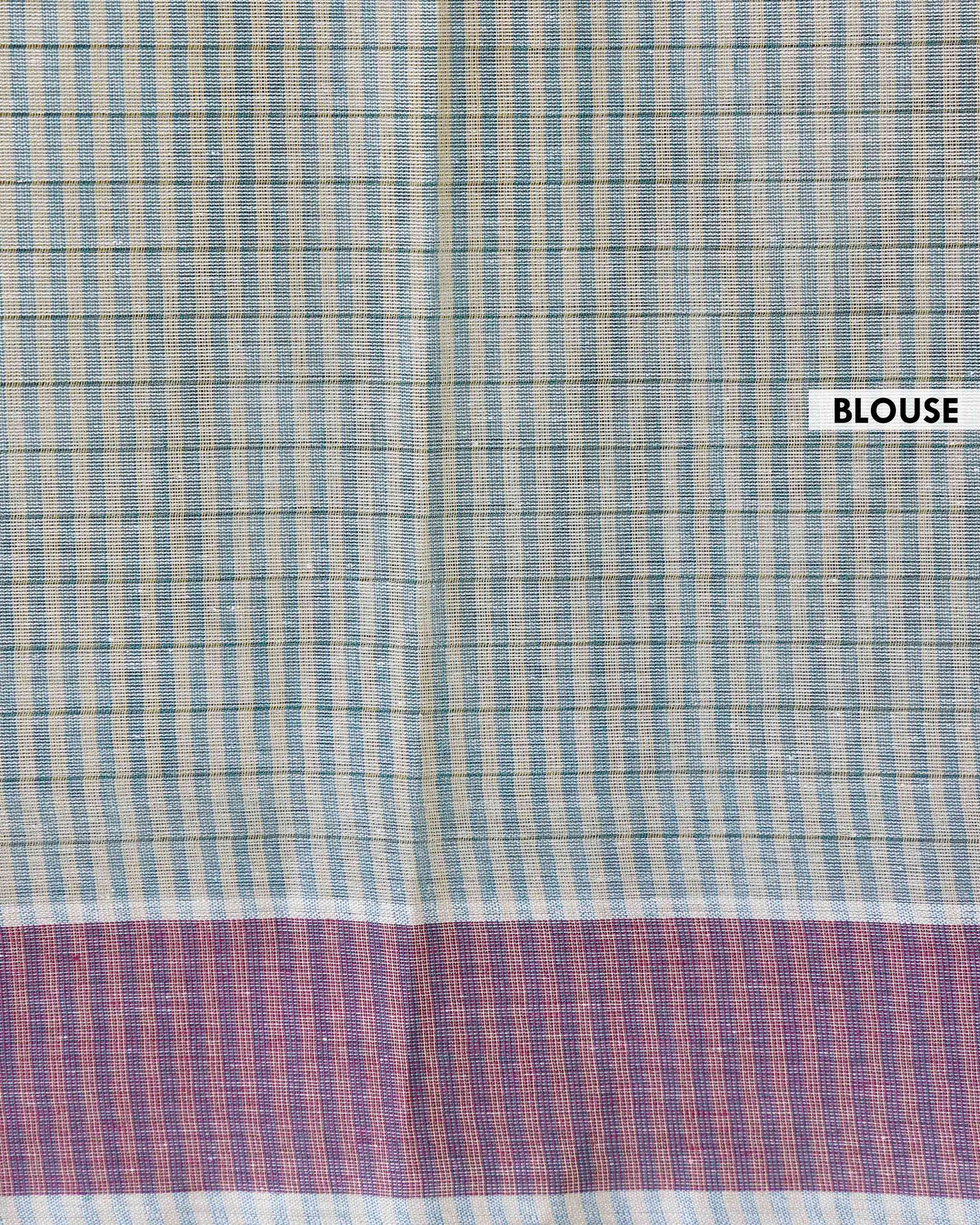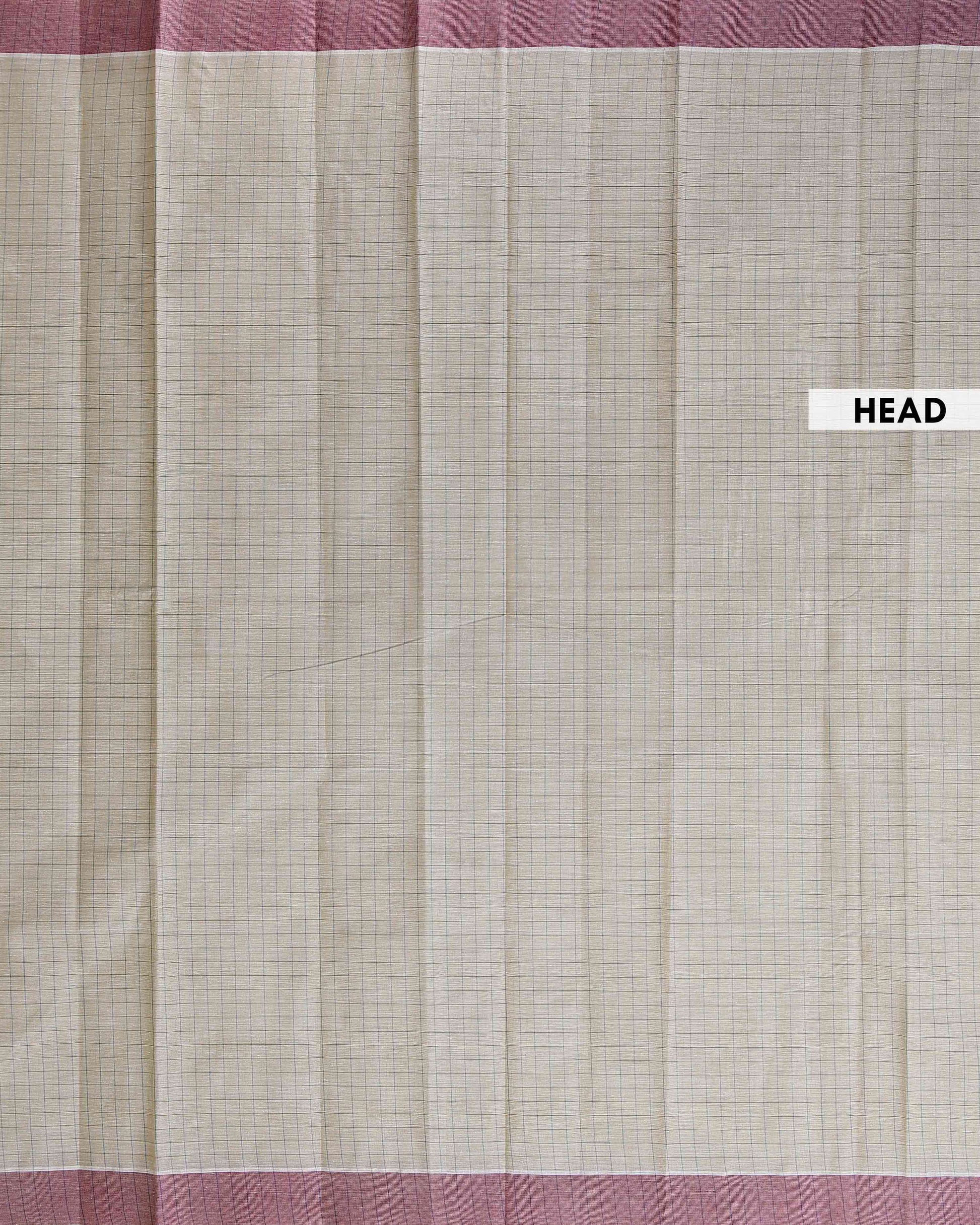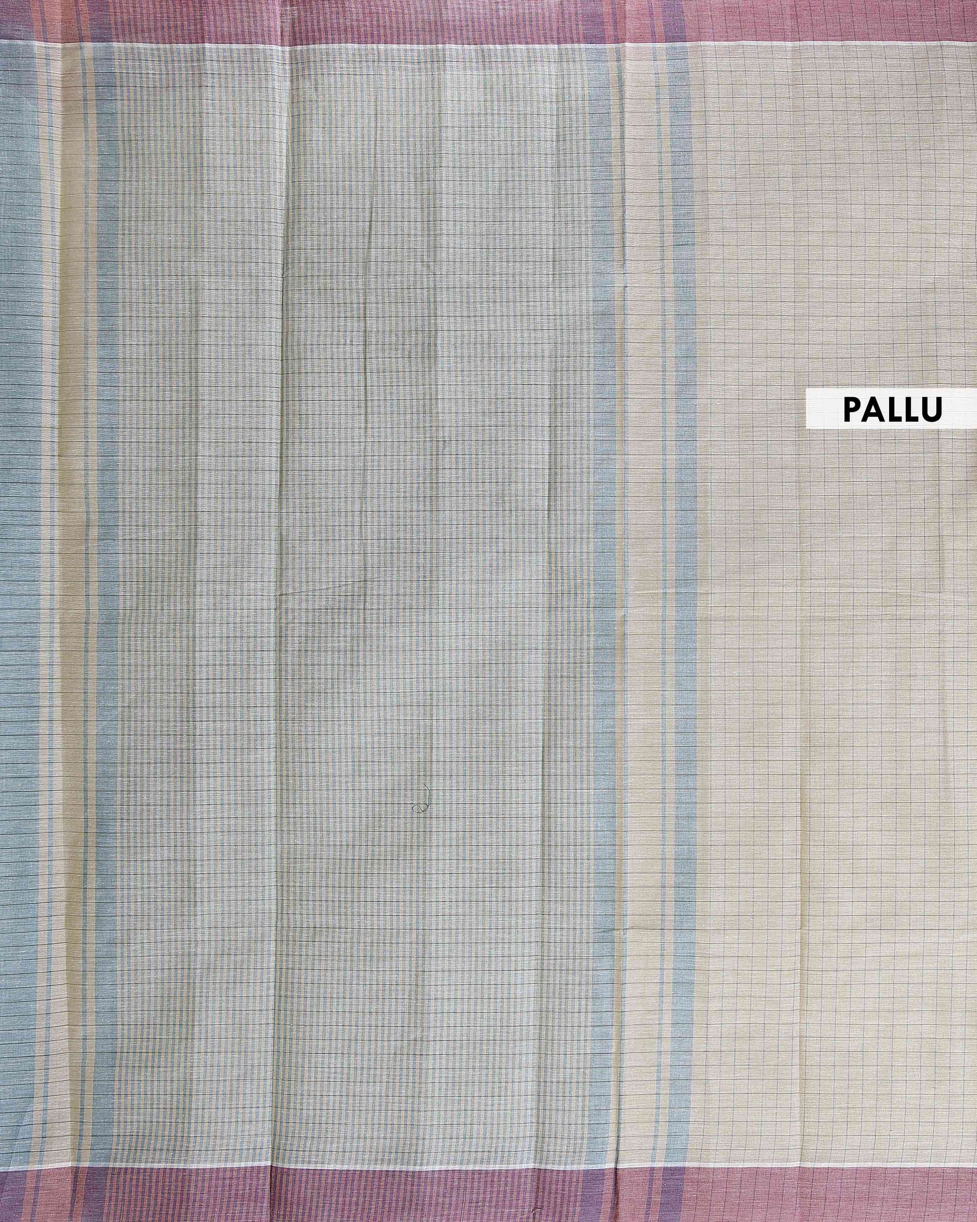 - Elevate your style with this elegant Kovai cotton saree a subtle checked pattern on an Green base and a classic maroon border