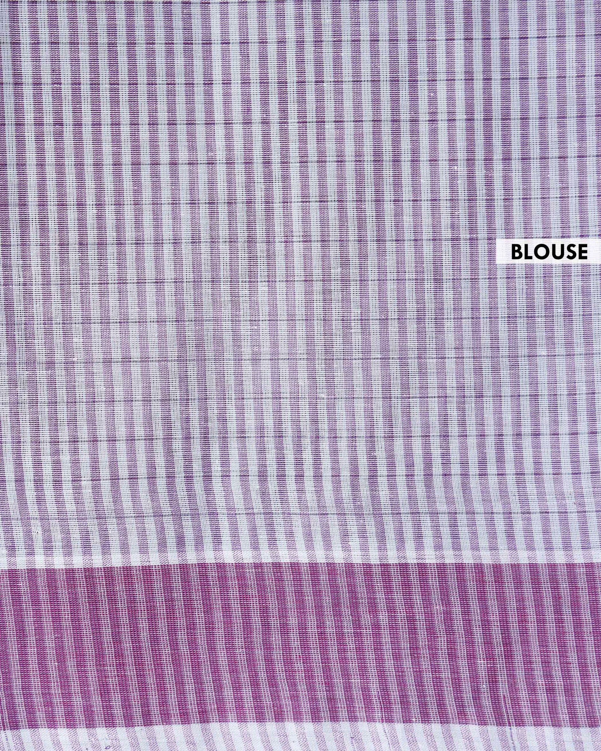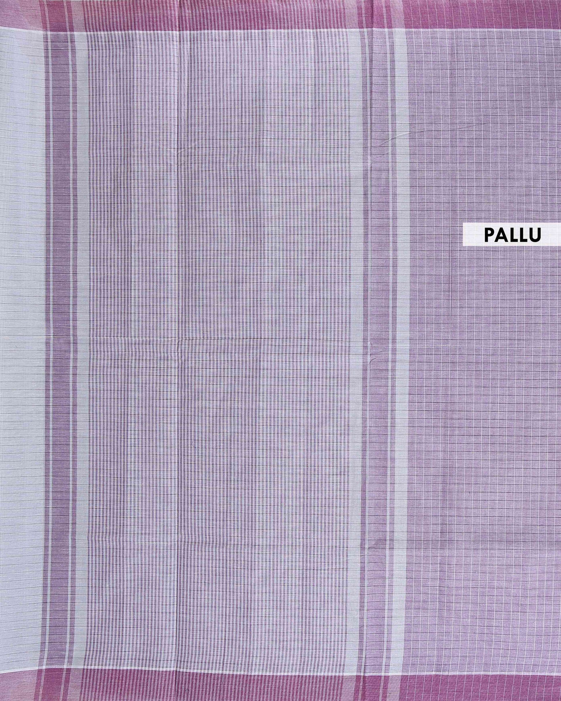Traditional Kovai Cotton Saree with Woven Checked Pattern and Contrast Border - Purple