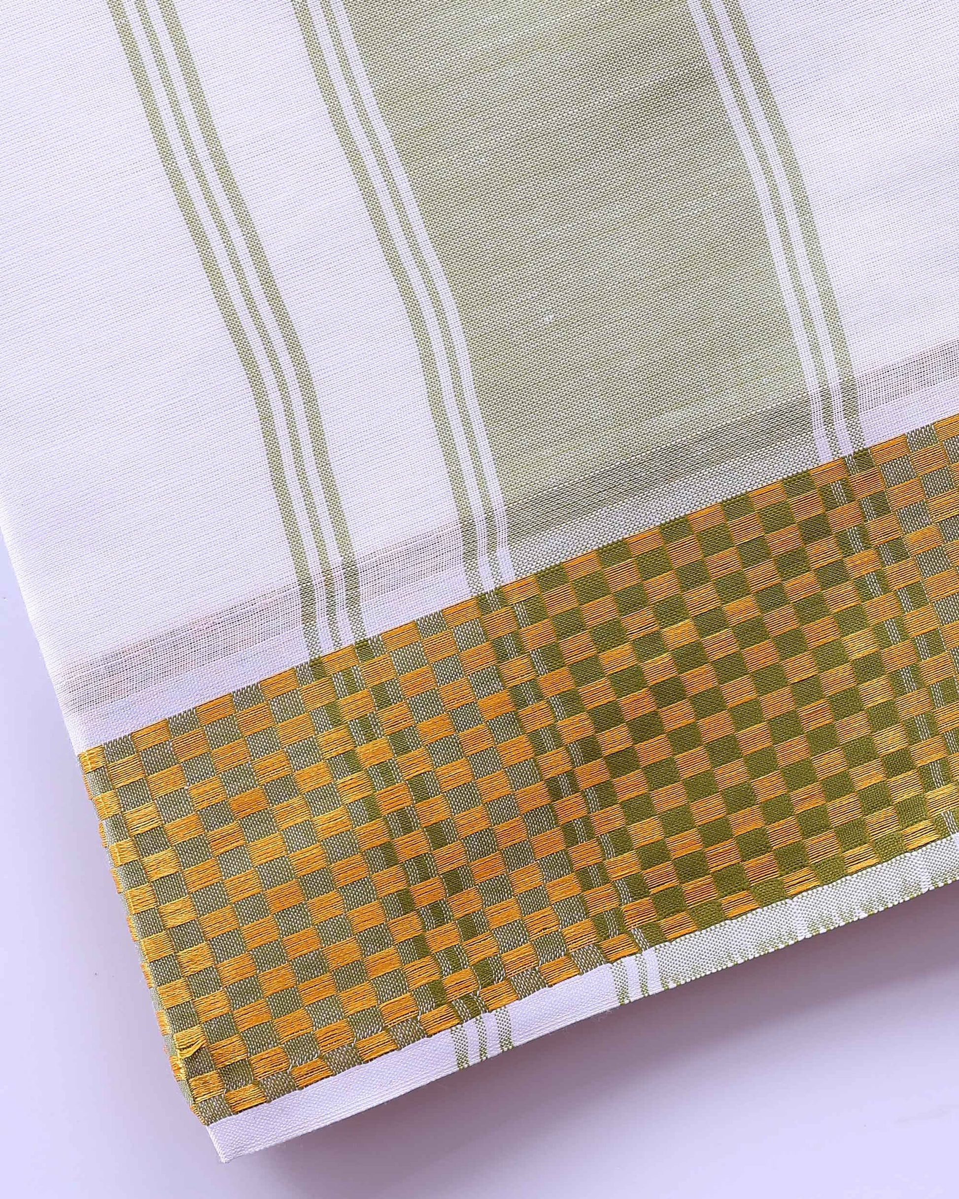 Traditional Men’s Handloom Cotton Dhoti 9*5 Meter with Elegant Green Border - White