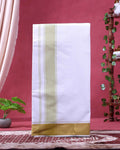 - This premium handloom dhoti features an exquisite gold jari border, perfect for traditional ceremonies, formal occasions, and a refined, cultural look. .