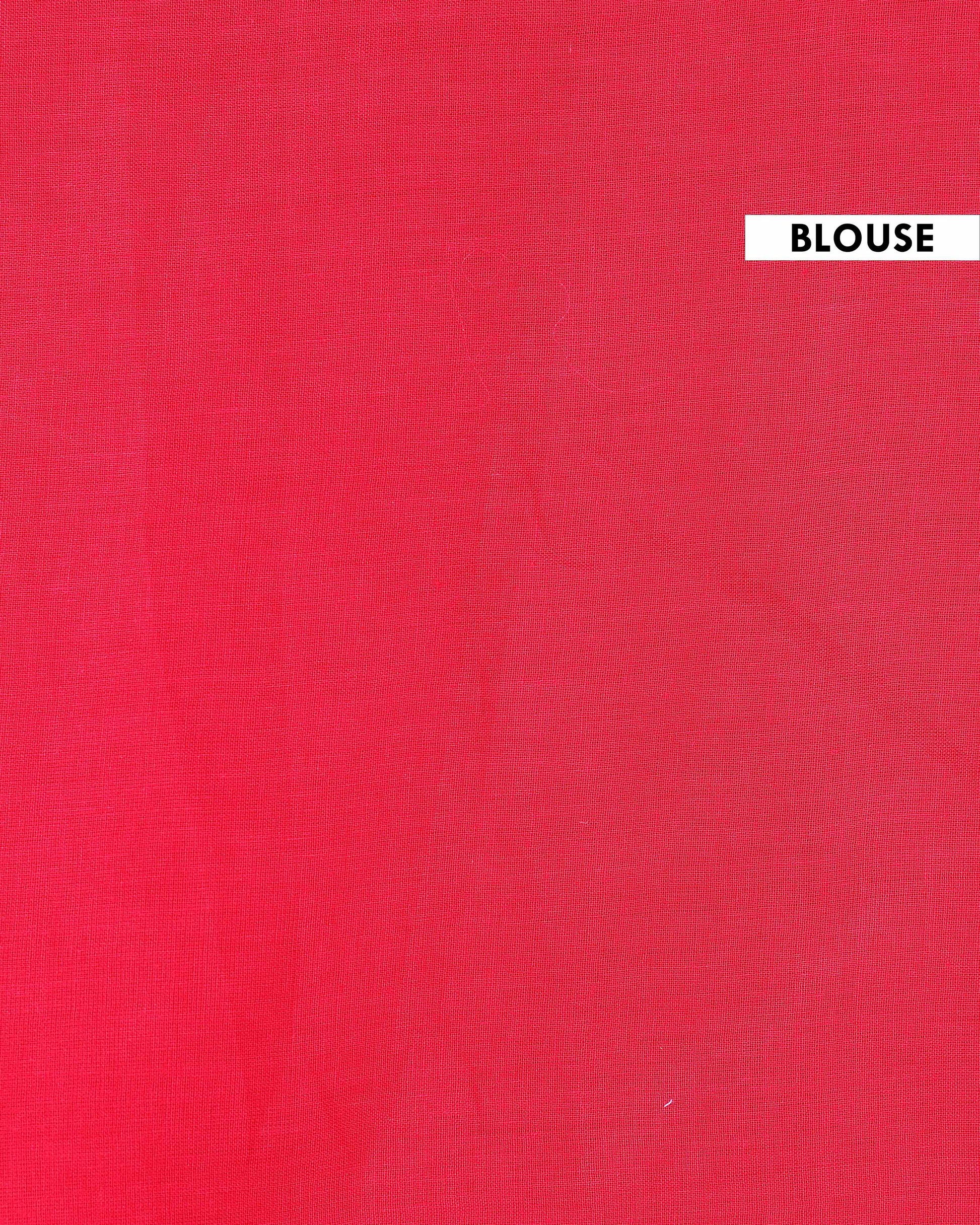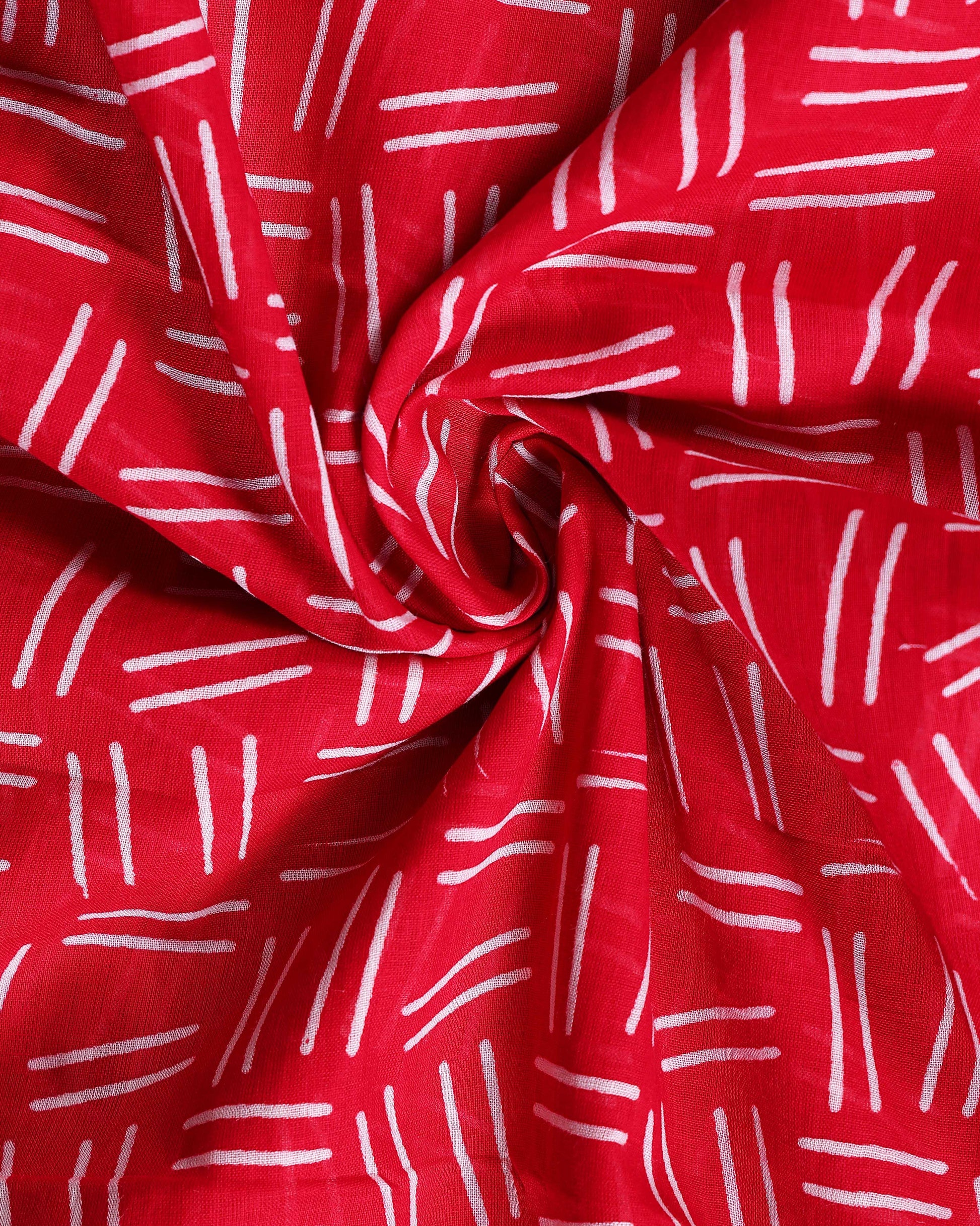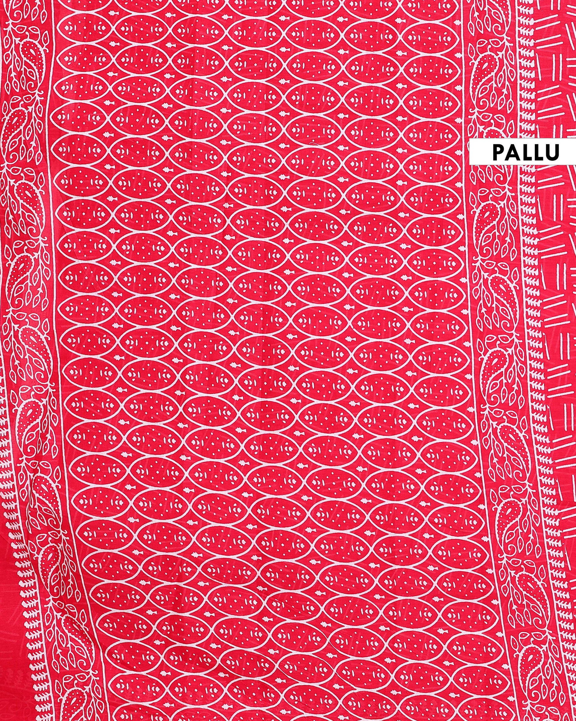 Traditional Mul Mul Semi Cotton Saree with Hand Block Printed Motifs and Paisley Border - Red