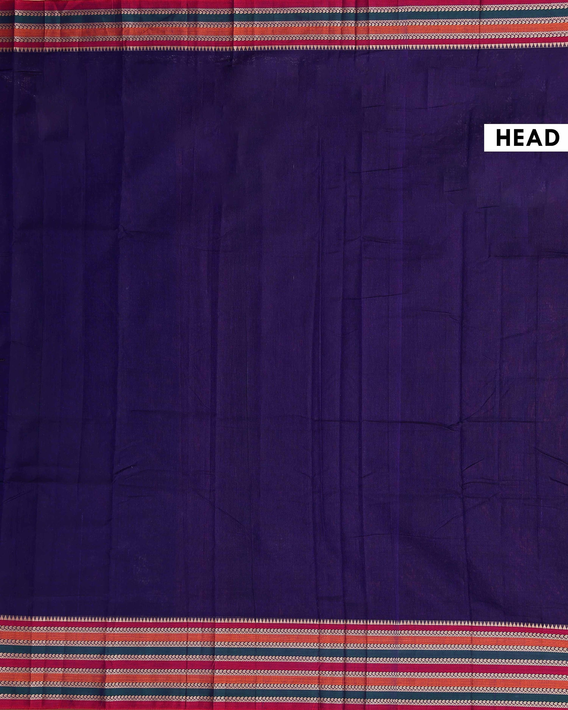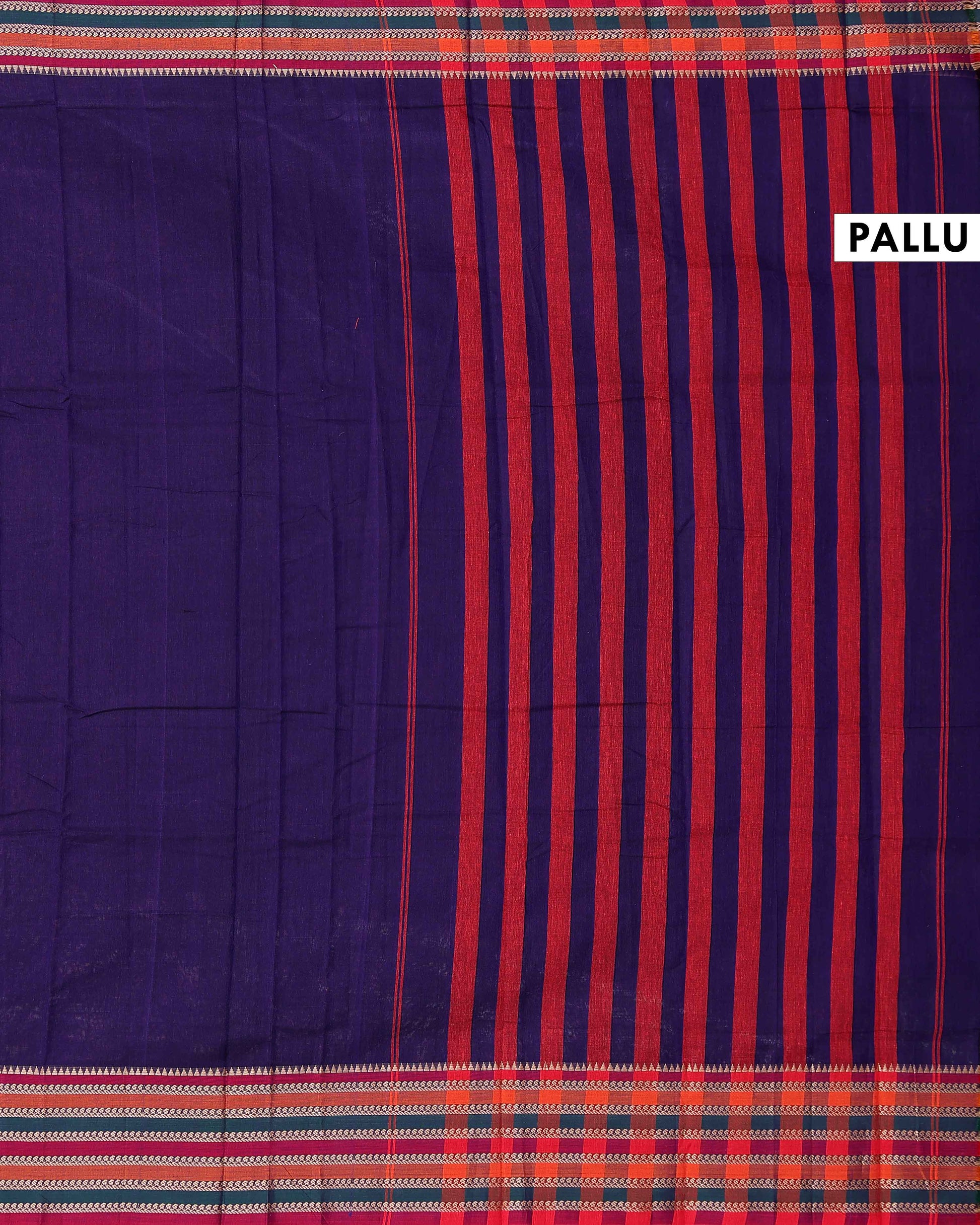 - This elegant Purple Narayanpet cotton saree a plain body and a striking contrast striped pallu