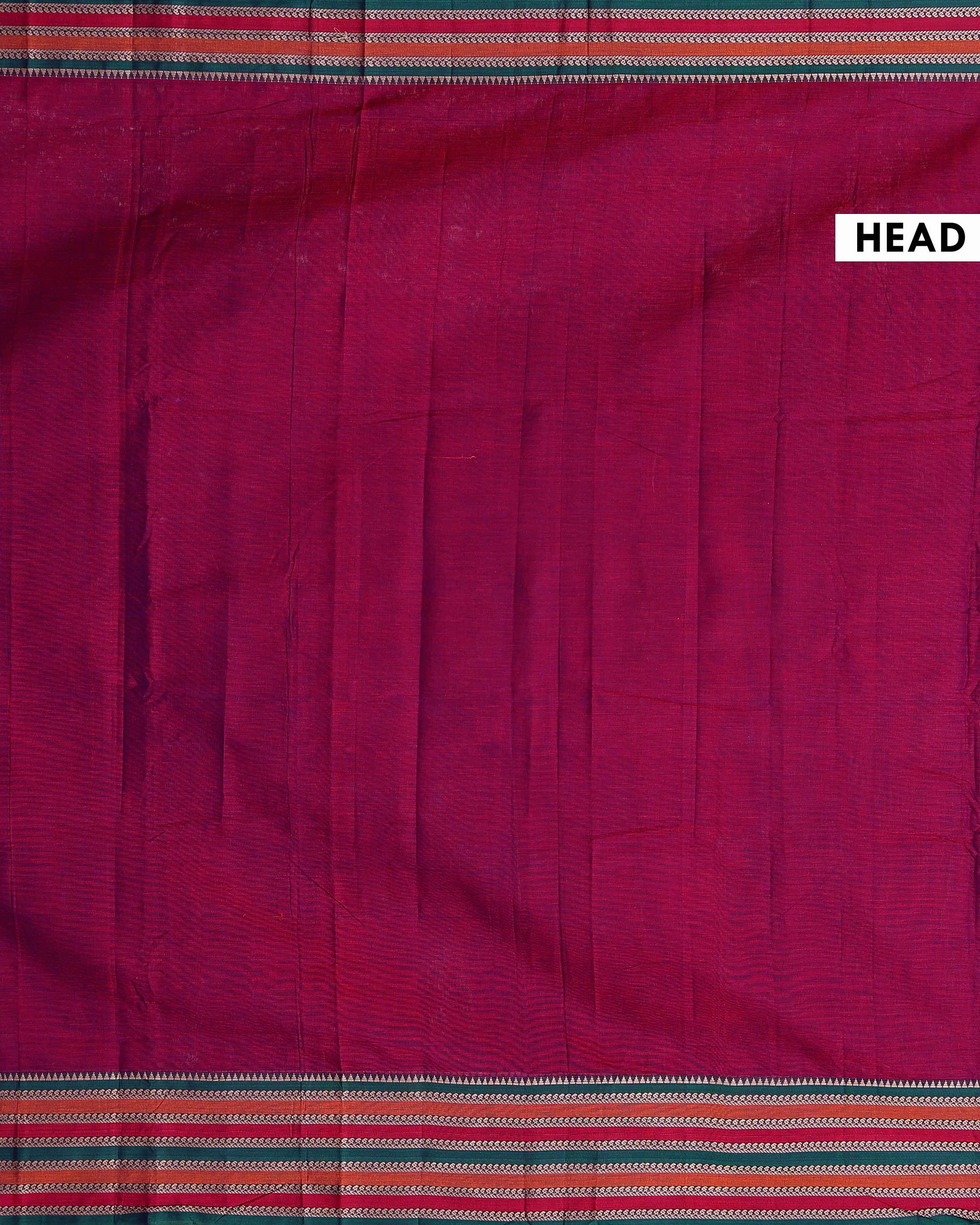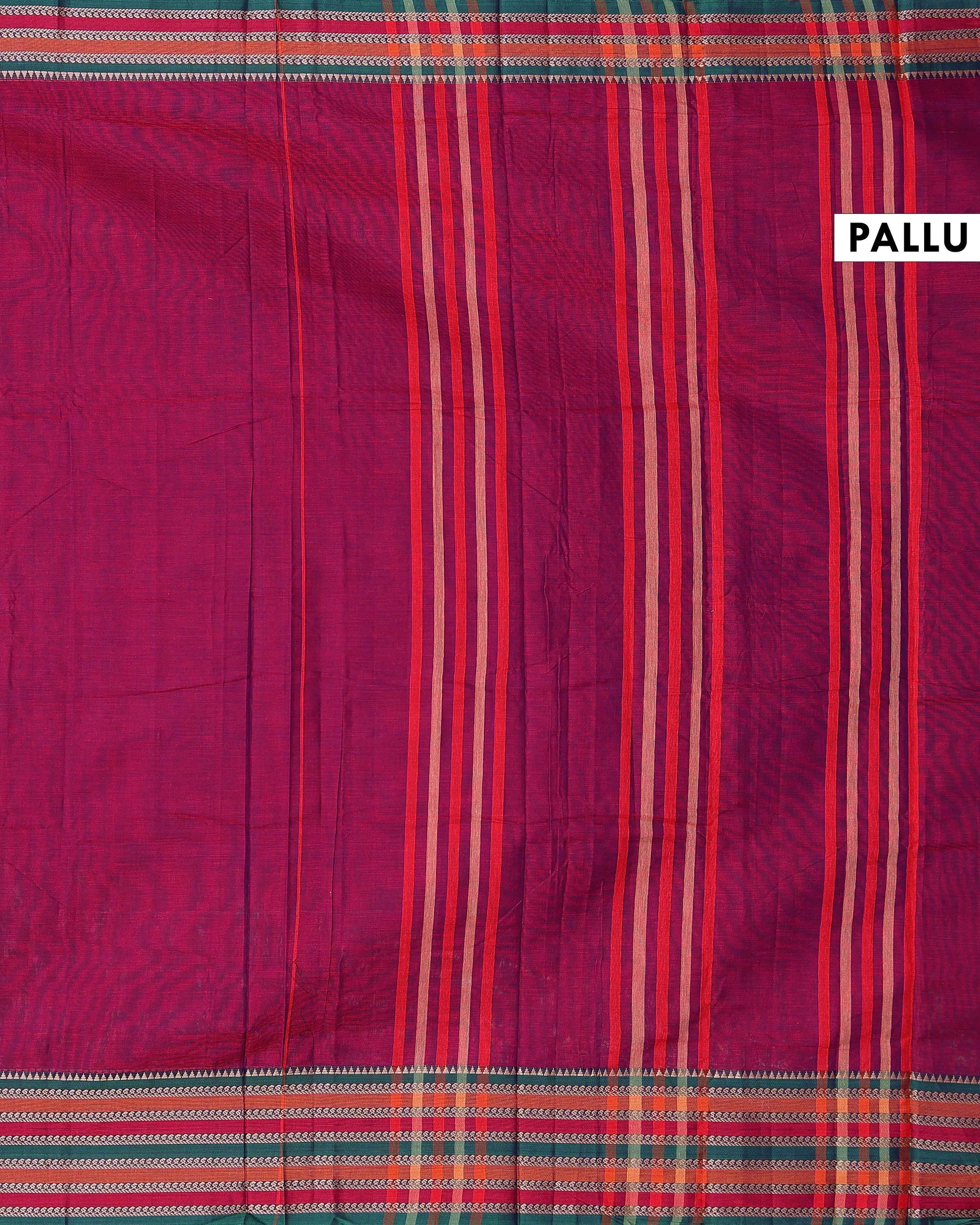 Traditional Narayanpet Cotton Saree Classic Temple Border and Striped Pallu - Purple