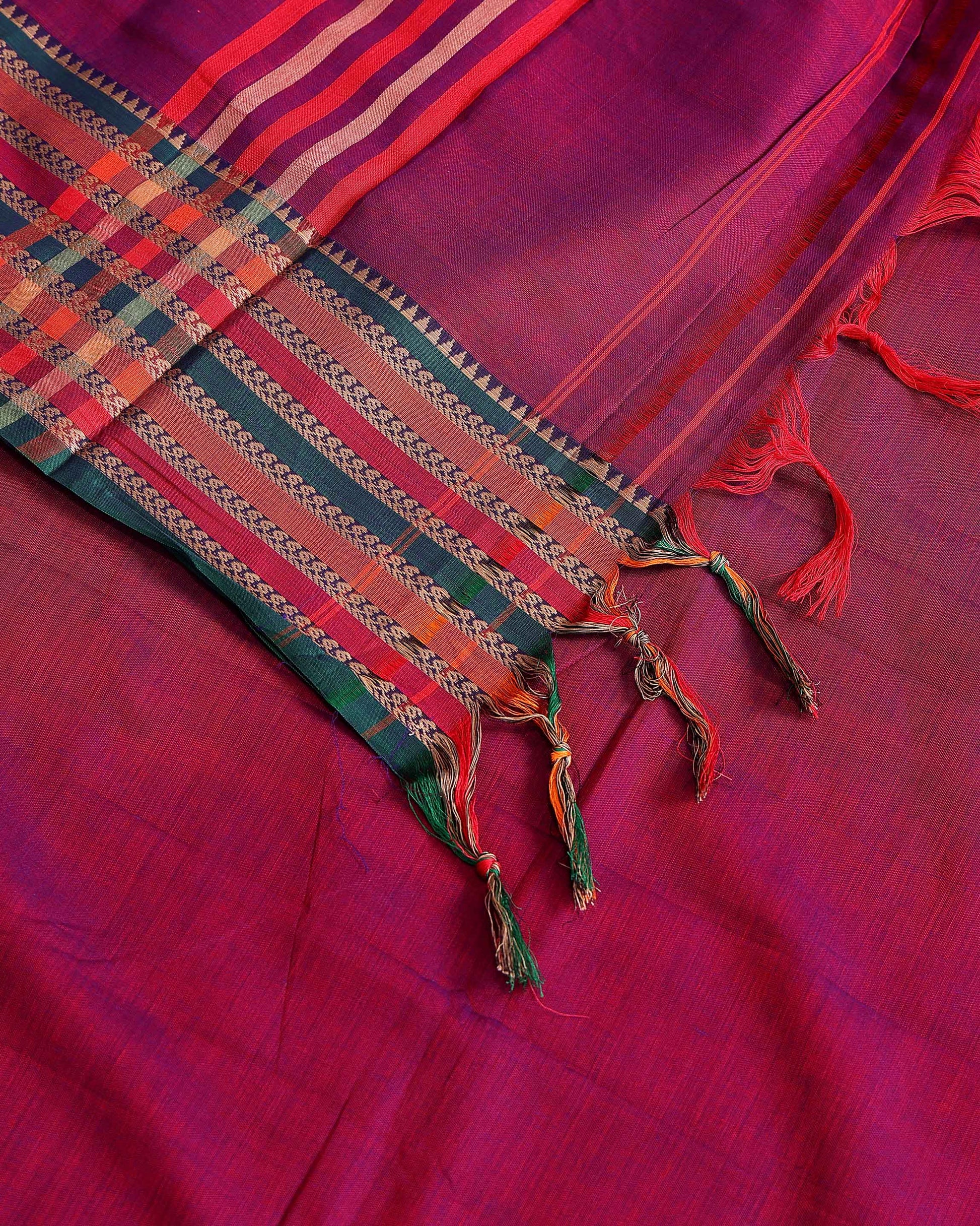 - This elegant Purple Narayanpet cotton saree a plain body and a striking contrast striped pallu