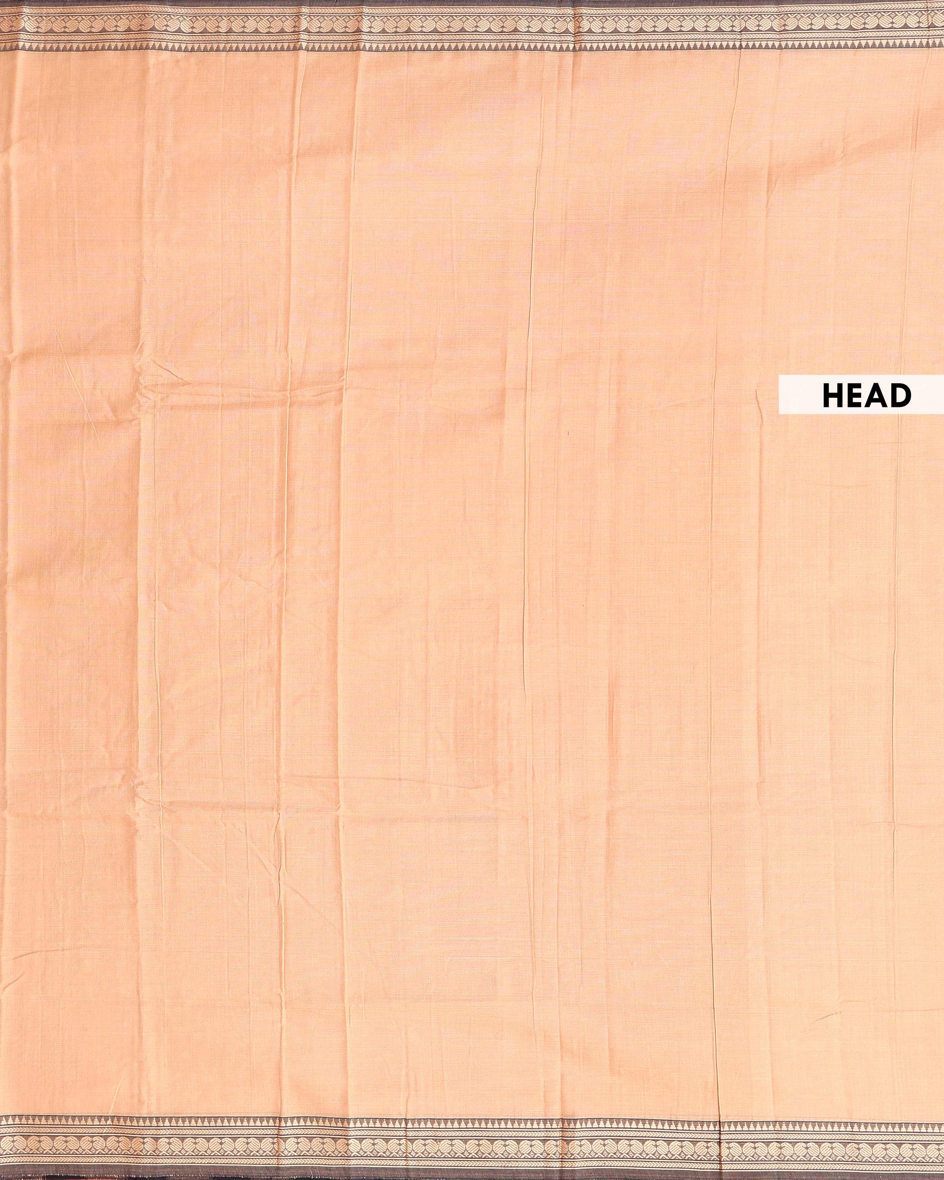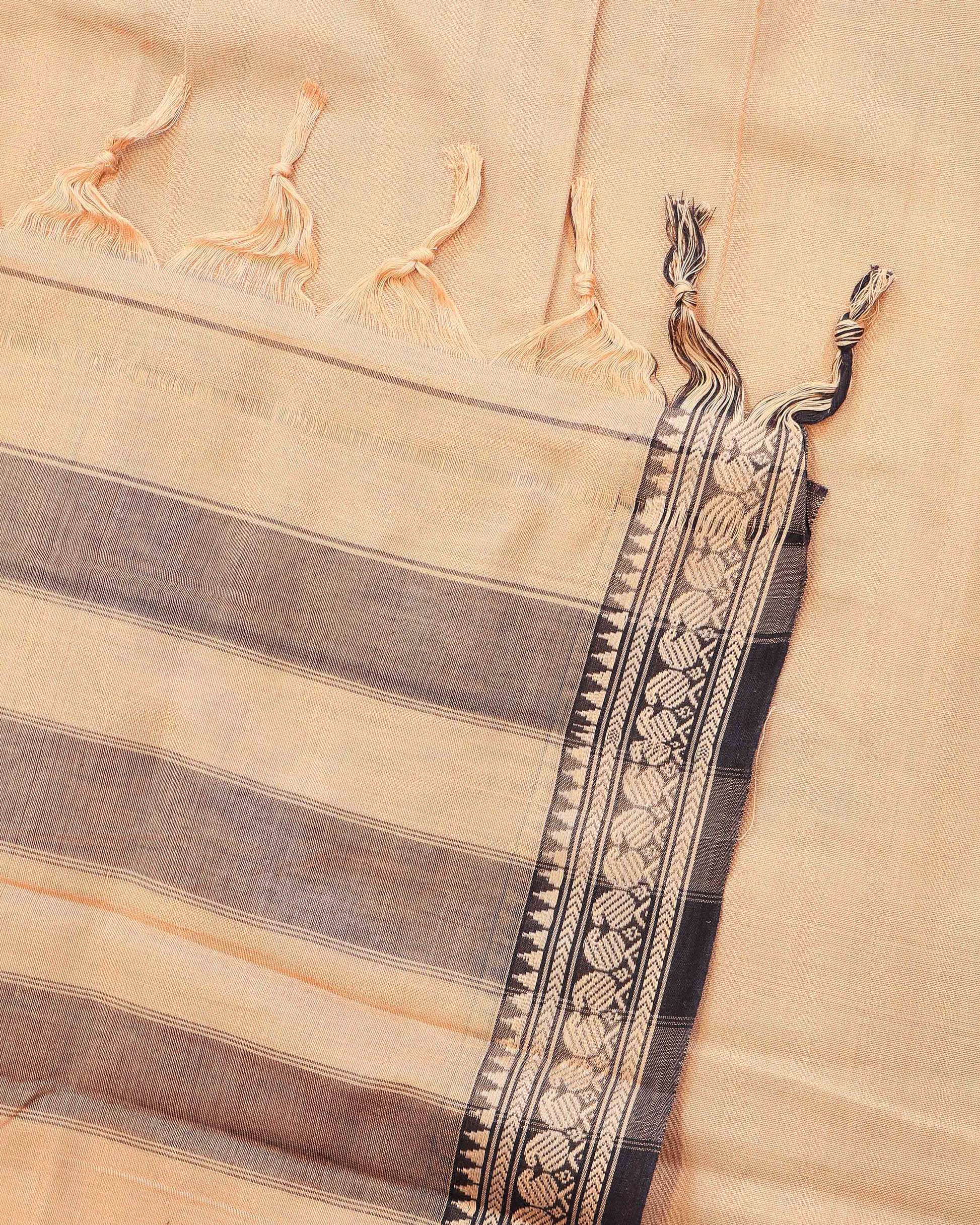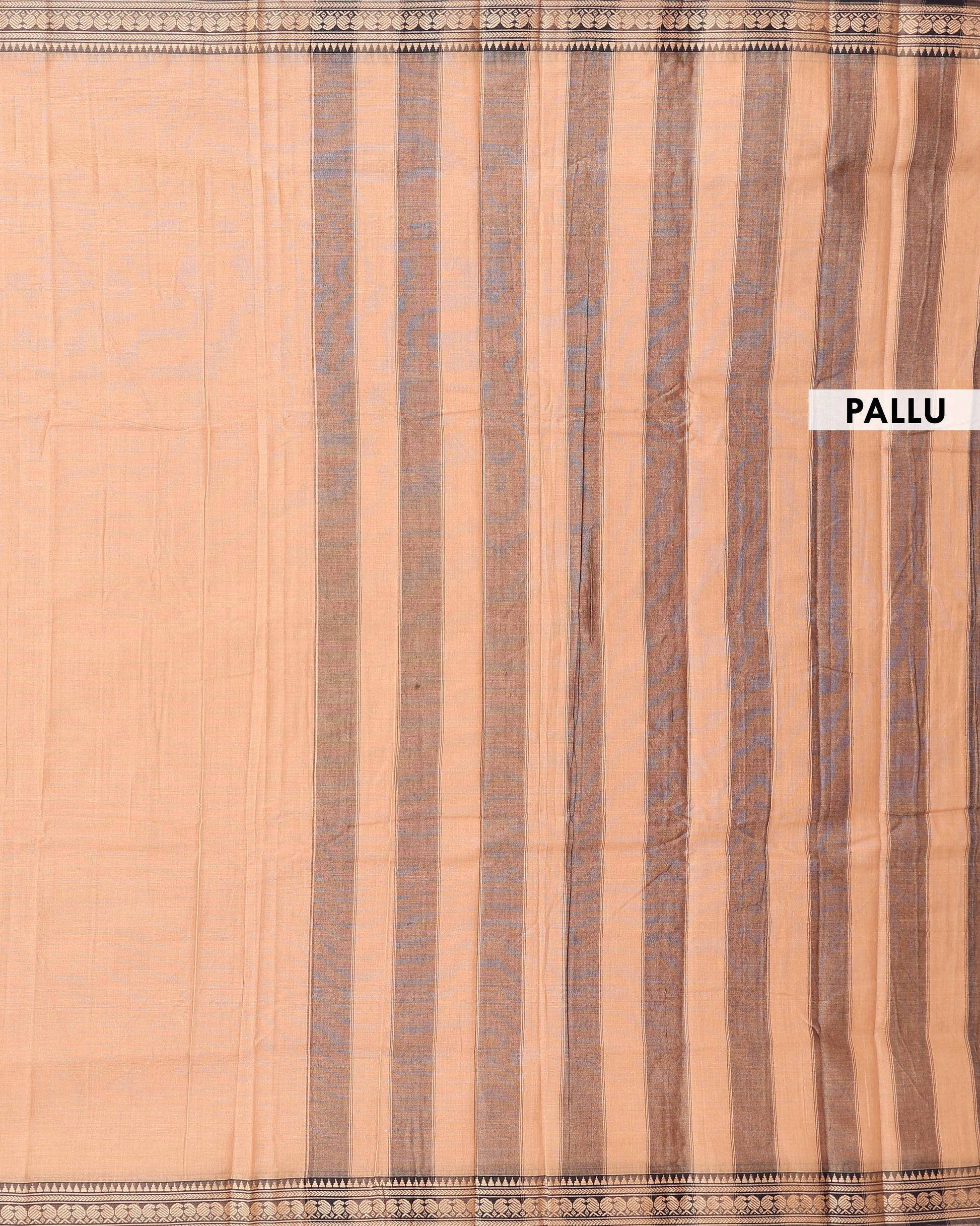 Traditional Narayanpet Cotton Saree with Striped Pattern and Zari Woven Temple Border - Sandal