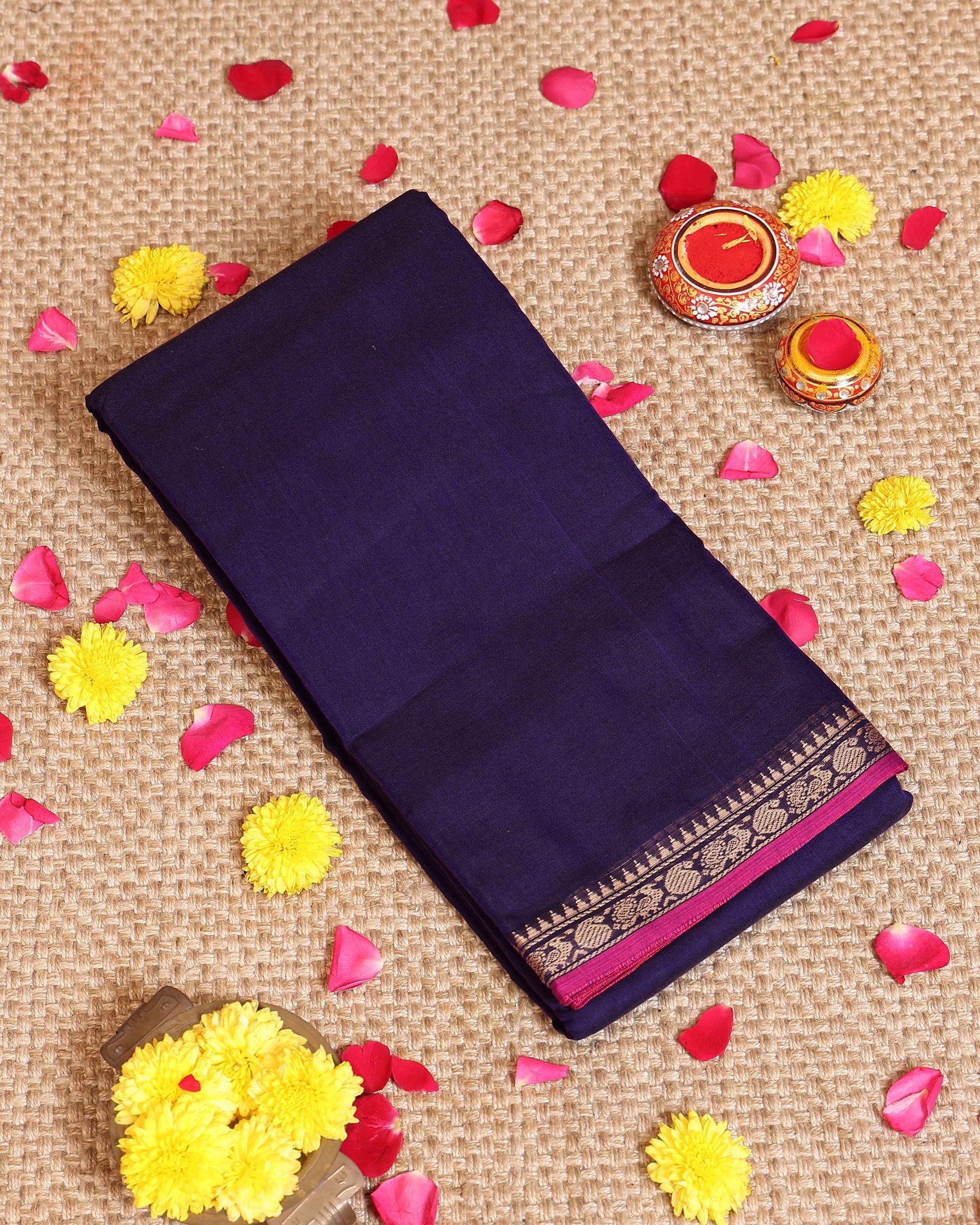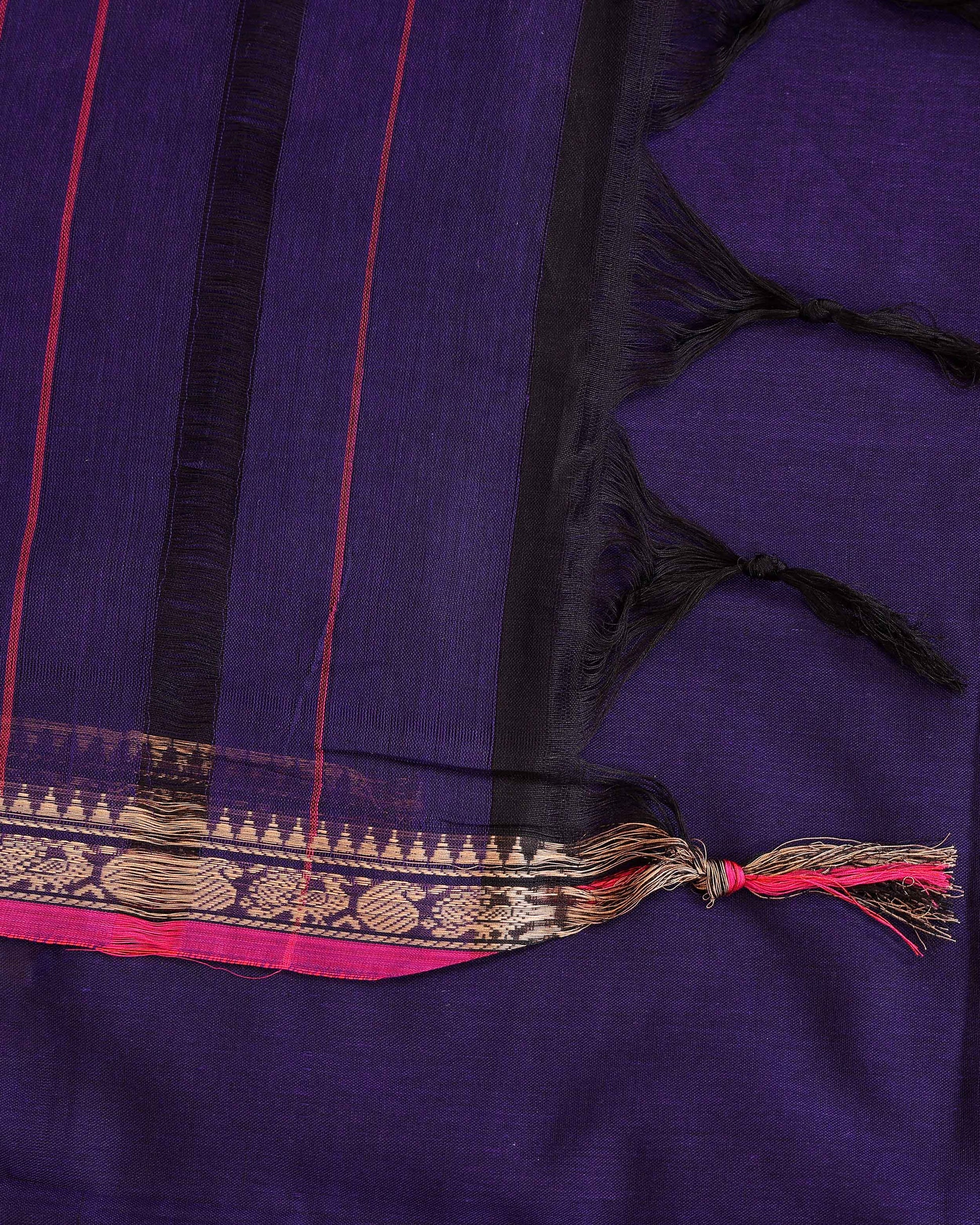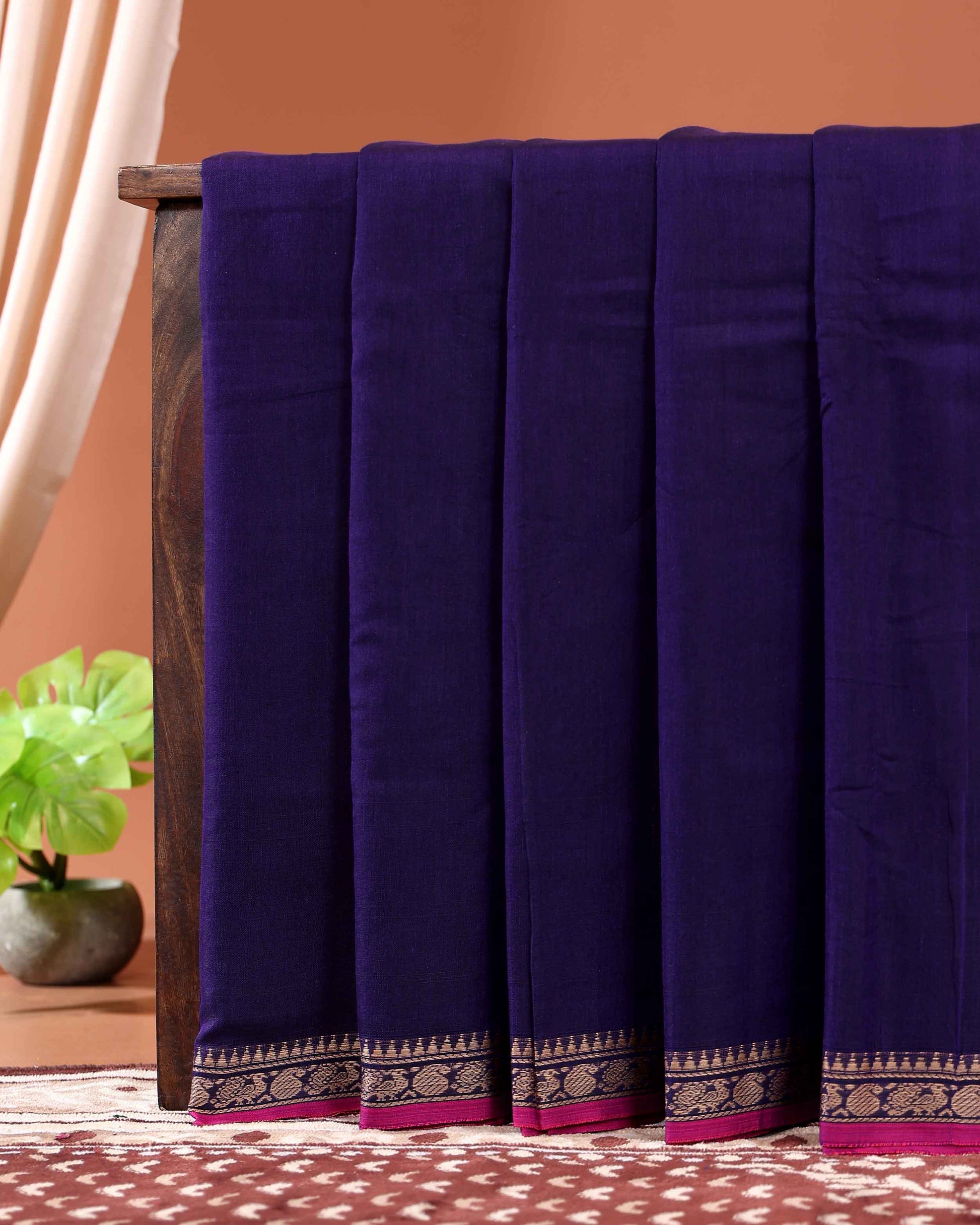 Traditional Narayanpet Cotton Saree with Traditional Zari Border - Purple