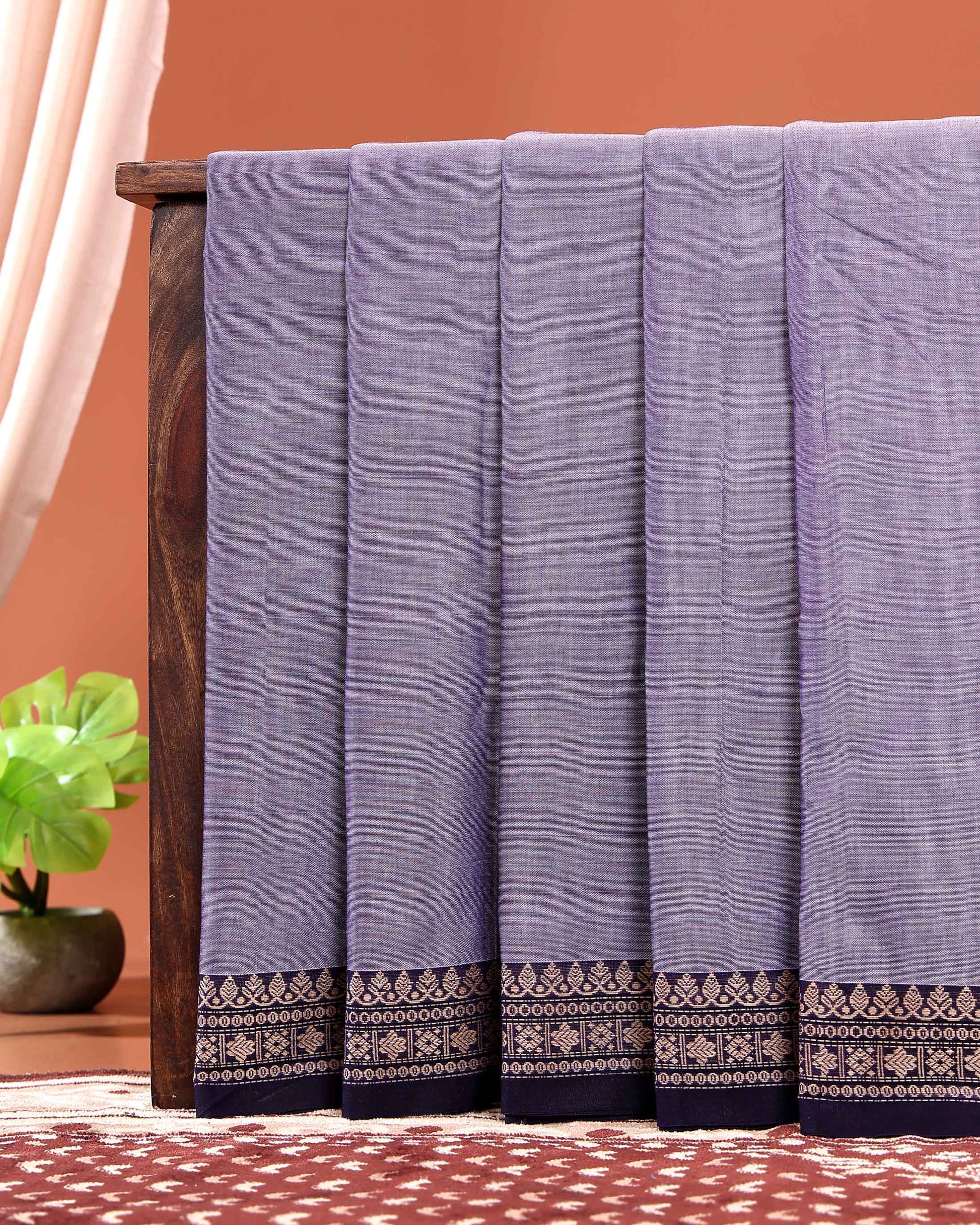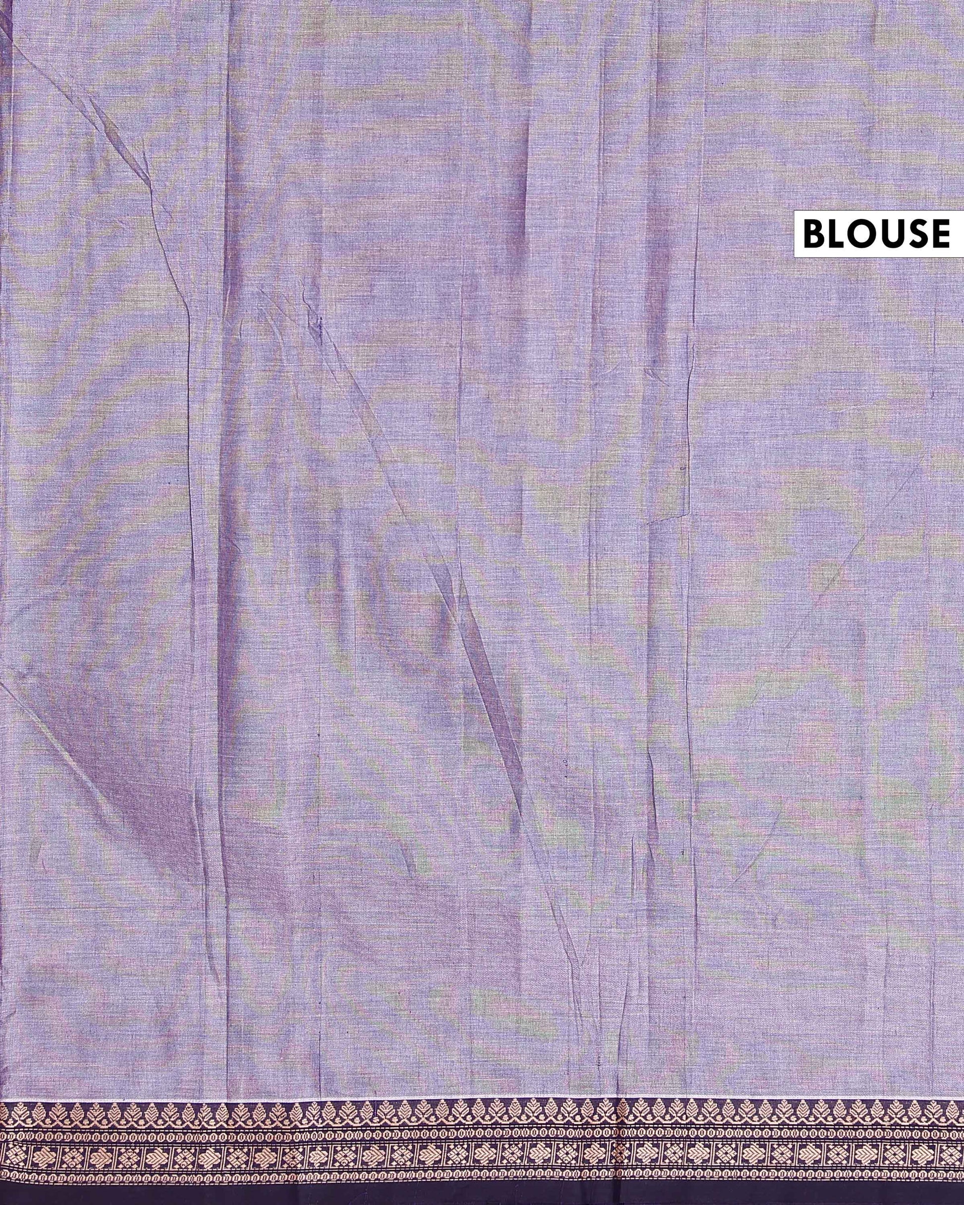 Traditional Narayanpet Cotton Saree with Traditional Zari Border & Temple Motif Detailing - Light Purple