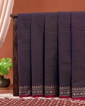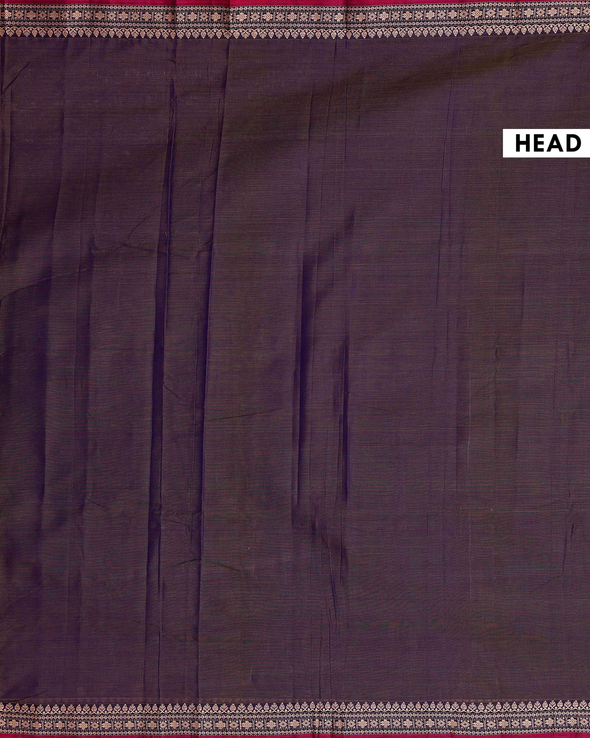 Features a classic plain body in a Dark Purple shade complemented by a contrast temple border with intricate traditional motifs.